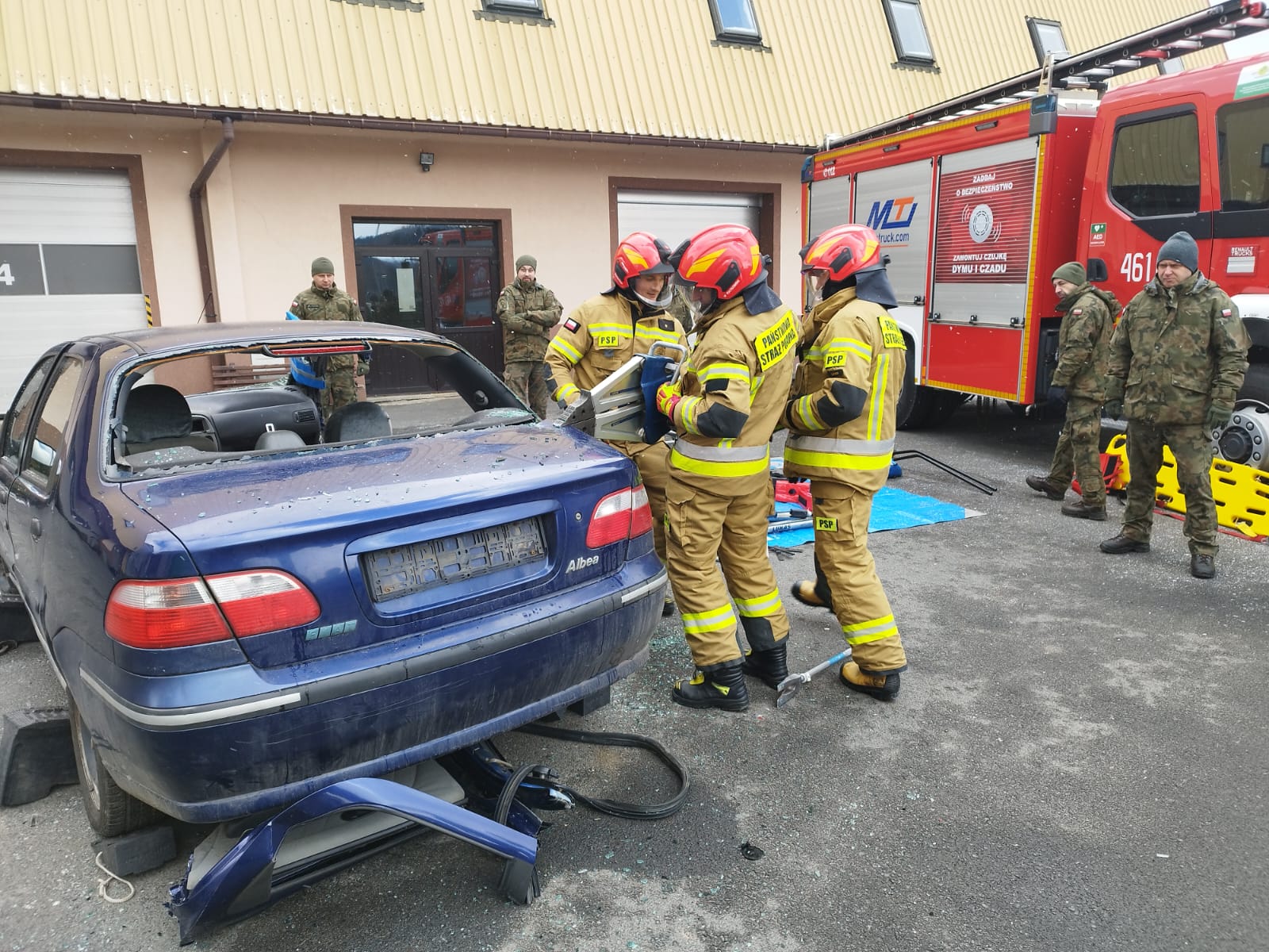 W dniu 15 lutego 2025 r. strażacy z Jednostki Ratowniczo – Gaśniczej w Lesku przeprowadzili wspólnie z 2032 Kompanią Obrony Pogranicza Wojsk Obrony Terytorialnej ćwiczenia, które obejmowały swoim zakresem elementy ewakuacji i ratownictwa podczas zdarzeń z udziałem środków transportu, technik samoewakuacji przy użyciu sprzętu wysokościowego oraz podstaw gaszenia pożarów za pomocą podręcznego sprzętu gaśniczego. Ćwiczenia miały również za zadanie doskonalenie współdziałania w zakresie udzielania kwalifikowanej pierwszej pomocy, a także były okazją do wymiany cennych doświadczeń między formacjami.