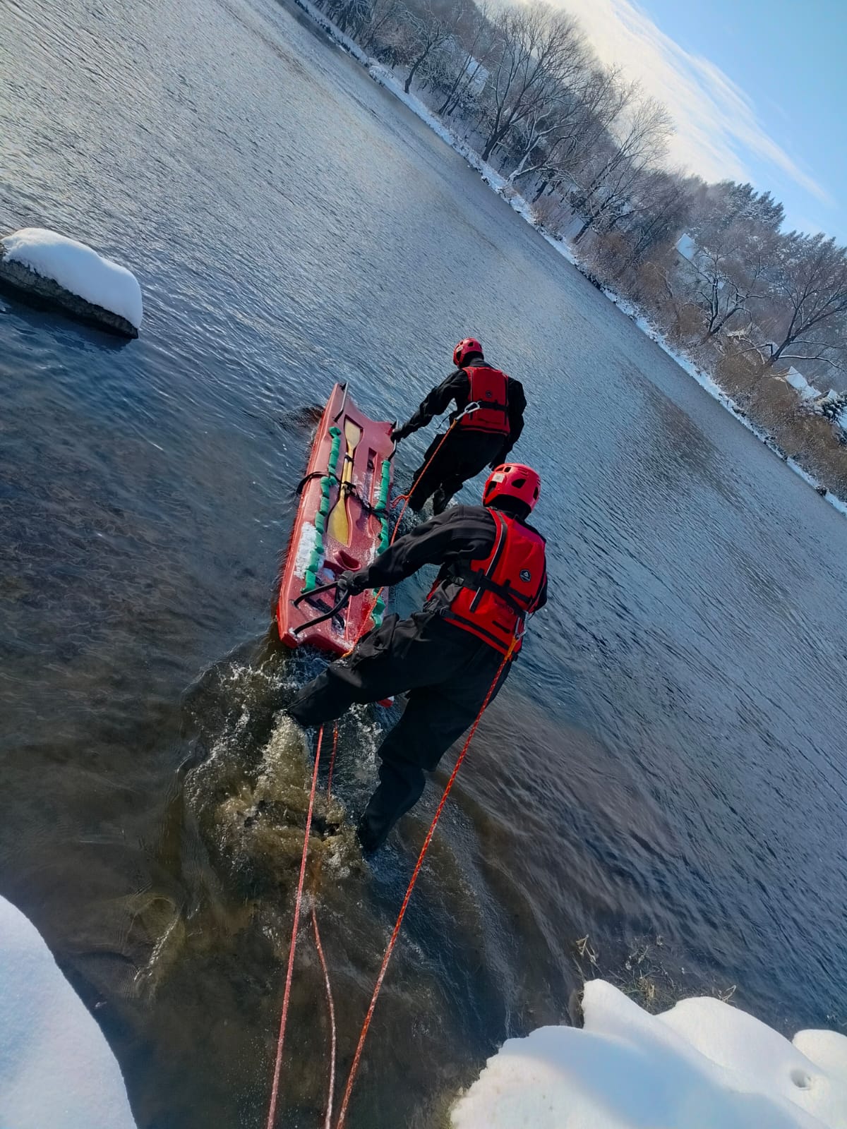 W dniu 14.01.2025 strażacy z Jednostki Ratowniczo-Gaśniczej w Lesku odbyli ćwiczenia z zakresu ratownictwa wodno-lodowego na rzece San. Ćwiczenia miały na celu doskonalenie umiejętności związanych z podejmowaniem z wody osób poszkodowanych, przećwiczenie technik samoratowania, czy praktyczne wykorzystanie sprzętu takiego jak sanie lodowe, łódź wiosłowa czy rzutki ratownicze. Ćwiczenia takie jak powyższe są doskonałą okazją do sprawdzenia w praktyce wiedzy zdobytej przez strażaków w trakcie szkoleń teoretycznych z zakresu ratownictwa wodno-lodowego.