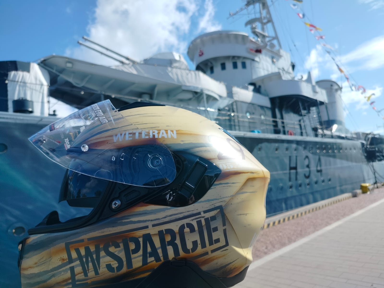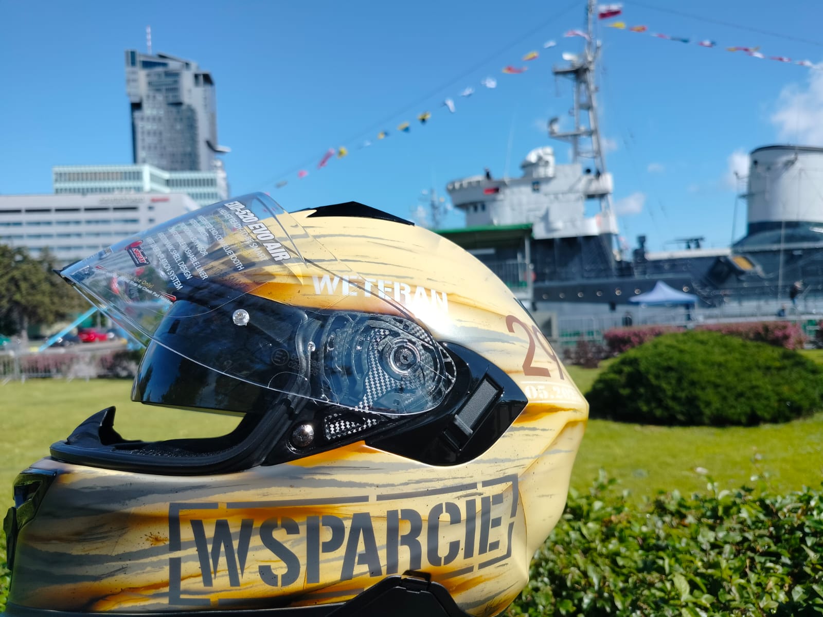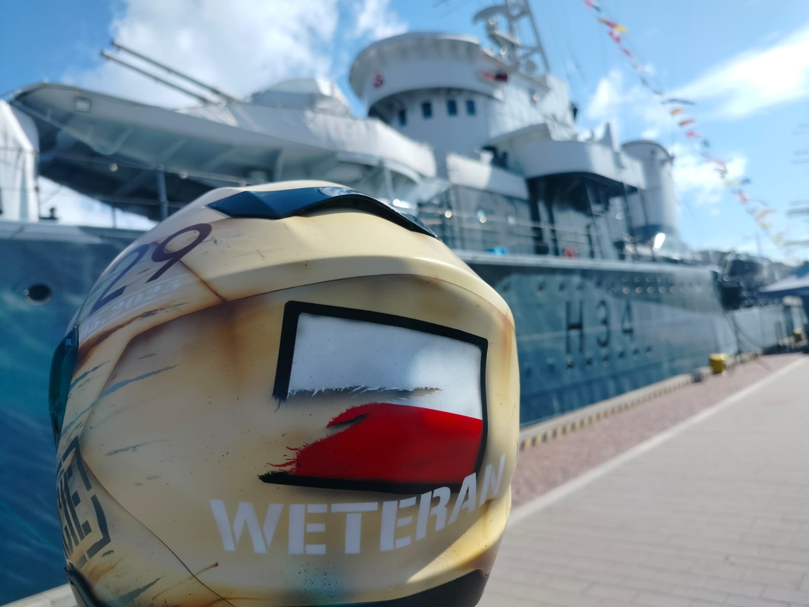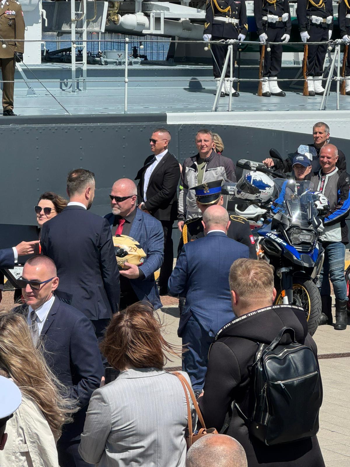 Leski strażak uhonorował weteranów. Unikalny kask motocyklowy przekazany na aukcję podczas centralnych obchodów w Gdyni