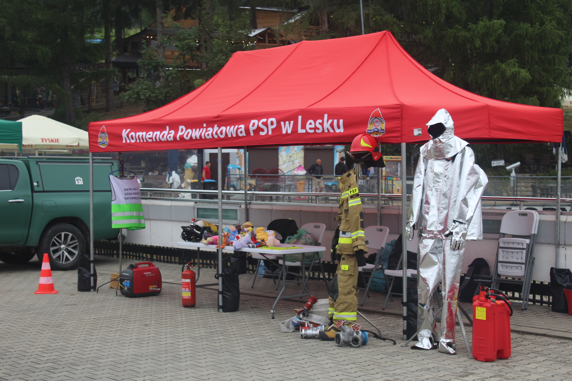 2 lipca 2022 r. na zaporze w Solinie odbył się Piknik „Bezpieczne Wakacje” zorganizowany przez Wojewodę Podkarpackiego Panią Ewę Leniart. W imprezie udział wzięli również strażacy z Jednostki Ratowniczo- Gaśniczej w Lesku, którzy na swoim stanowisku zaprezentowali sprzęt, jakim dysponują, oraz opowiadali o pracy, jaką wykonują, na co dzień. Strażacy prowadzili liczne pogadanki na temat szeroko pojętego bezpieczeństwa, a także o bezpiecznych zasadach przebywania na wodą. Wielką atrakcją zarówno dla dzieci jak i młodzieży okazał się punkt z hydronetką i tarczą, do której należało trafić prądem wody. Niezwykłą radość uczestnikom pikniku odwiedzającym stanowisko KP PSP Lesko sprawiały rozdawane gadżety.