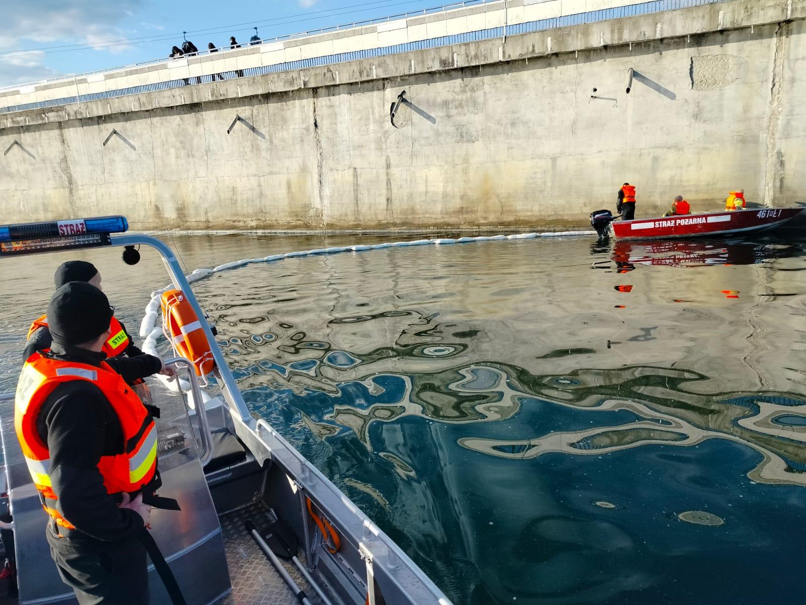Po przybyciu na miejsce zdarzenia strażacy stwierdzili, że na powierzchni zbiornika unoszą się trzy plamy substancji ropopochodnej pierwsza o wielkości około 50x70 m oraz dwie kolejne o wielkości około 30x10 m. W związku z rozmiarem plam oraz wiejącym wiatrem, który rozprzestrzeniał plamy zadysponowano na miejsce zdarzenia Specjalistyczną Grupę Ratownictwa Chemiczno- Ekologicznego z Nowej Sarzyny.