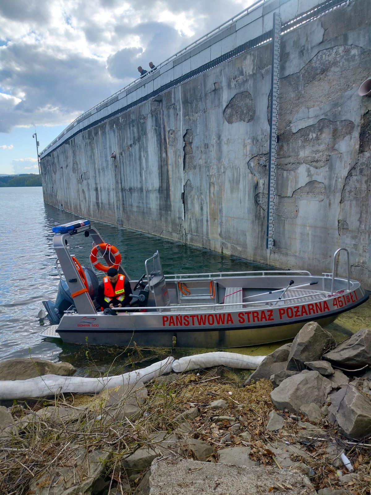26 kwietnia o godz. 15:21 Stanowisko Kierowania Komendanta Powiatowego PSP w Lesku otrzymało informację o plamie nieznanej substancji unoszącej się na zalewie Solińskim.