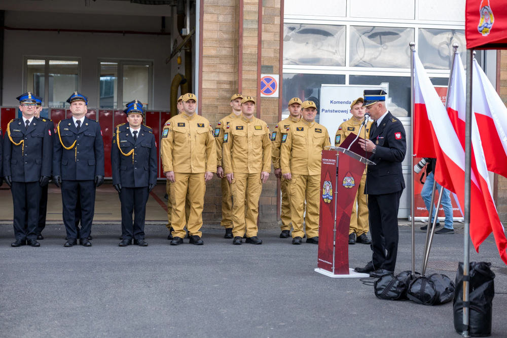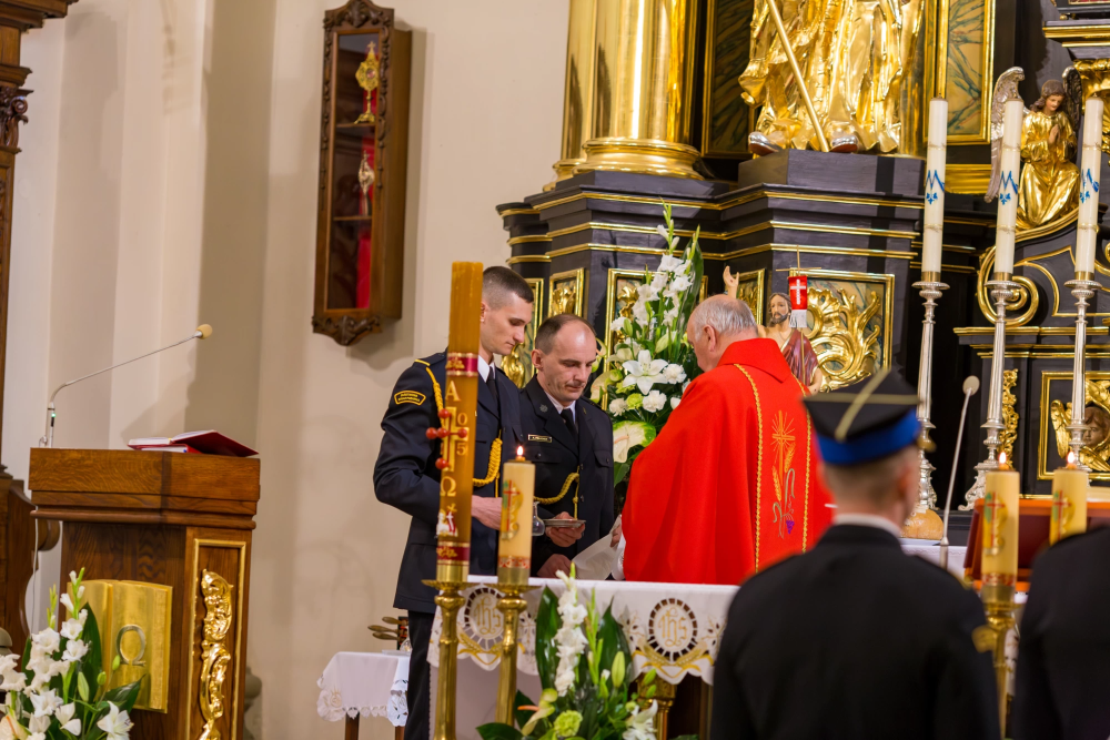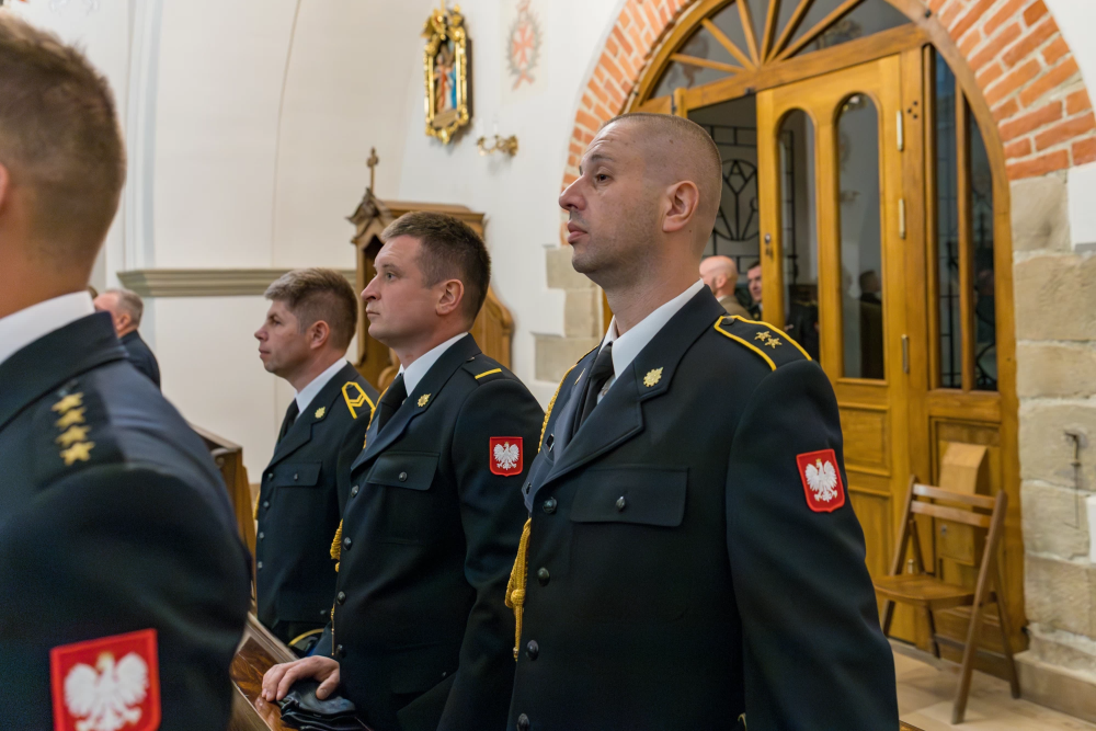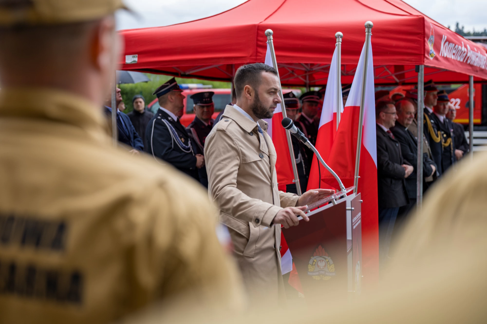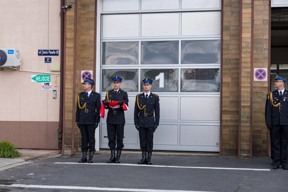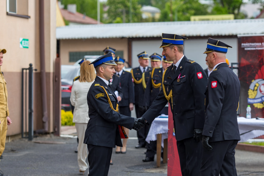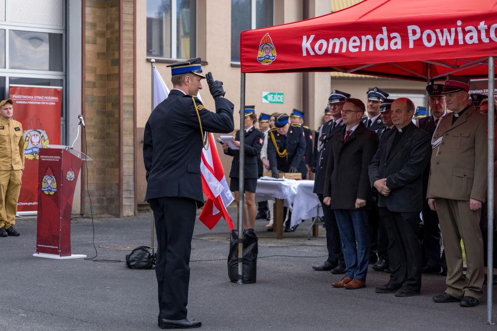 W środę 14 maja 2025r w Komendzie Powiatowej Państwowej Straży Pożarnej w Lesku odbyły się Powiatowe Obchody Dnia Strażaka. Uroczystości rozpoczęły się Mszą Świętą w kościele pw. Nawiedzenia Najświętszej Maryi Panny w Lesku. Po zakończeniu Eucharystii, na placu zewnętrznym Komendy Powiatowej PSP w Lesku miał miejsce uroczysty apel przeprowadzony zgodnie z ceremoniałem pożarniczym. Uroczystości rozpoczęły się od złożenia meldunku, który odebrał Zastępca Podkarpackiego Komendanta Wojewódzkiego PSP st. bryg. Adam Wiśniewski. Następnie dokonano przeglądu i przywitania pododdziału, wprowadzono sztandar Komendy oraz podniesiono flagę państwową przy akompaniamencie hymnu państwowego. Wszyscy zgromadzeni wysłuchali przemówienia okolicznościowego Komendanta Powiatowego PSP w Lesku, bryg. Roberta Wojciechowskiego, które zawierało w sobie podsumowanie działalności za ubiegły rok, podziękowanie dla strażaków i pracowników cywilnych tutejszej Komendy, a także instytucji współpracujących, mowa była również o planach na przyszłość.