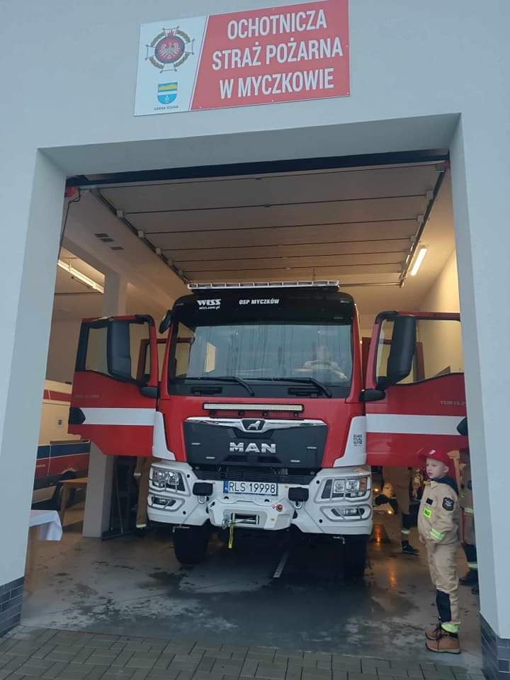 2 grudnia 2023 r. w remizie OSP Myczków odbyło się przywitanie nowego średniego samochodu ratowniczo- gaśniczego MAN 13.290 4x4 w zabudowie Wawrzaszek - Inżyniera Samochodów Specjalnych. Zakup został sfinansowany ze środków Wojewódzkiego Funduszu Ochrony Środowiska i Gospodarki Wodnej w Rzeszowie oraz Narodowego Funduszu Ochrony Środowiska i Gospodarki Wodnej oraz Gminy Solina. W uroczystościach przywitania nowego samochodu wziął udział Komendant Powiatowy PSP w Lesku st. bryg. Jacek Dydek, Wójt Gminy Solina Pan Adam Piątkowski oraz Sołtys wsi Myczków Pan Edward Rafalski.