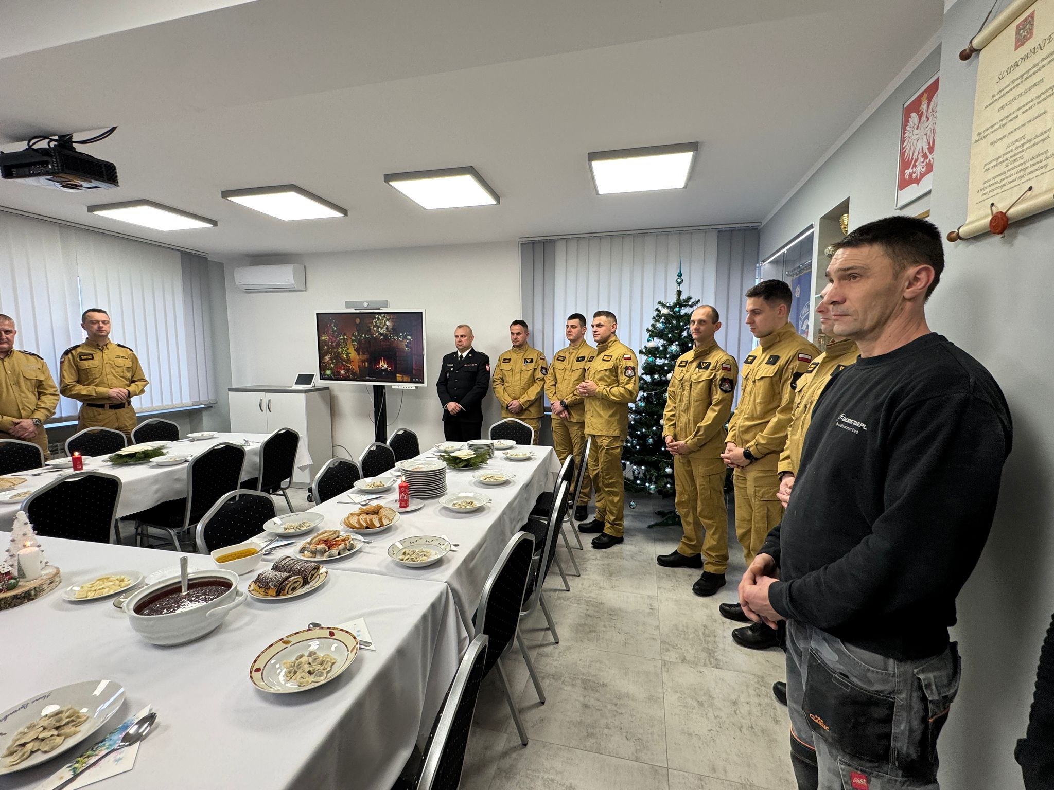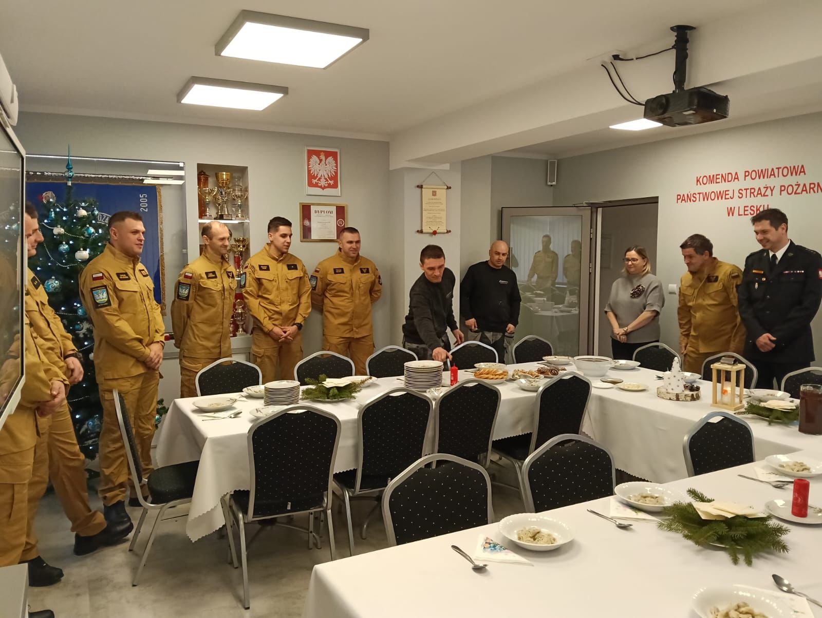 Dziś w Komendzie Powiatowej PSP w Lesku odbyło się spotkanie wigilijne, które stało się okazją do wspólnego przeżywania wyjątkowej atmosfery zbliżających się Świąt Bożego Narodzenia ✨ W wydarzeniu uczestniczyli funkcjonariusze oraz pracownicy cywilni komendy, a także zaproszeni goście.