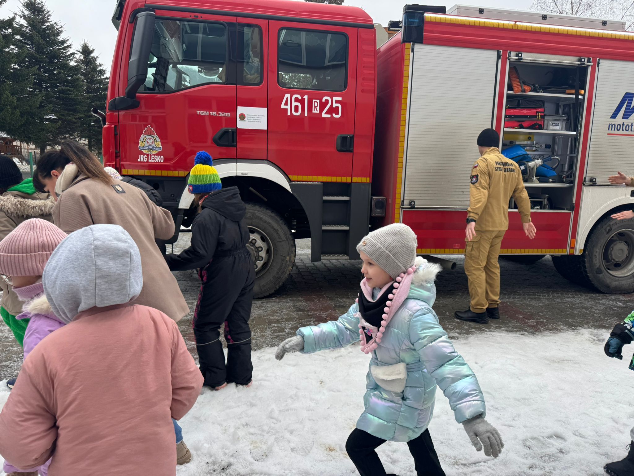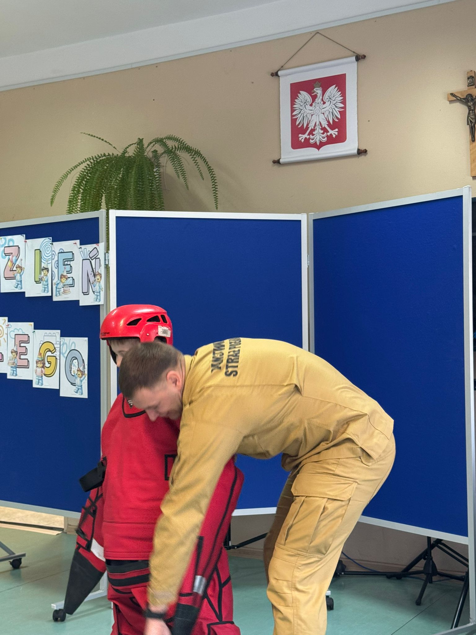 Nie zabrakło także rozmów o właściwym zachowaniu w sytuacjach zagrożenia – jak wezwać pomoc, jakie informacje przekazać dyspozytorowi numeru alarmowego 112 oraz dlaczego tak ważne jest zachowanie spokoju i stosowanie się do poleceń dorosłych i służb ratunkowych.