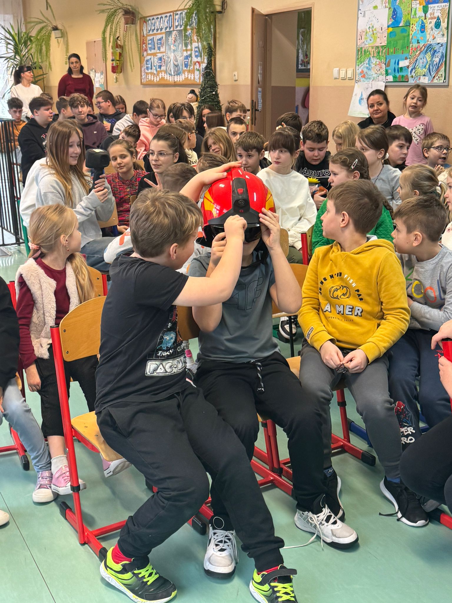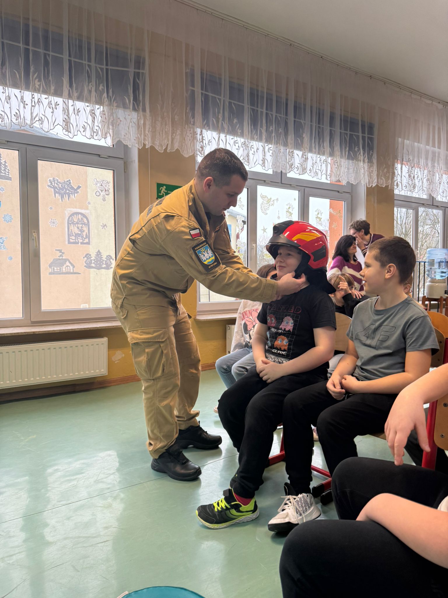 Podczas spotkania strażacy omówili zasady bezpiecznego zachowania w domu oraz poza nim, ze szczególnym uwzględnieniem okresu ferii zimowych. Uczniowie dowiedzieli się, jak unikać zagrożeń podczas zabaw na śniegu i lodzie, dlaczego nie wolno wchodzić na zamarznięte zbiorniki wodne oraz jak odpowiedzialnie spędzać wolny czas.