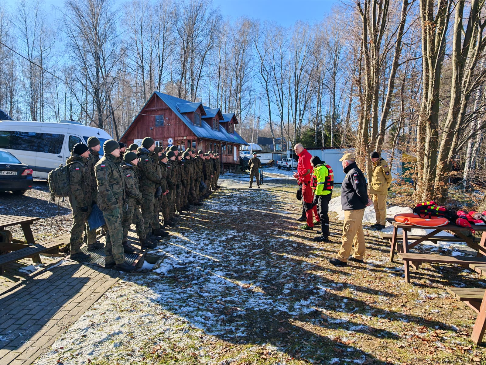 Szkolenie zostało przeprowadzone przy istotnym wsparciu ratowników Wodnego Ochotniczego Pogotowia Ratunkowego, którzy współprowadzili zajęcia, dzieląc się wiedzą i doświadczeniem z zakresu ratownictwa wodnego. Ratownicy WOPR aktywnie uczestniczyli w części praktycznej, szkoląc uczestników oraz wspierając realizację poszczególnych epizodów ćwiczeń.