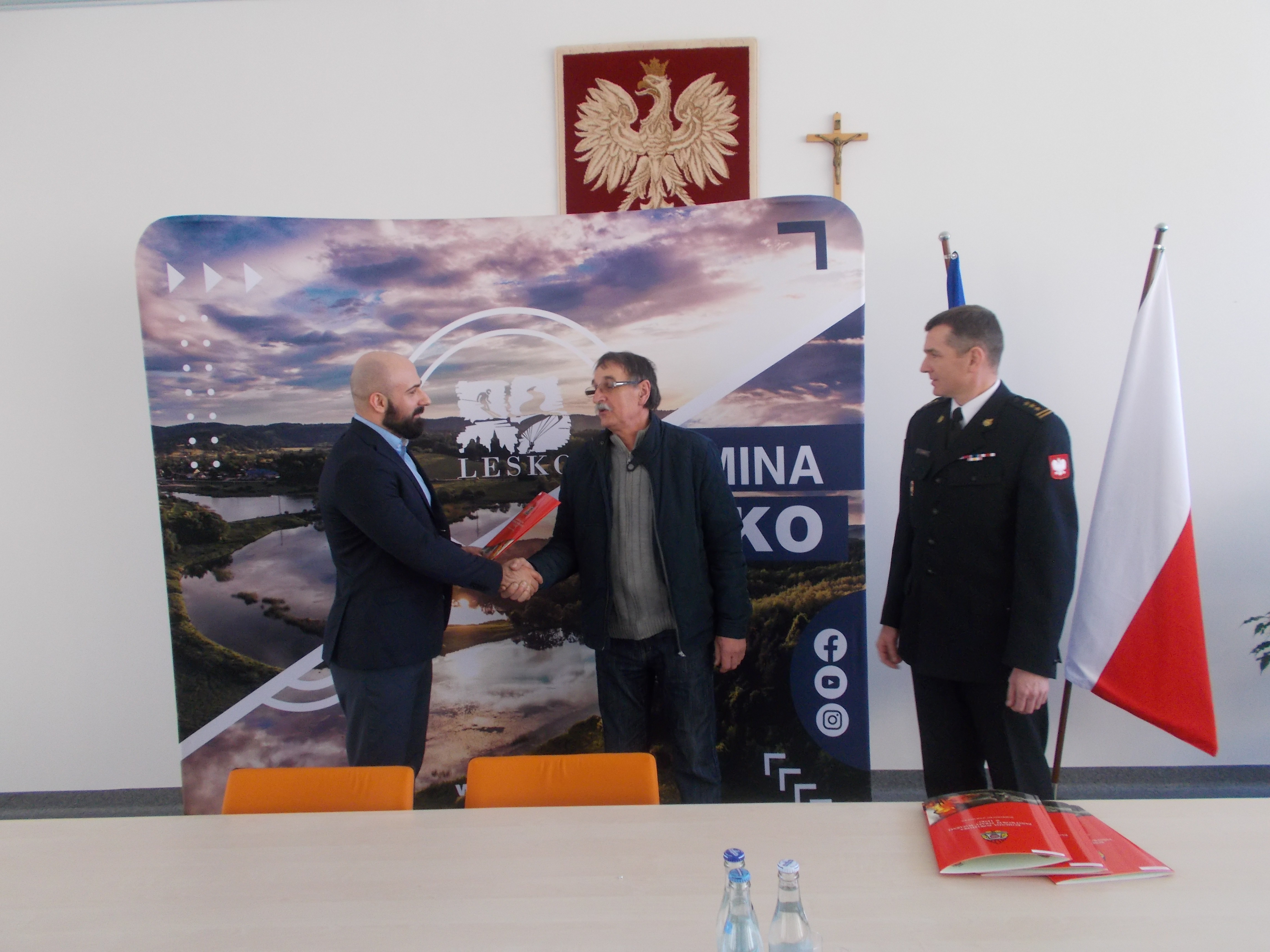 23 marca 2022 r. w sali narad Gminy Lesko, Burmistrz Leska Pan Adam Snarski wraz z Komendantem Powiatowym PSP w Lesku st. bryg. Jackiem Dydkiem dokonali uroczystego wręczenia pierwszych decyzji o przyznaniu świadczenia ratowniczego dla strażaków OSP w Gminie Lesko.