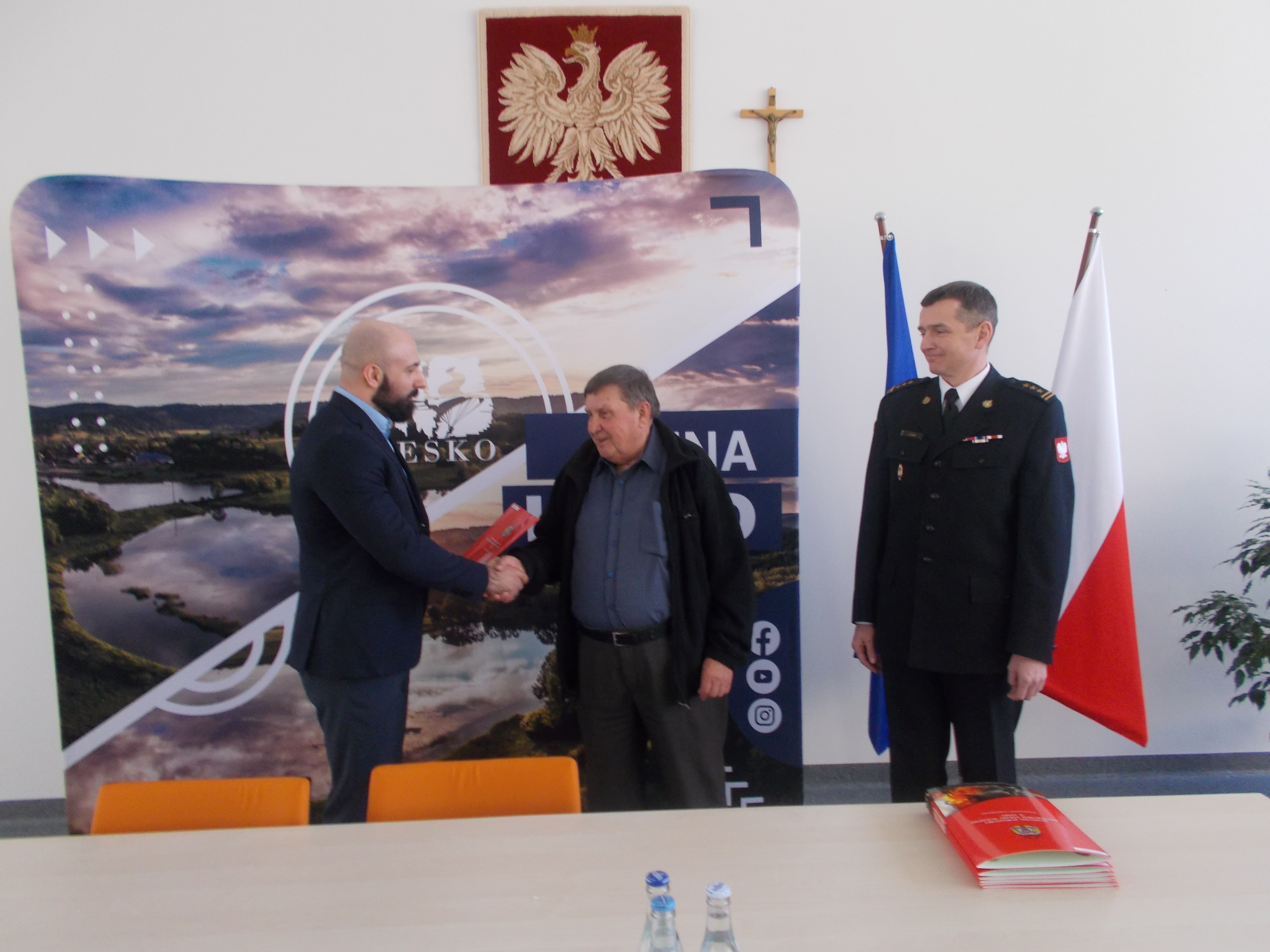 Uroczyste wręczenie pierwszych decyzji o przyznaniu świadczenia ratowniczego dla strażaków OSP w Gminie Lesko.