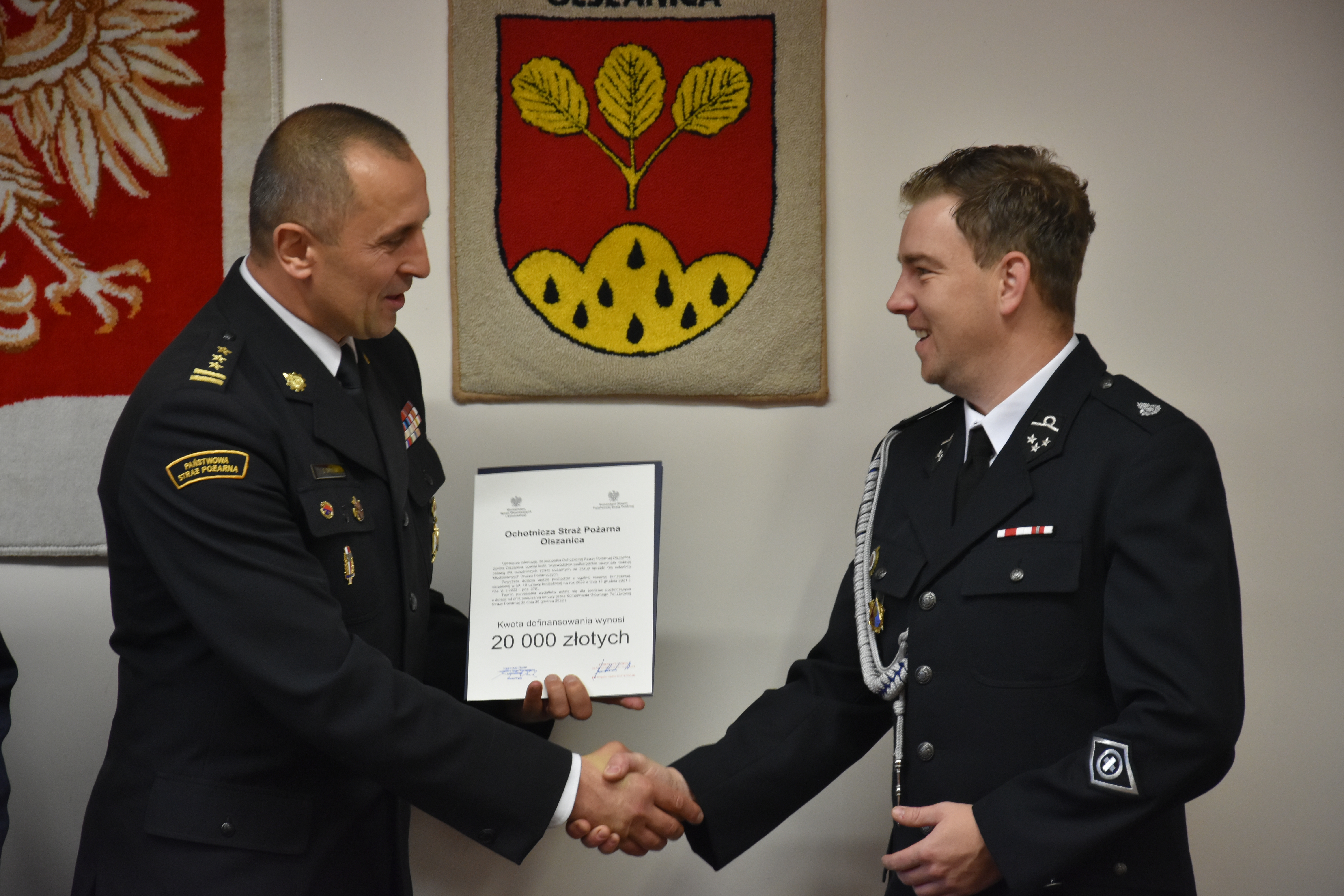 24 października 2022 r. w Urzędzie Gminy Olszanica zorganizowana została uroczysta zbiórka, podczas której wręczono promesę na kwotę 20 000 zł. dla Młodzieżowej Drużyny Pożarniczej z Olszanicy. Środki finansowe zostaną przeznaczone na zakup zestawu toru na zawody sportowo-pożarnicze dla MDP.