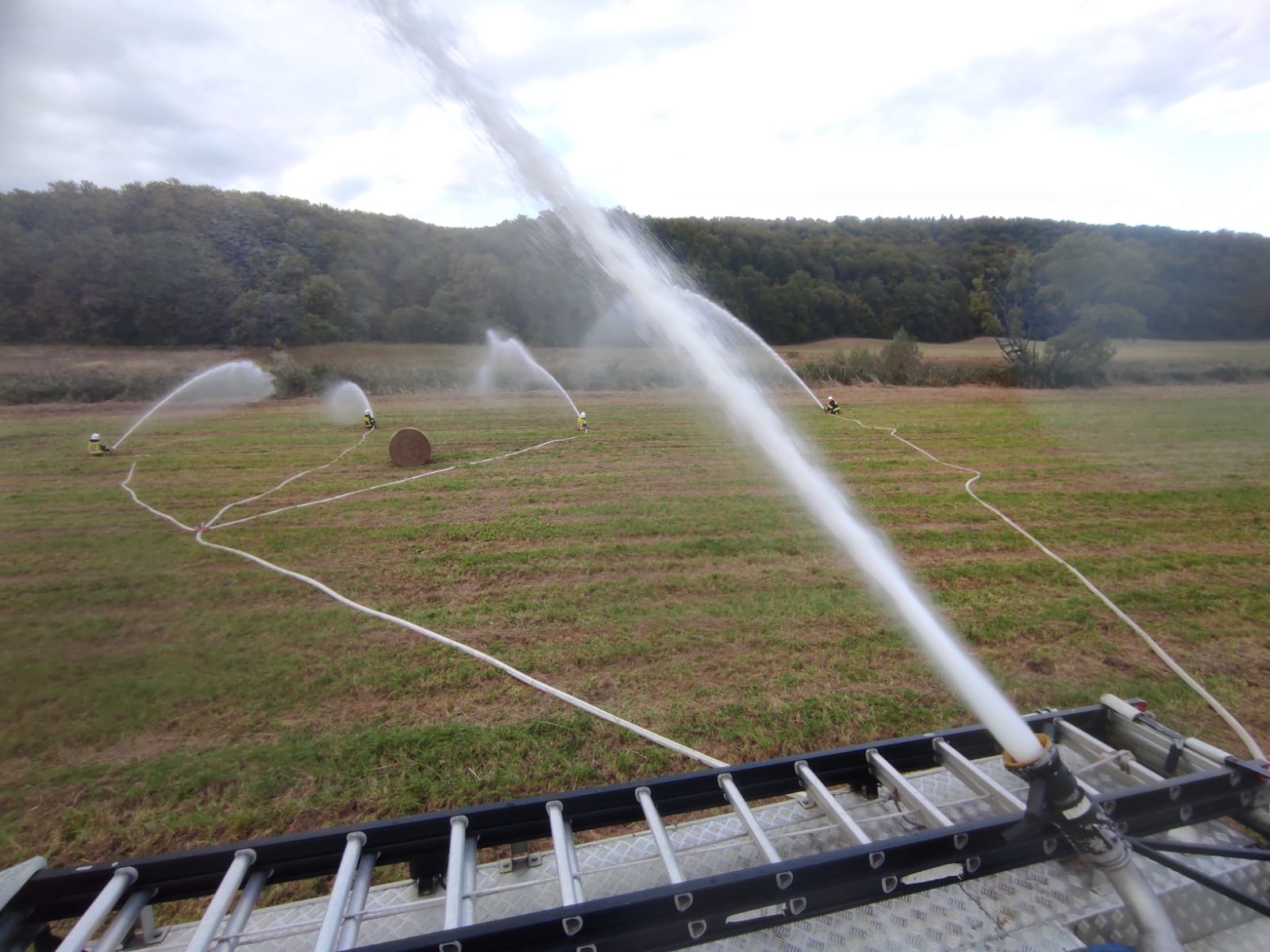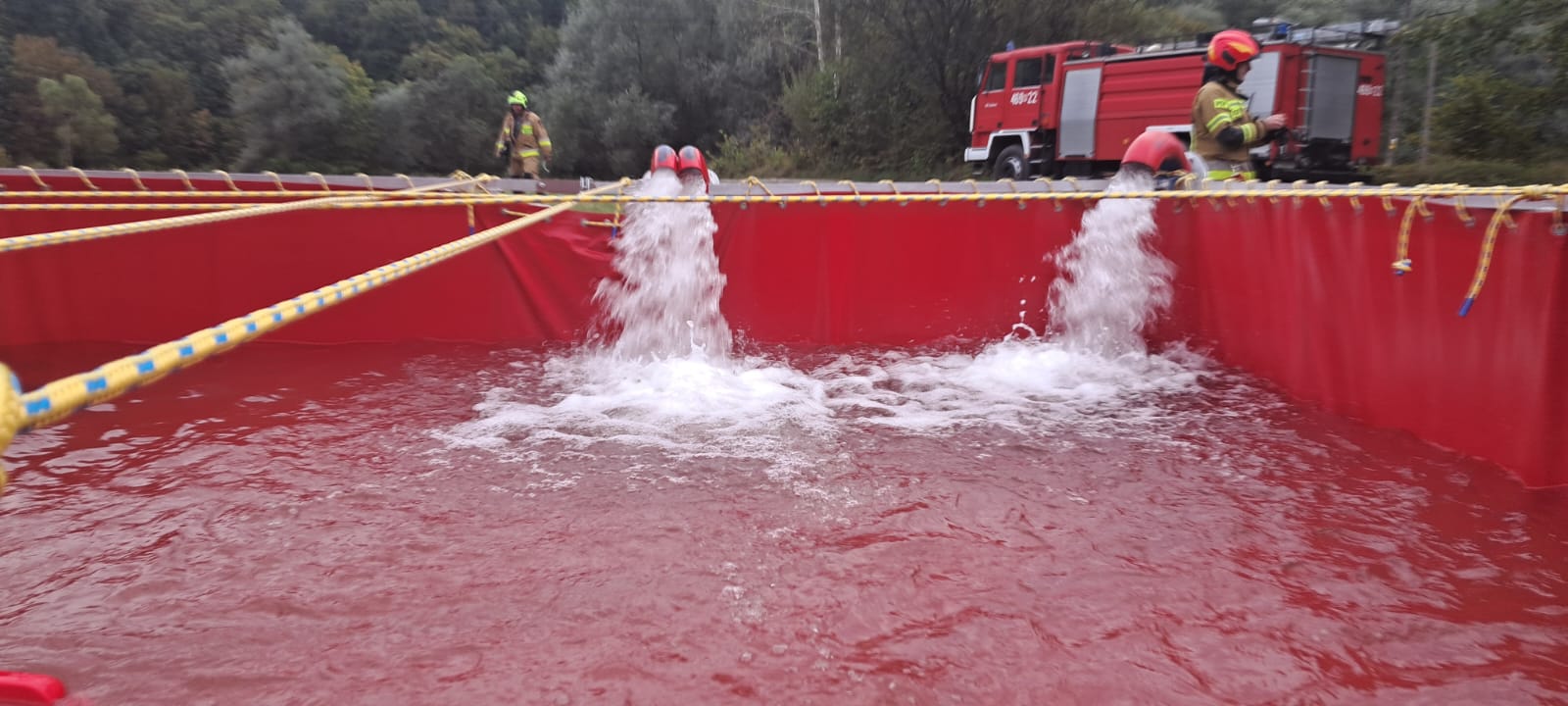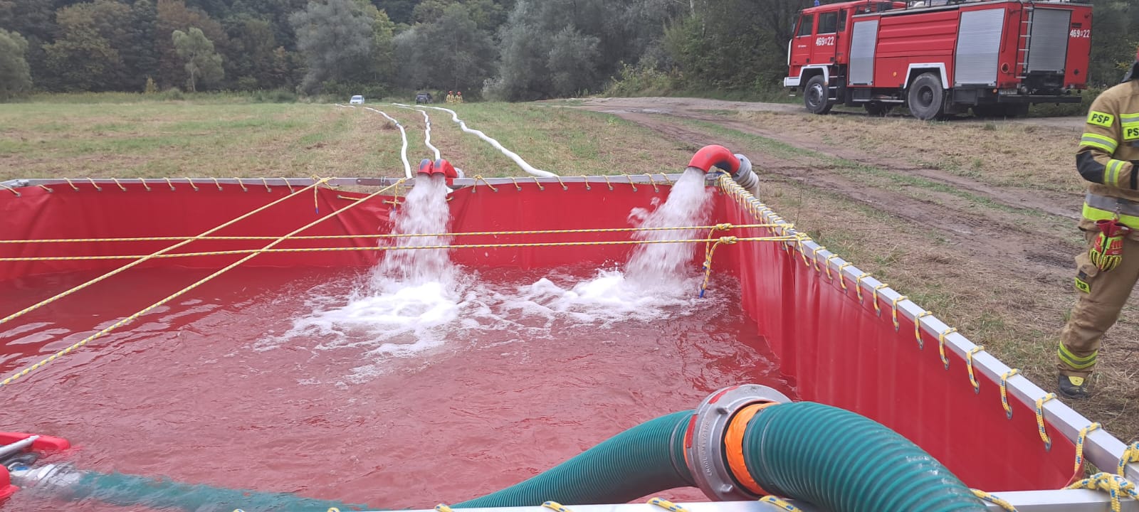 Podczas działań strażacy zbudowali linię wodną o długości przekraczającej 1200 metrów. Do utrzymania odpowiednich parametrów ciśnienia – minimum 8 atmosfer – wykorzystano autopompy samochodów pożarniczych oraz pompy ustawione przy zbiornikach wodnych. Dzięki temu możliwe było sprawdzenie praktycznych zdolności do podawania wody w warunkach wymagających dużej wydajności i ciągłości pracy całego układu.