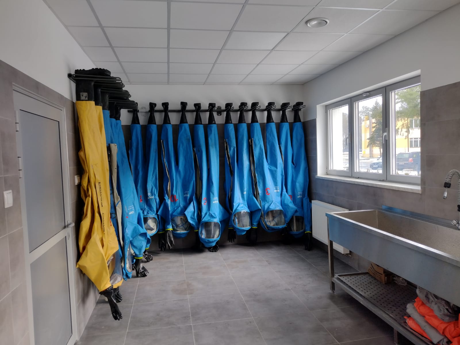 W obiekcie znajduje się również pomieszczenie do prowadzenia serwisu i konserwacji wyposażenia i sprzętu ochrony osobistej strażaków. Powierzchnia użytkowa budynku wynosi 364 m2, kubatura 3 279 m3. Dzięki inwestycji udało się także rozbudować i wymienić nawierzchnię placu manewrowego oraz przeprowadzić rozbiórkę starej wiaty garażowej, która ze względu na zły stan techniczny nie nadawała się do dalszego użytkowania.