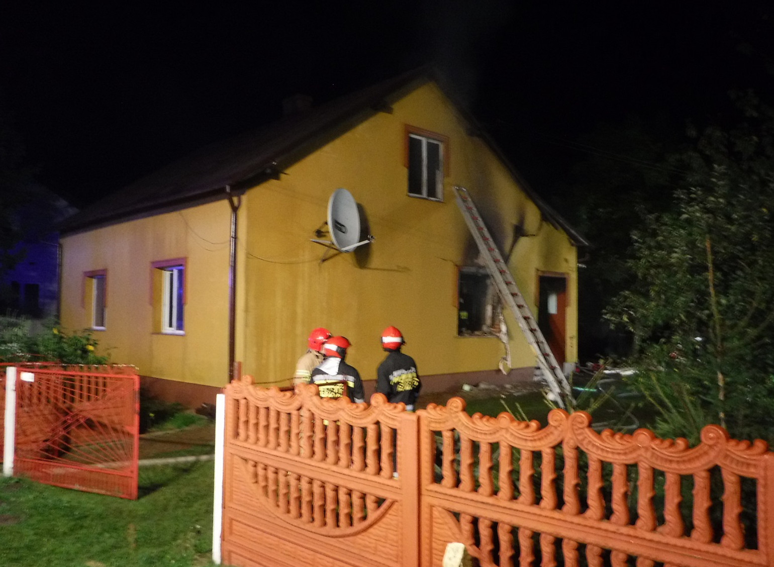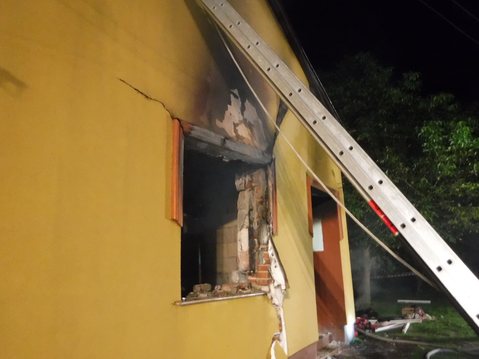 Po przyjeździe na miejsce pierwszych zastępów z Komendy Powiatowej PSP w Leżajsku okazało się, że pożarem objęte są dwa pomieszczenia budynku. Siła wybuchu spowodowała wypadnięcie okien, pęknięcie ścian i zawalenie się ściany działowej wewnątrz budynku.
