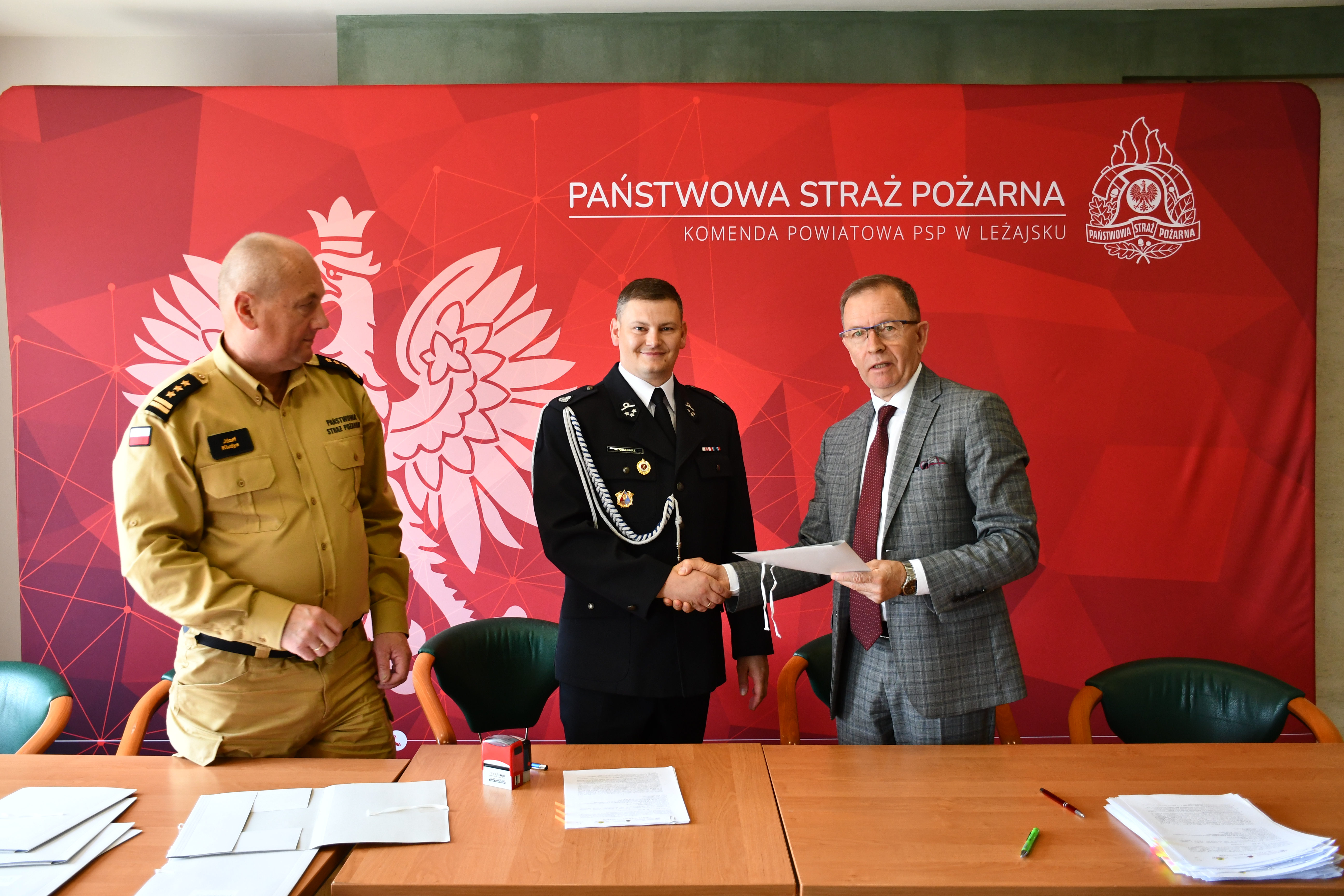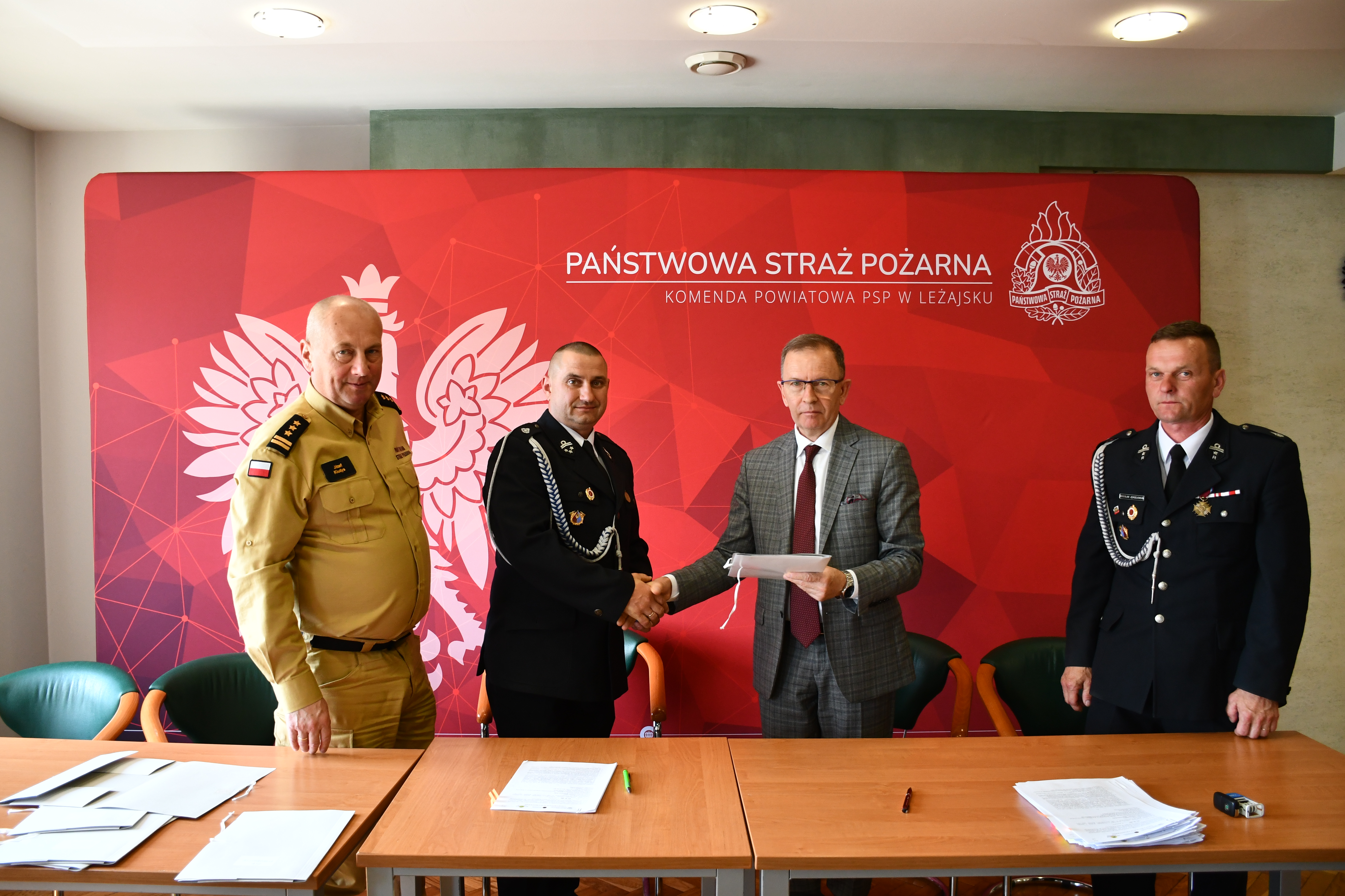 Umowy zostały podpisane i wręczone przez zastępcę prezesa zarządu WFOŚiGW w Rzeszowie Pana Bogusława Kidę w obecności posła na Sejm RP Pana Jerzego Paula oraz komendanta powiatowego PSP w Leżajsku st. bryg. Józefa Kludysa.