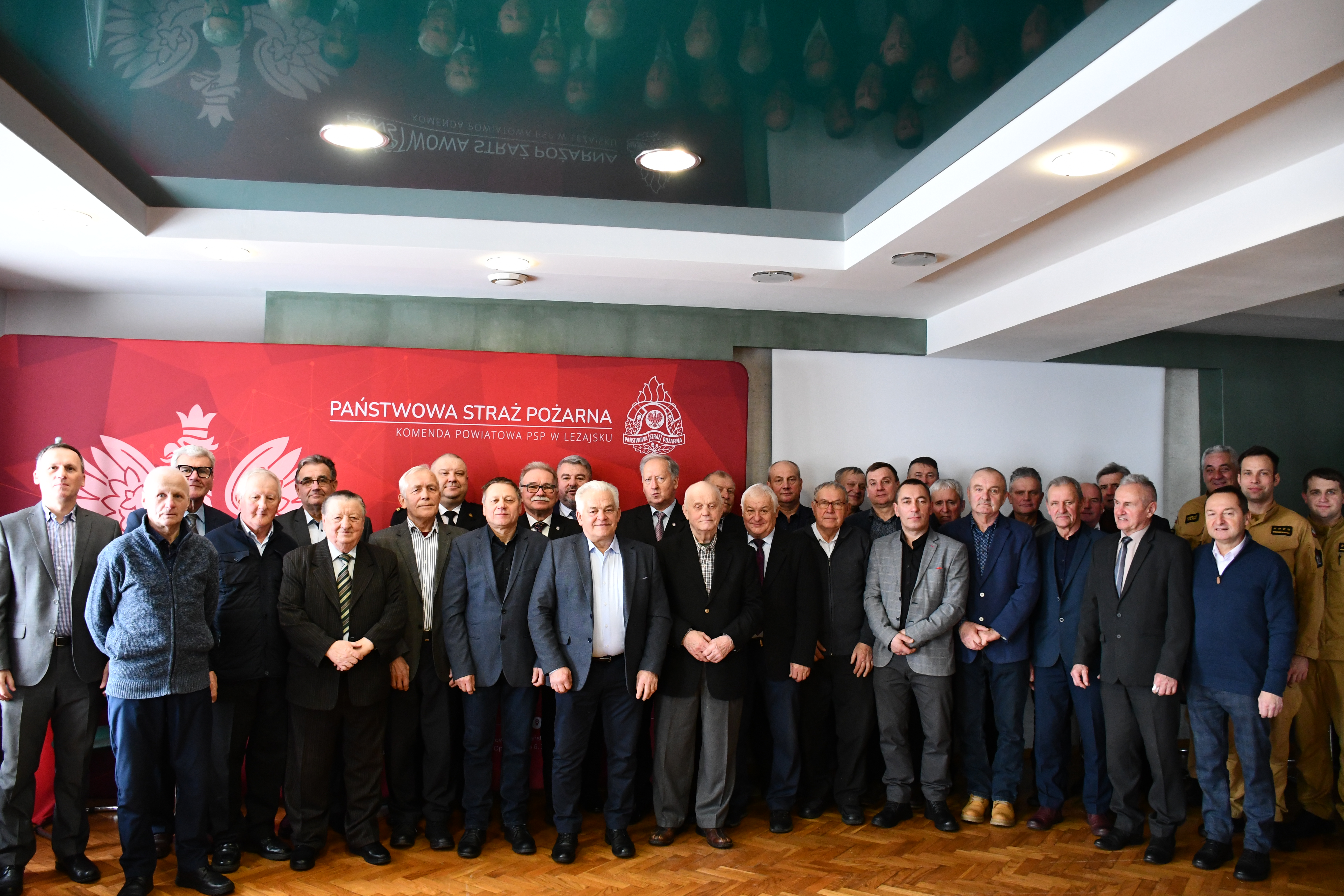 Spotkanie zaszczycili swoją obecnością: prezes Zarządu Oddziału Wojewódzkiego Związku Emerytów i Rencistów Pożarnictwa RP w Rzeszowie Andrzej Rozpotyński, starosta leżajski Zdzisław Leśko, prezes Koła Związku Emerytów i Rencistów Policji RP w Leżajsku Józef Sykała oraz komendant powiatowy PSP w Leżajsku bryg. Zbigniew Sarzyński.