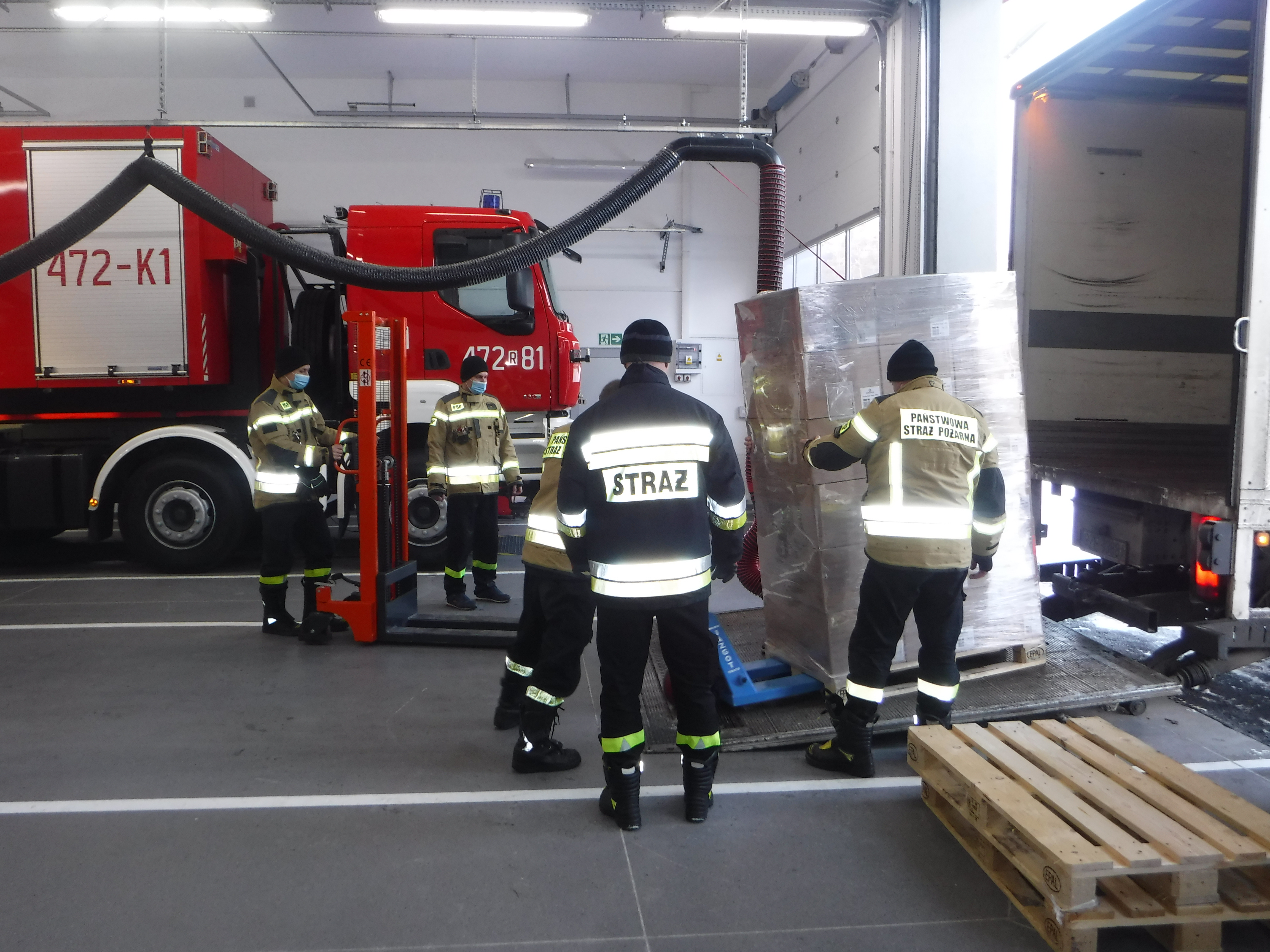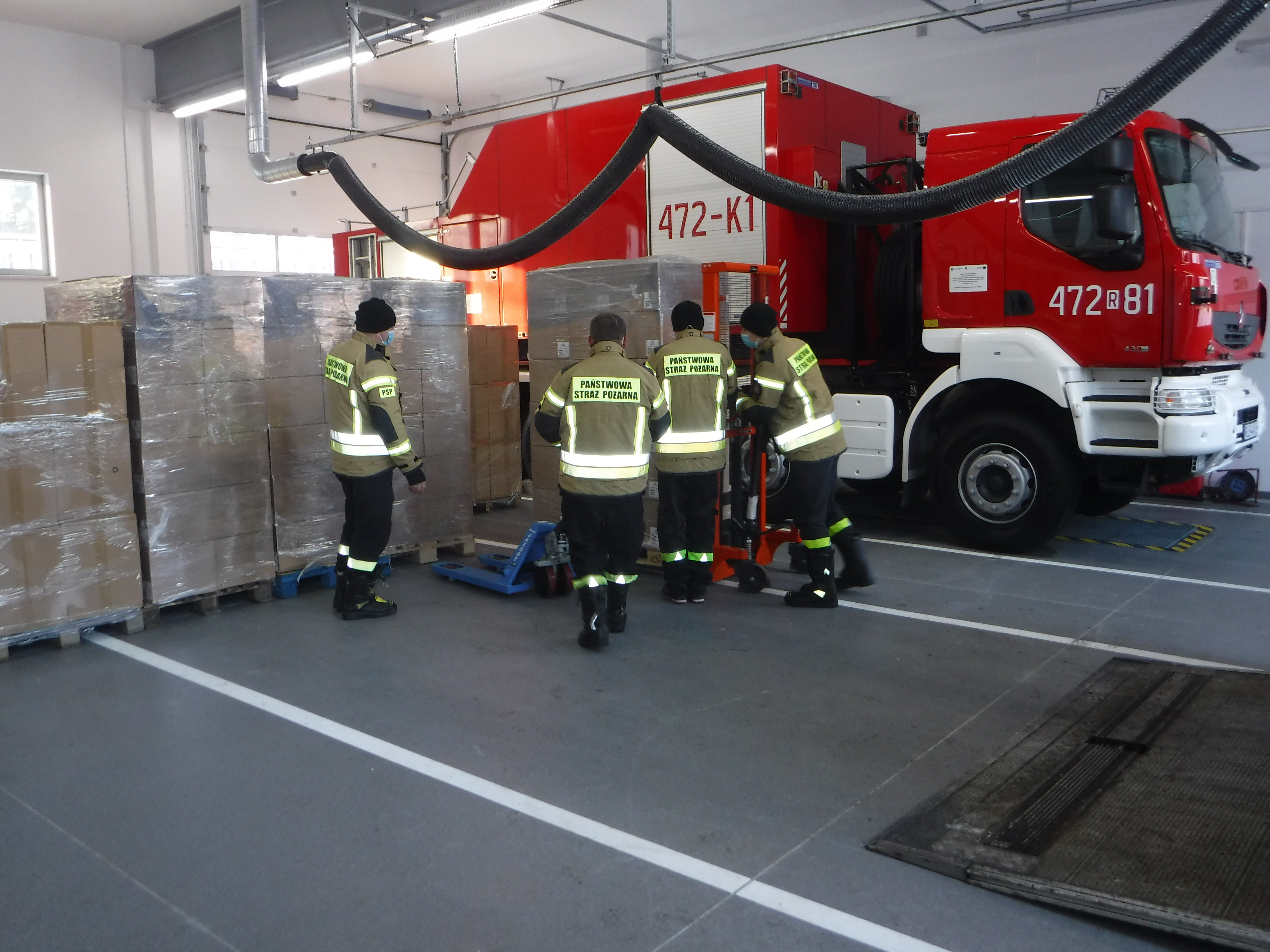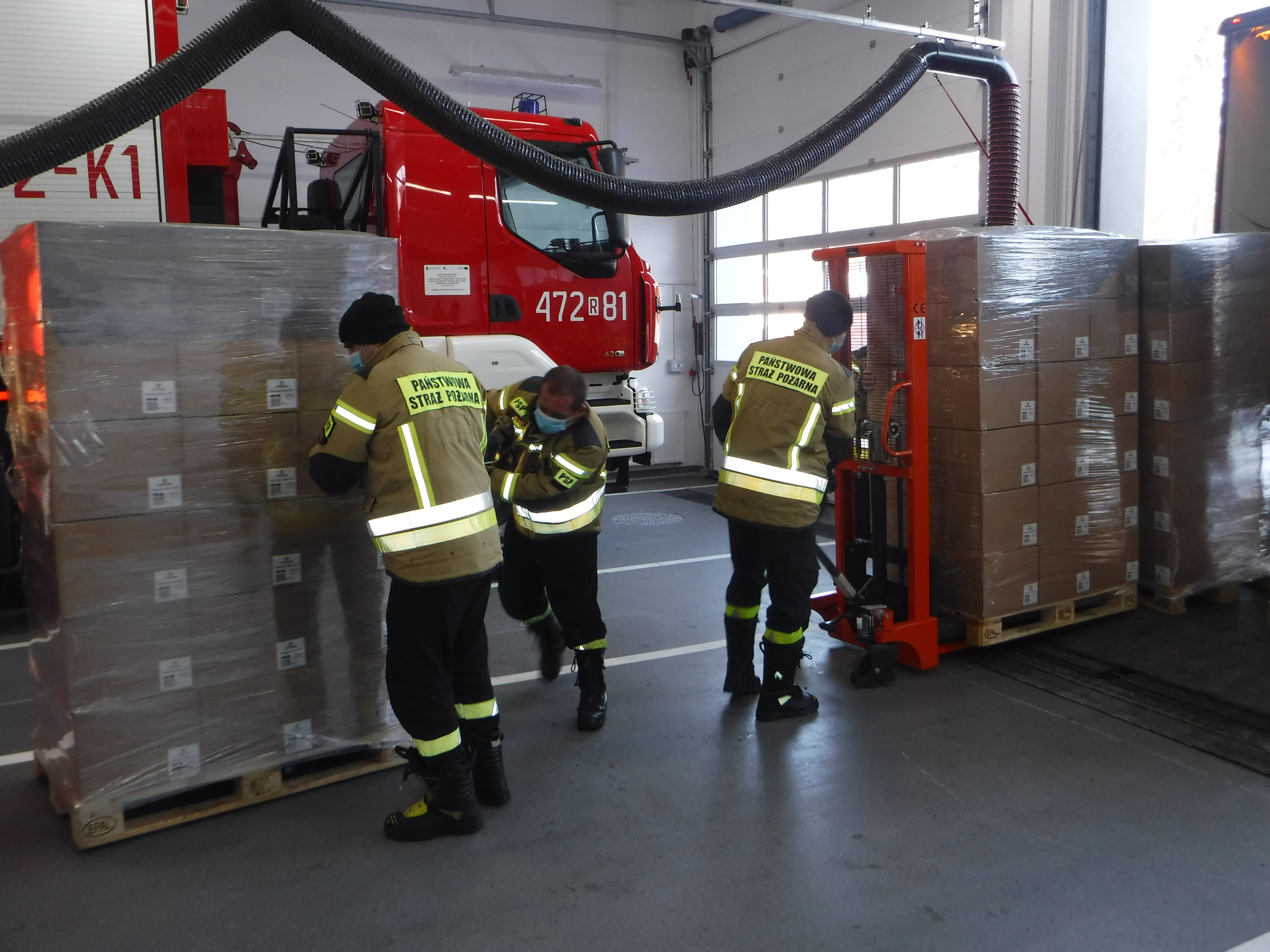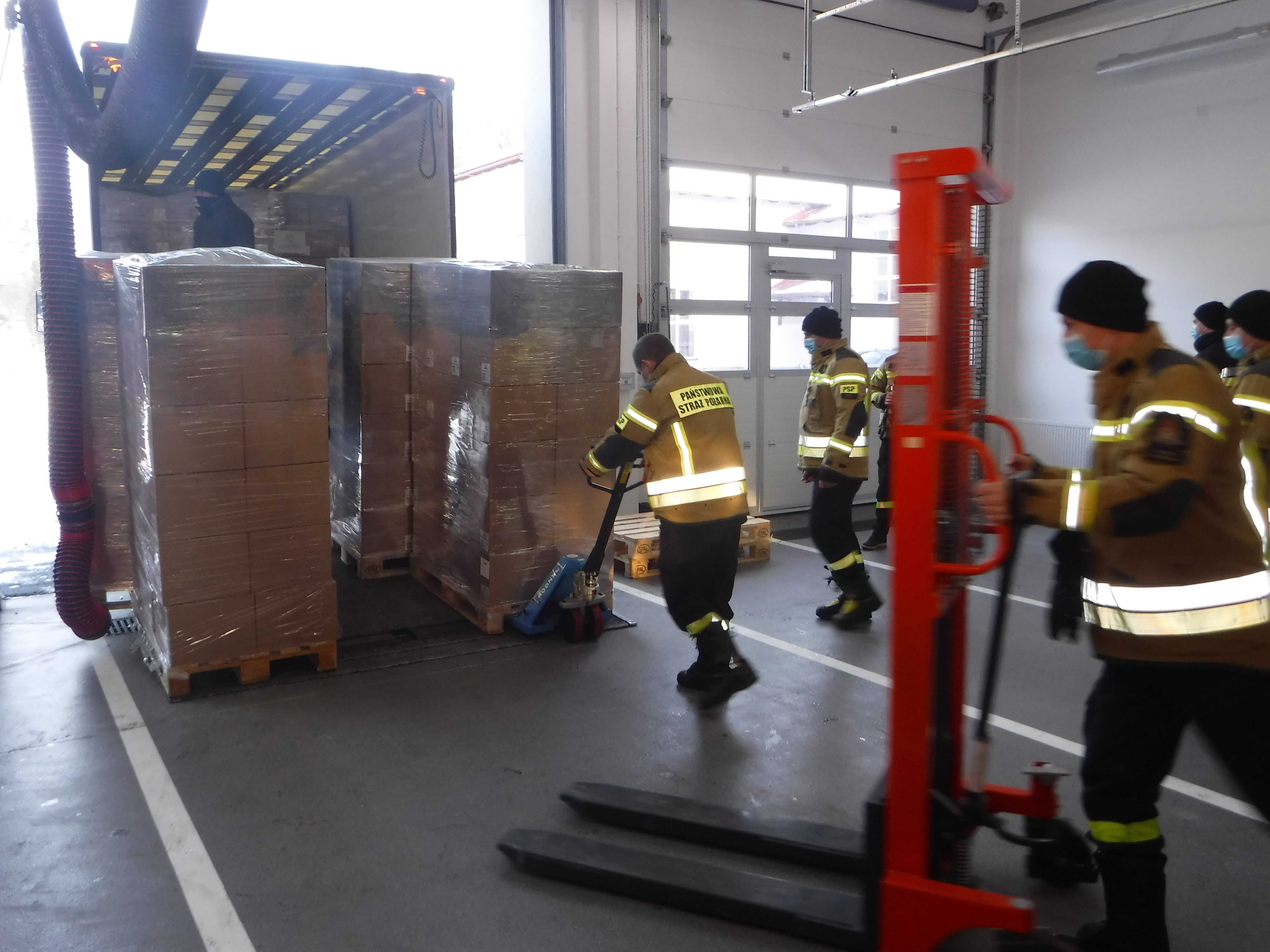 Strażacy z KP PSP w Leżajsku aktywnie uczestniczą w walce z pandemią Covid-19. W ramach dystrybucji maseczek ochronnych z Agencji Rezerw Strategicznych strażacy rozładowali 2 transporty samochodowe przewożące jednorazowo 1 mln. 350 tys. maseczek zabezpieczających. W najbliższym czasie spodziewamy się jeszcze 3 dostaw. Maseczki są magazynowane w garażach Jednostki Ratowniczo-Gaśniczej w Nowej Sarzynie. W kolejnych dniach będą one dystrybuowane do jednostek samorządowych i mieszkańców powiatu.