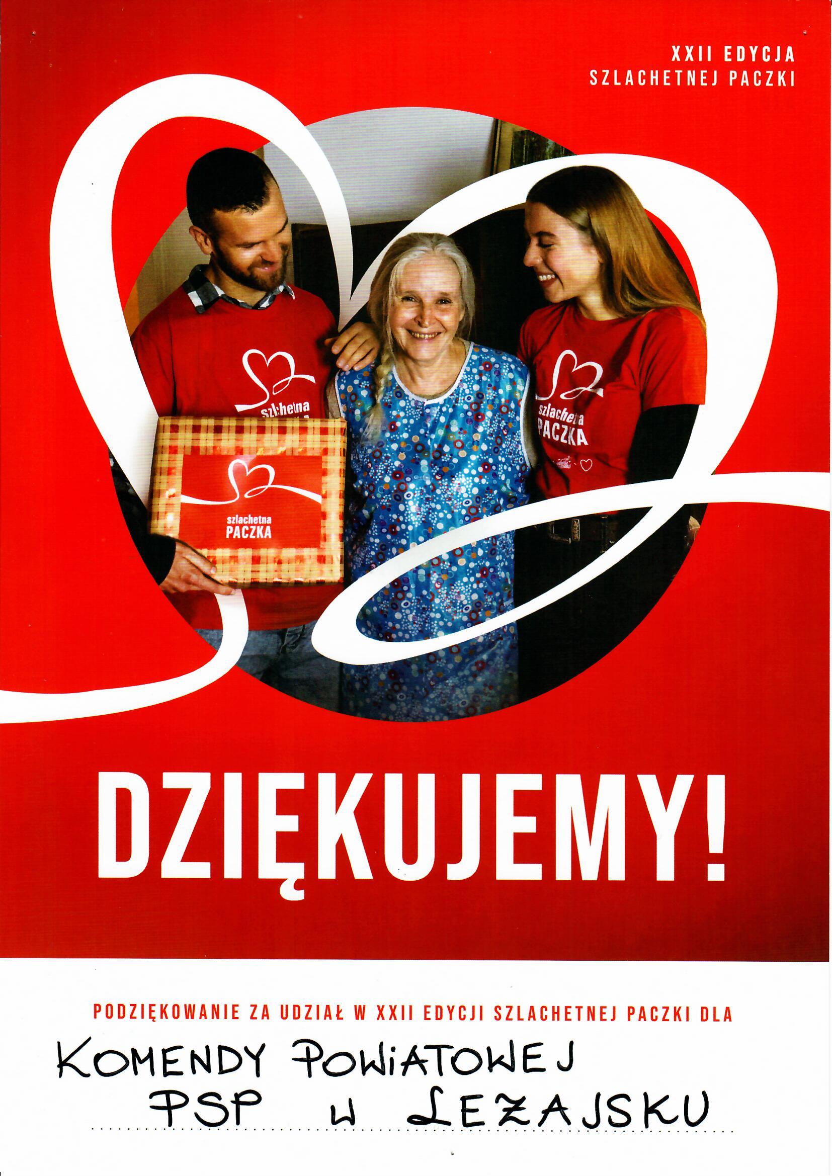 9 grudnia 2022 r. strażacy przekazali prezenty do magazynu „Szlachetnej Paczki” w Leżajsku, skąd wolontariusze przewieźli je do wybranej rodziny. Dzięki wielkiemu zaangażowaniu wszystkich funkcjonariuszy i pracowników cywilnych KP PSP w Leżajsku do potrzebującej rodziny trafiło 10 paczek zawierających m.in.: koce, odzież, obuwie, artykuły higieniczne i środki czystości, żywność, artykuły szkole, tablet oraz drobne upominki.