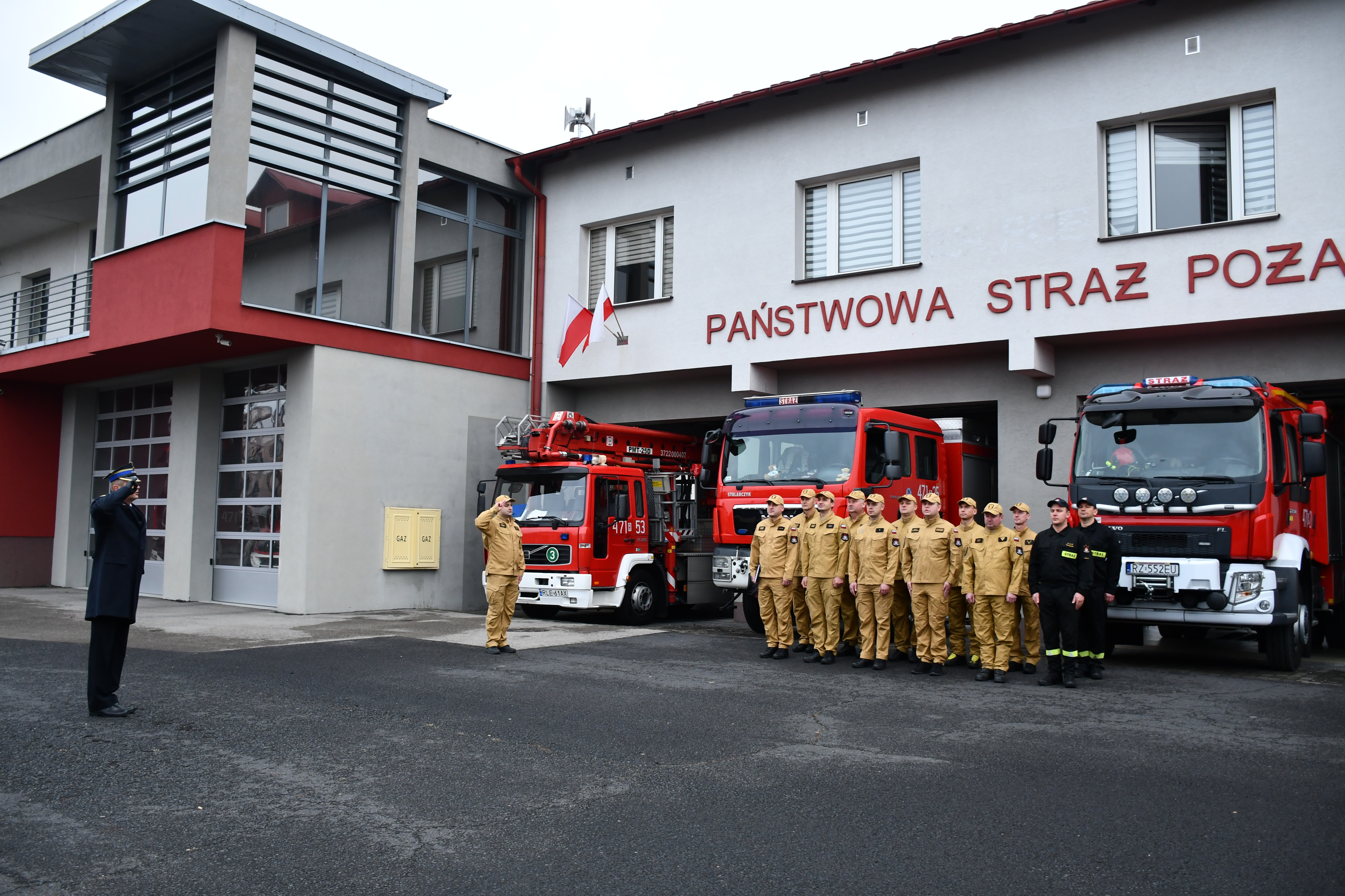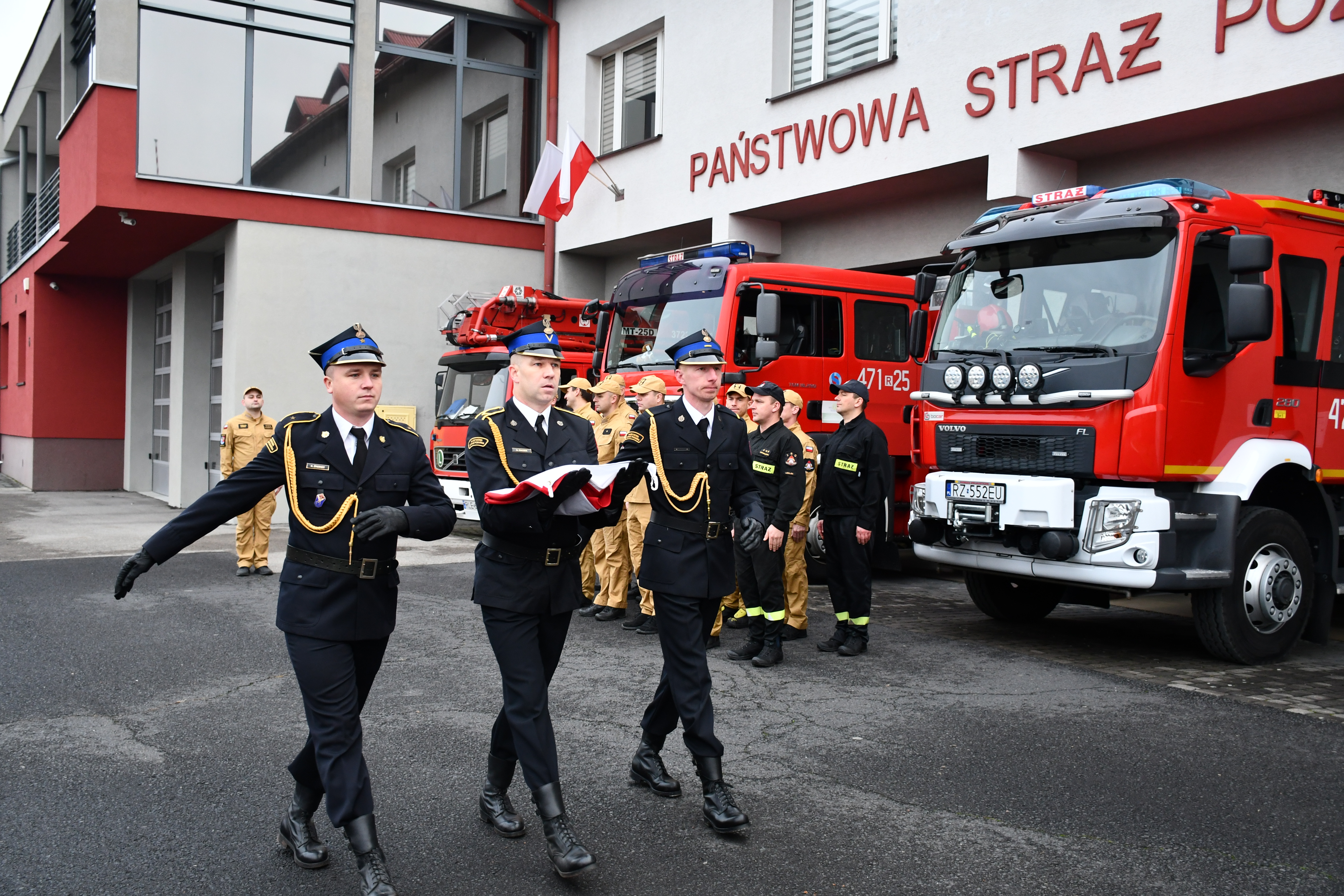 w Jednostce Ratowniczo Gaśniczej w Leżajsku oraz Nowej Sarzynie, podnieśli Flagę Państwową RP na maszt i odśpiewali Hymn Państwowy Rzeczypospolitej Polskiej.