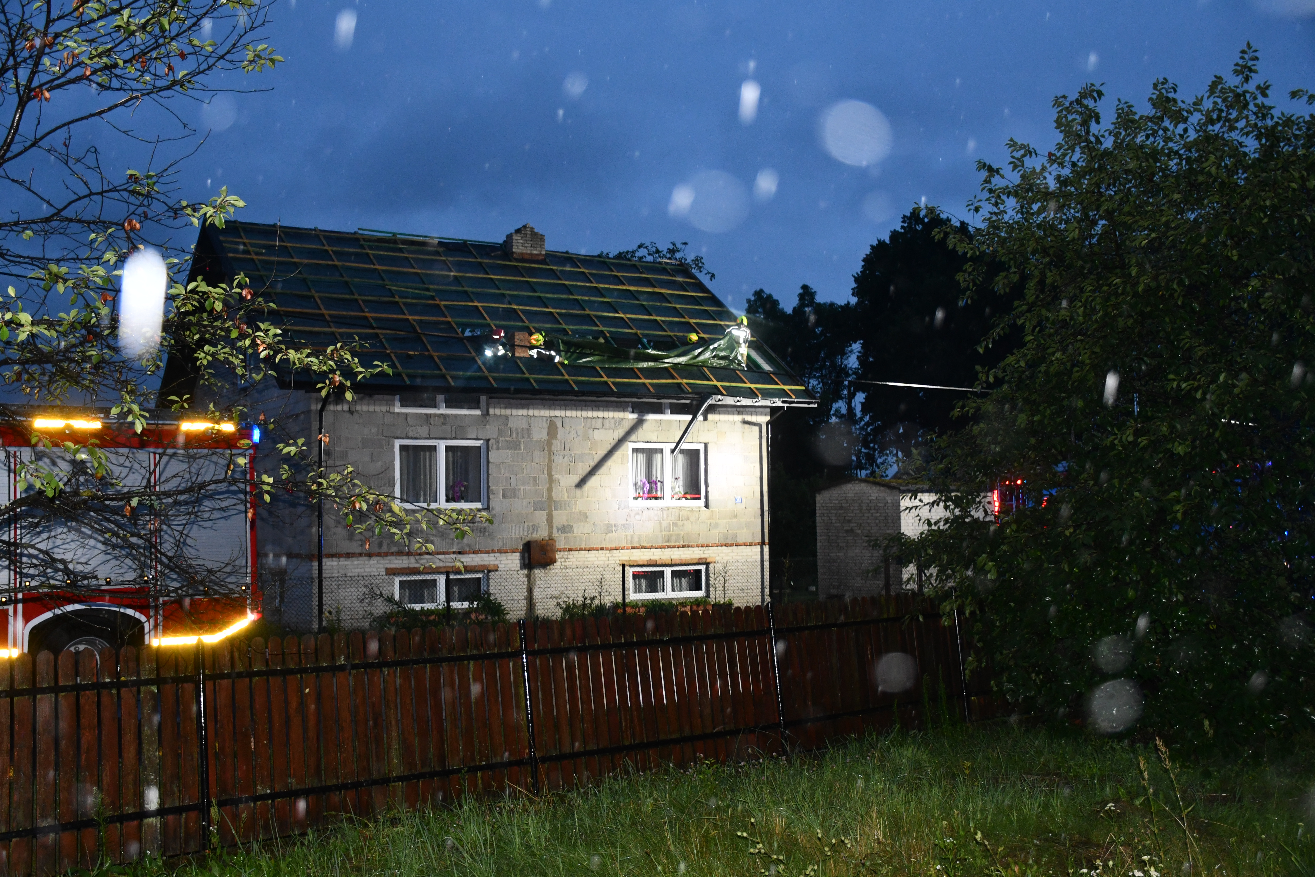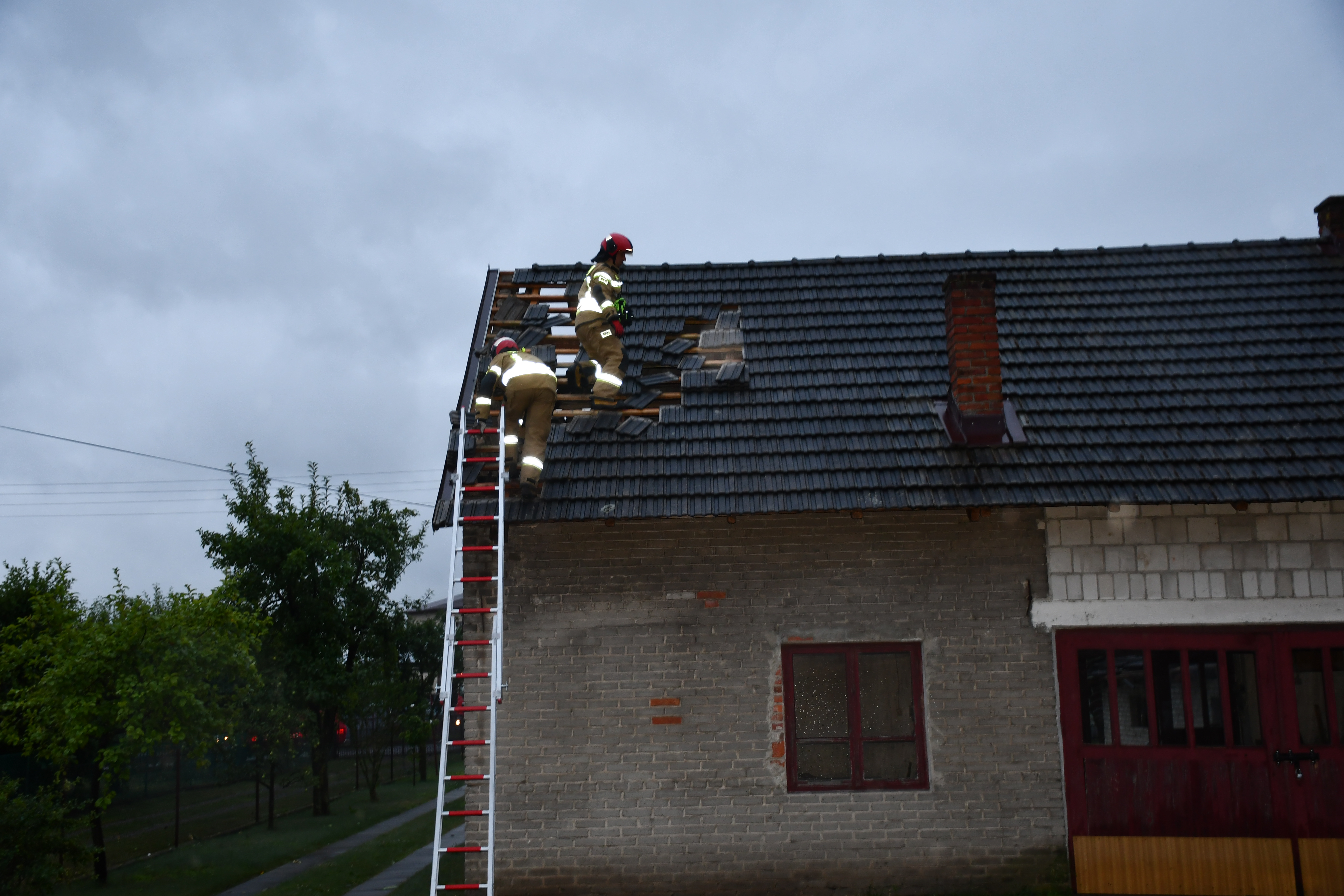 12 interwencji dotyczyło uszkodzonych dachów budynków mieszkalnych i gospodarczych, 3 interwencje przy połamanych konarach drzew, działania przy zalanej piwnicy i uszkodzonej latarni.