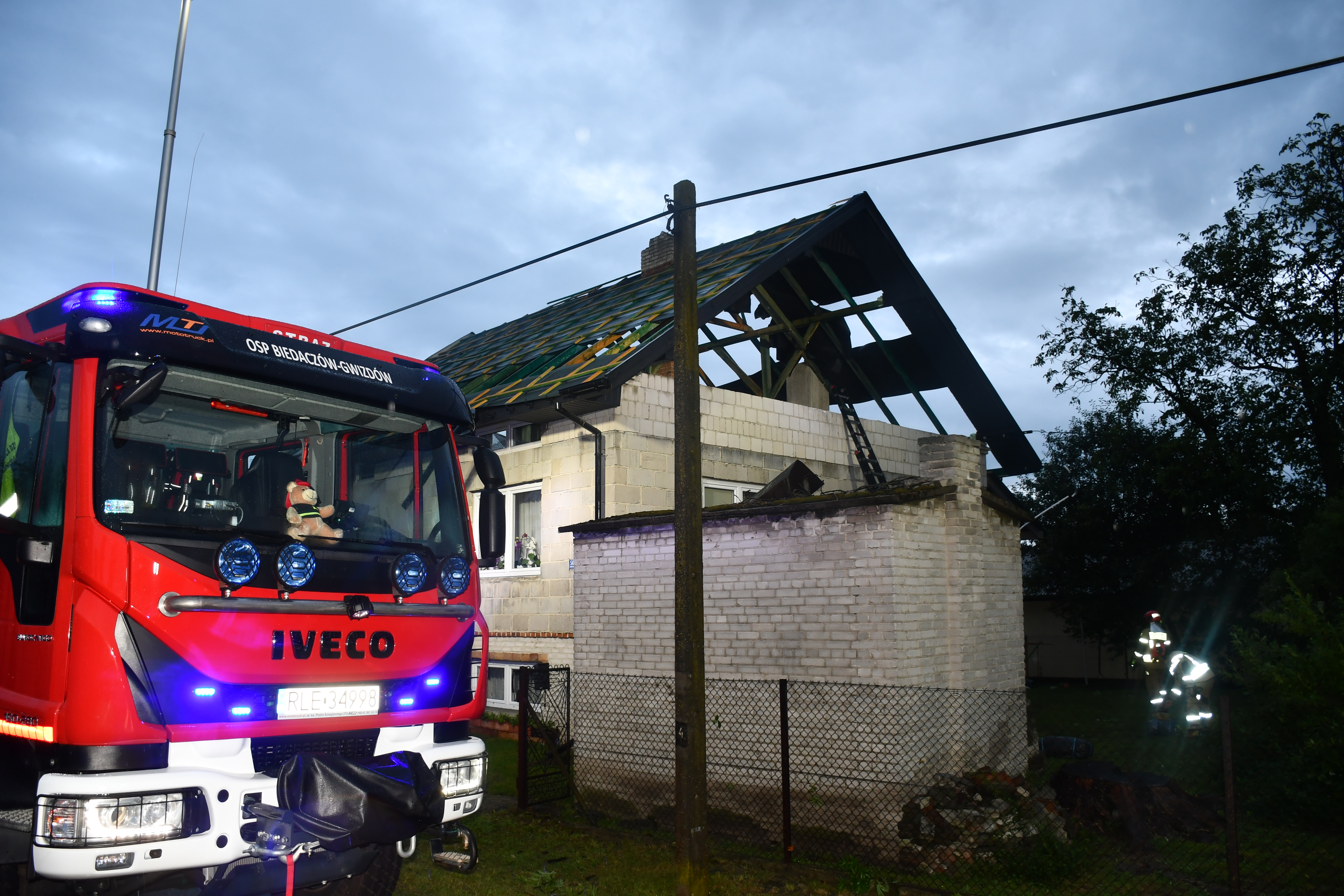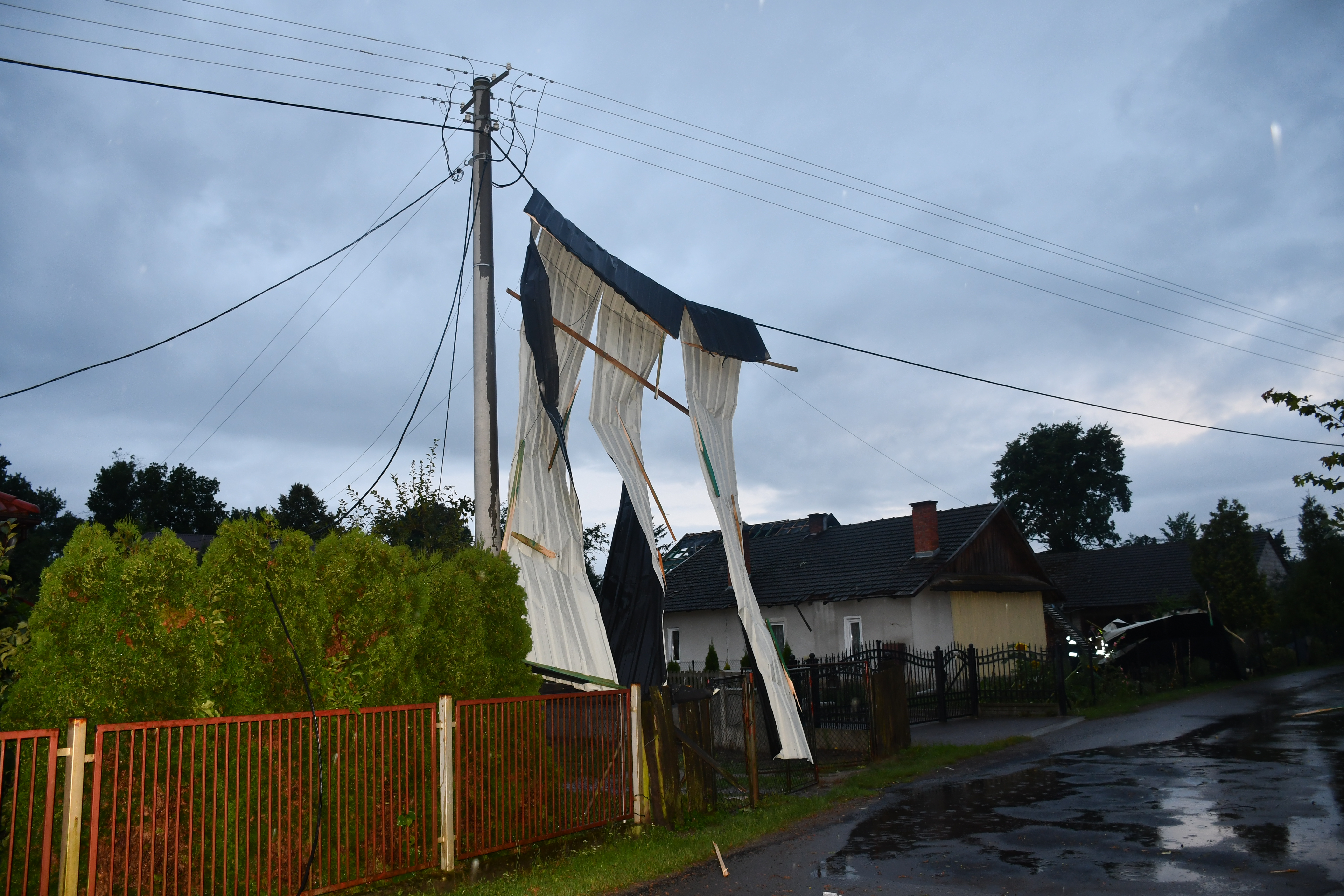 Najtrudniejsza sytuacja była w Wierzawicach, gdzie silny wiatr miał znamiona trąby powietrznej. W tej miejscowości interweniowaliśmy 14 razy, w tym: 5 przy uszkodzonych dachach budynków mieszkalnych, 7 przy uszkodzonych dachach budynków gospodarczych, po 1 interwencji przy połamanych konarach drzew oraz zalanej piwnicy.