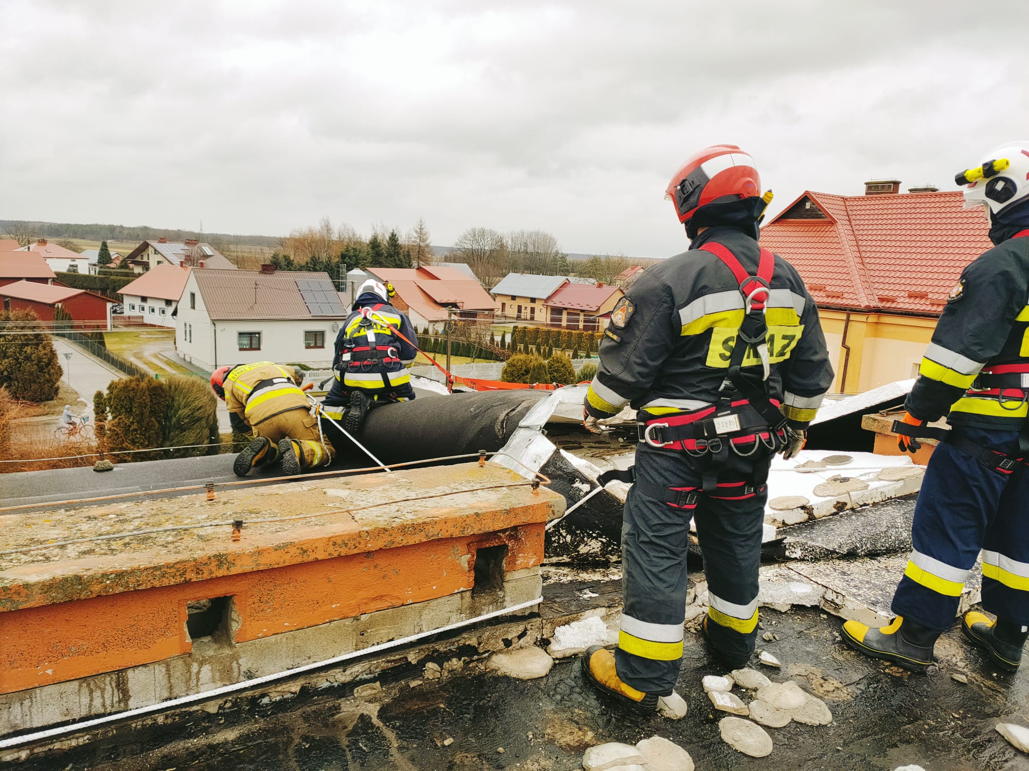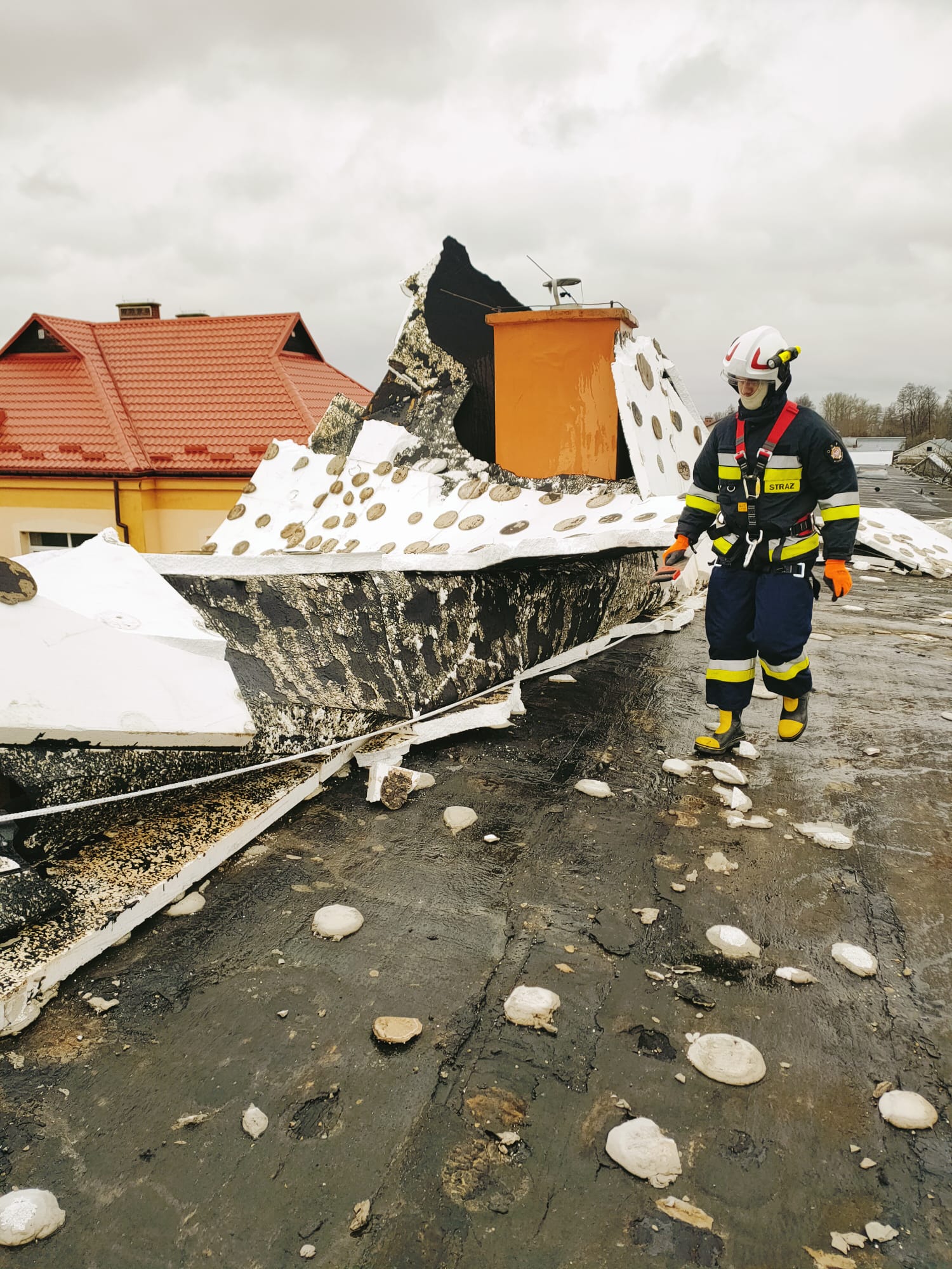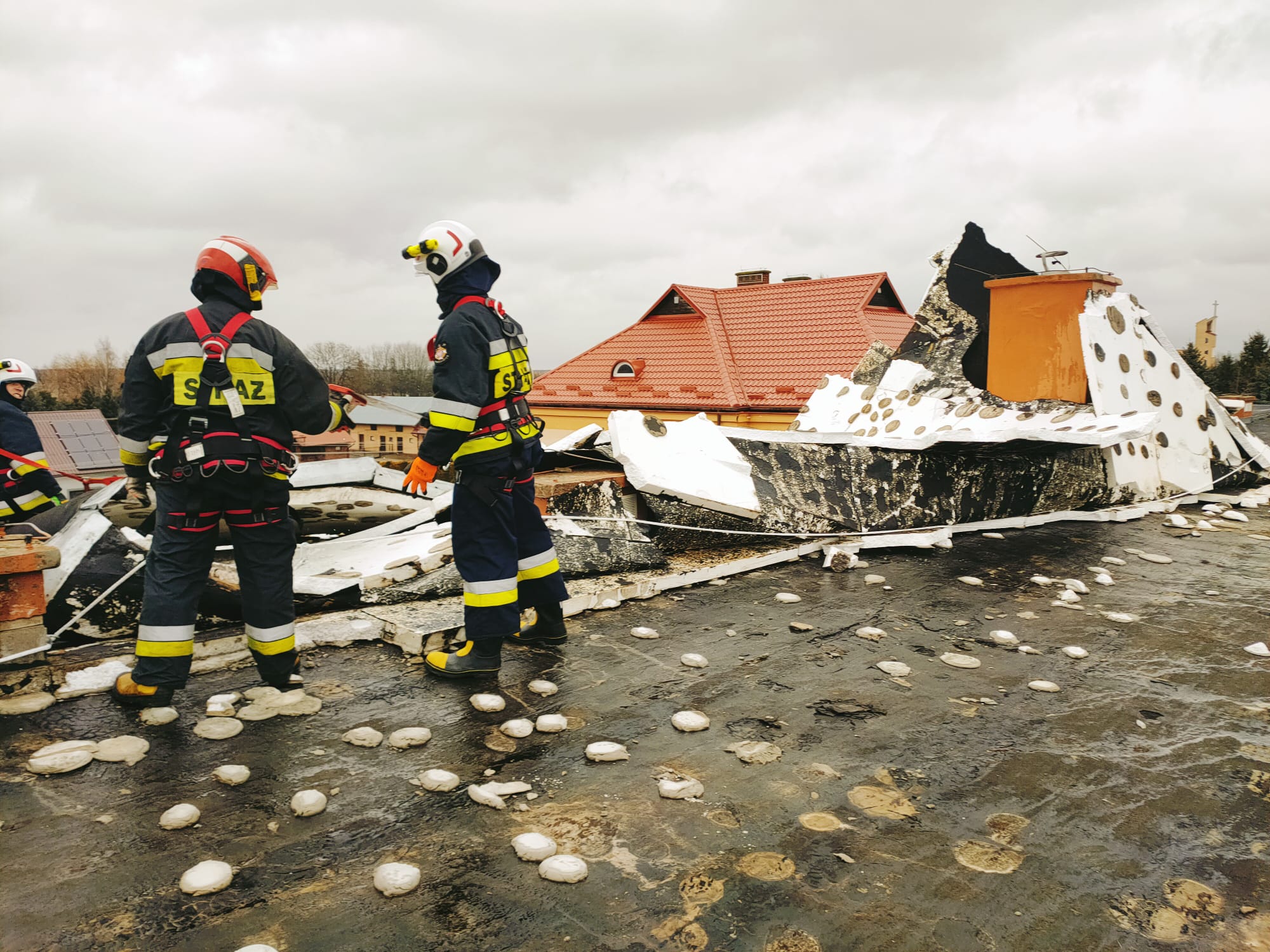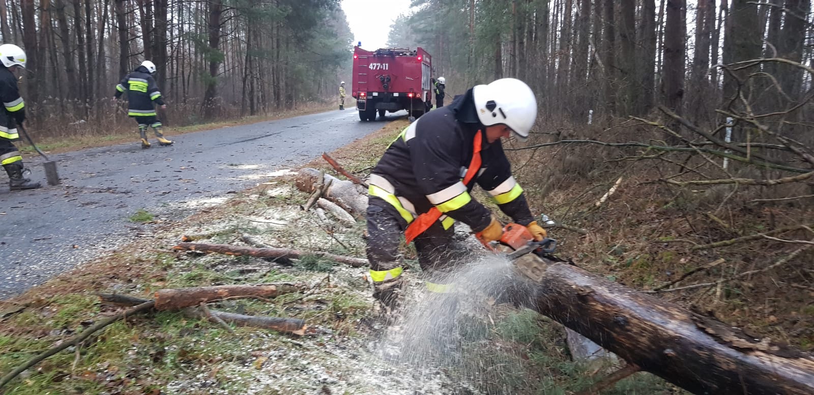 W 4 przypadkach interwencje dotyczyły zabezpieczenia uszkodzonych dachów na budynkach użyteczności publicznej i mieszkalnych. 4 wyjazdy związane były z usuwaniem połamanych drzew i konarów.