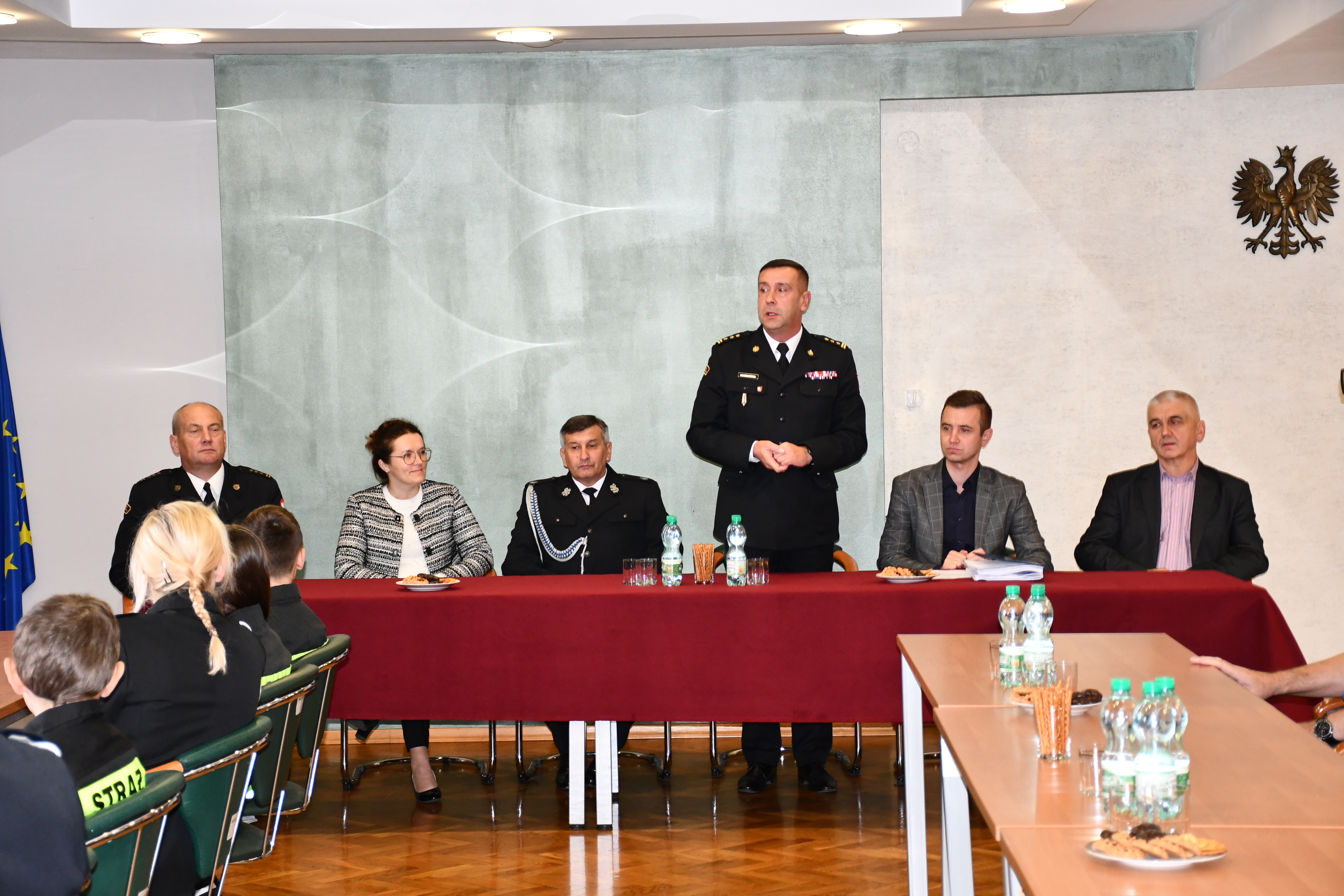 Wręczenie promes na zakup sprzętu i wyposażenia dla Młodzieżowych Drużyn Pożarniczych OSP powiatu leżajskiego