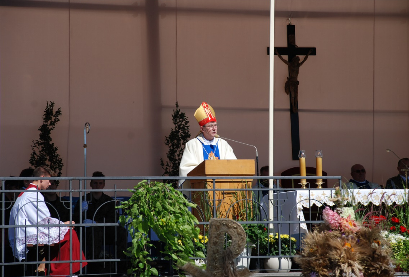 Do sanktuarium przybyli również parlamentarzyści, przedstawiciele administracji rządowej i samorządowej oraz rolnicy z wieńcami dożynkowymi, gdyż pielgrzymka połączona była z XXI Dożynkami Powiatowymi.