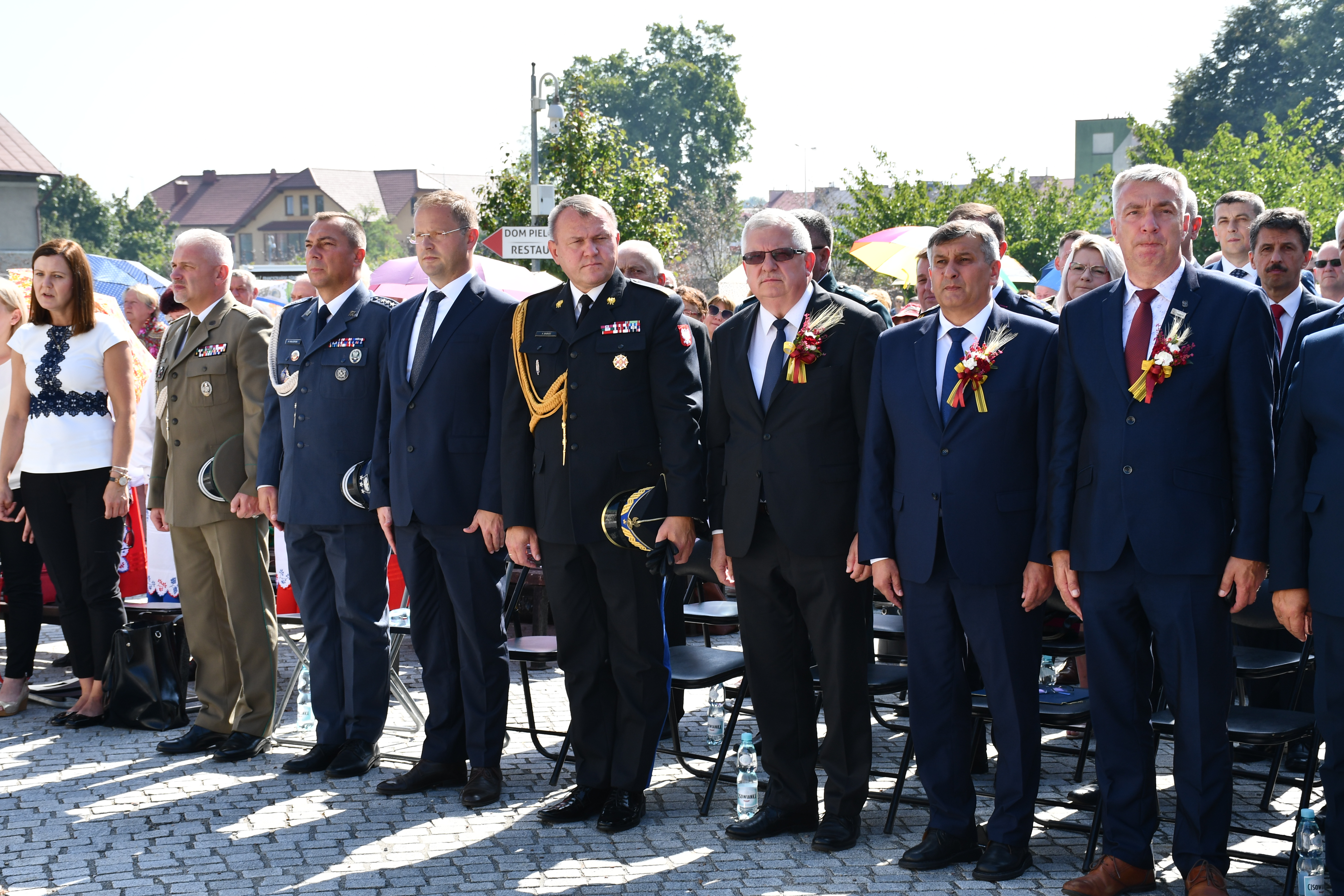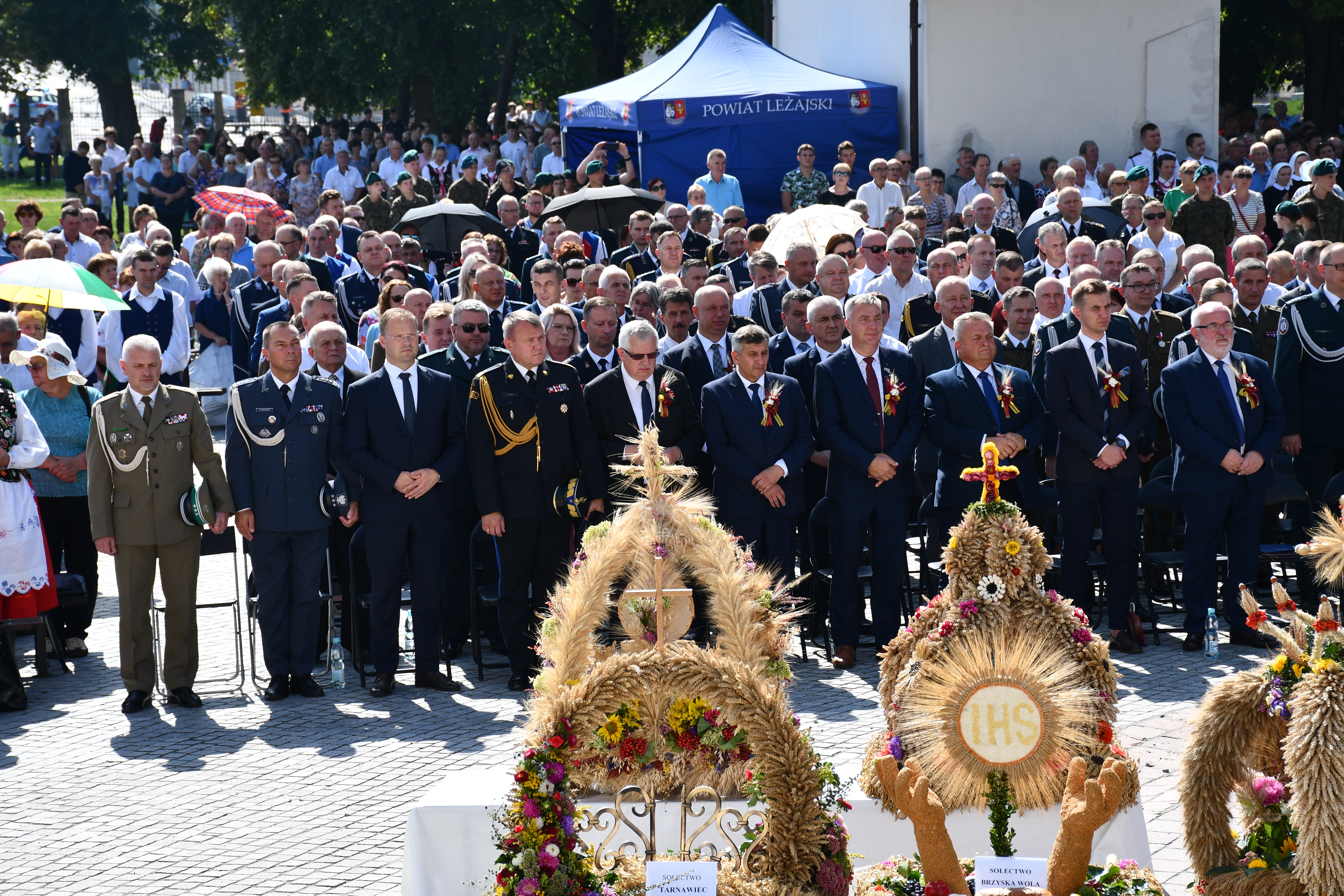 Do sanktuarium przybyli również parlamentarzyści, przedstawiciele administracji rządowej i samorządowej oraz rolnicy z wieńcami dożynkowymi, gdyż pielgrzymka połączona była z XXIV Dożynkami Powiatowymi.