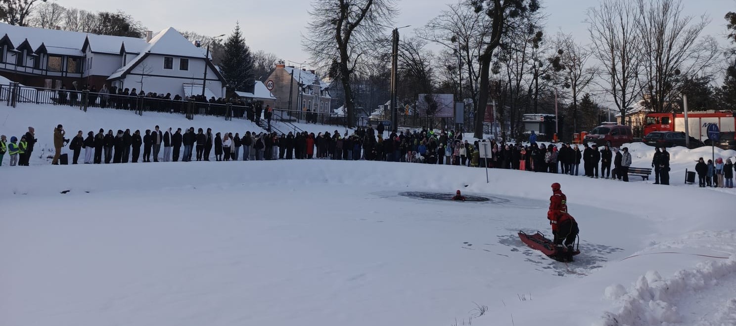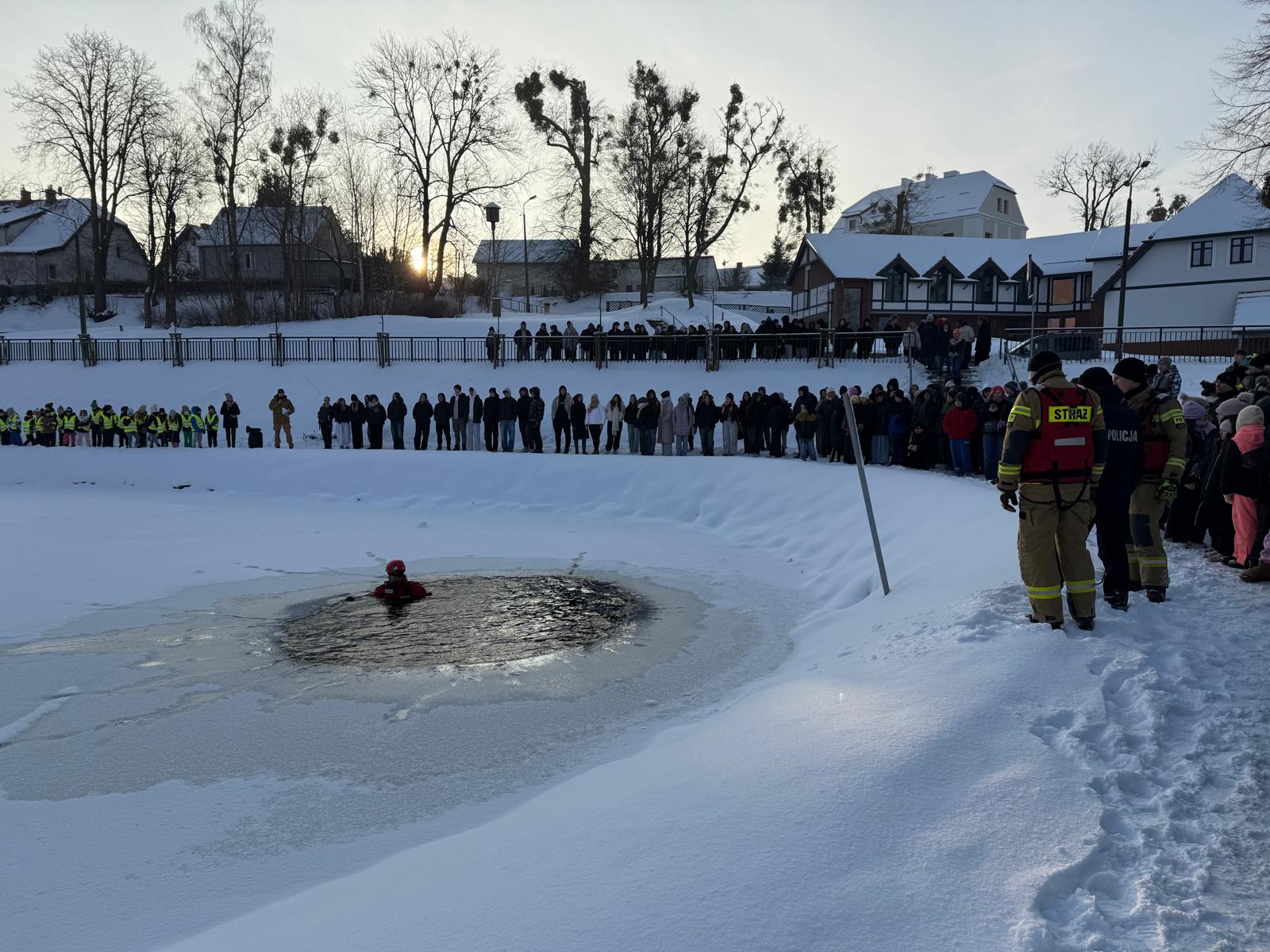 Pokaz odbył się w fosie przy Hotelu Krasickim w Lidzbarku Warmińskim i był skierowany do dzieci oraz młodzieży szkolnej. Jego celem było przypomnienie zasad bezpieczeństwa, zwiększenie świadomości zagrożeń oraz przestrzeganie przed niebezpieczeństwami związanymi z zimowym wypoczynkiem.