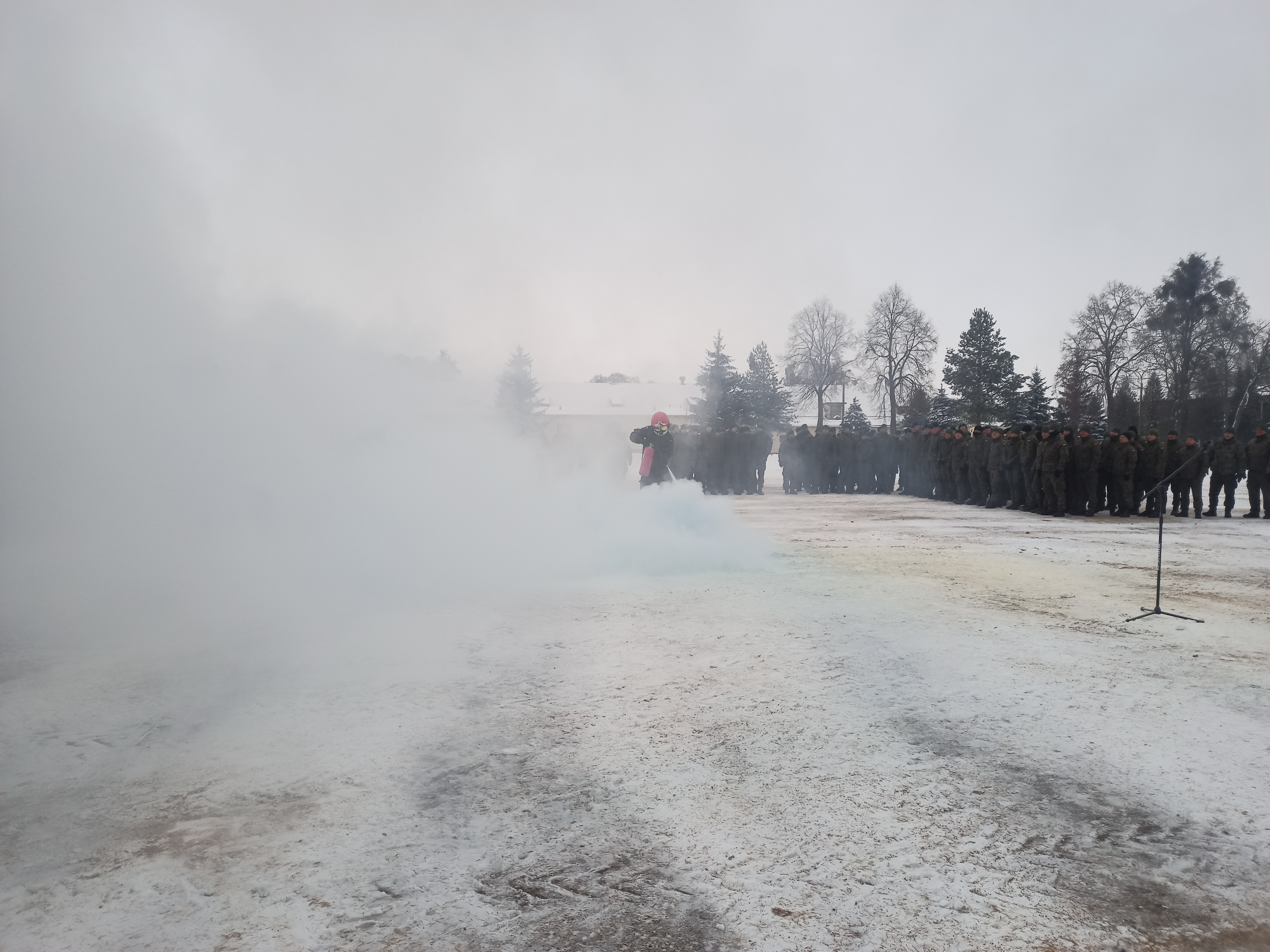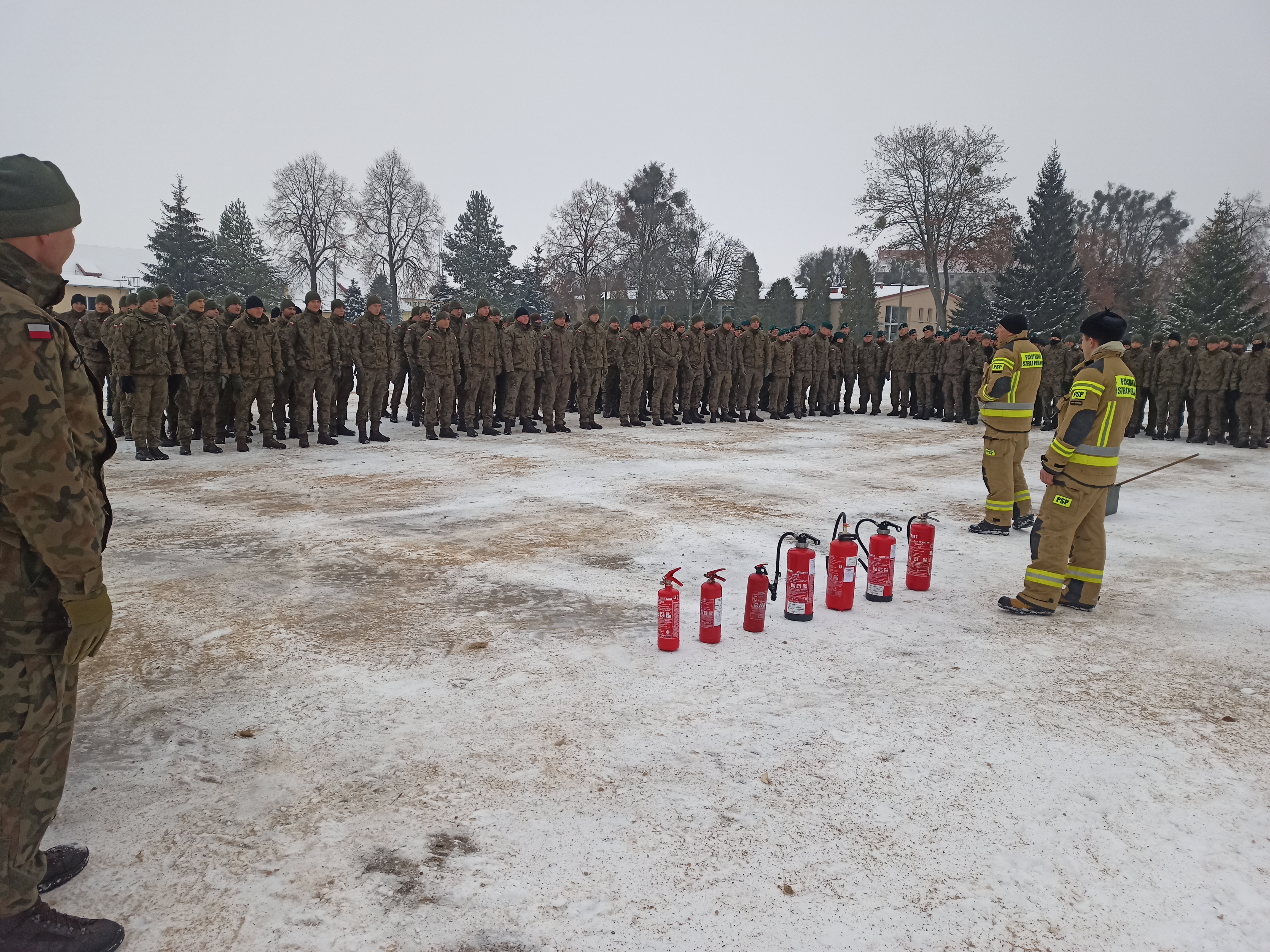 Na zakończenie przeprowadzony został instruktarz przeciwpożarowy dla personelu jednostki wojskowej, który zwieńczony zostało praktycznym wykorzystaniem podręcznego sprzętu gaśniczego.