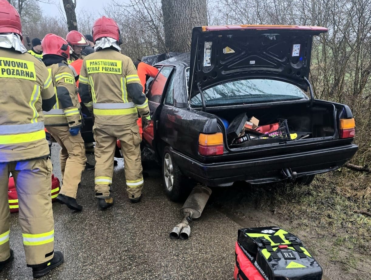 W piątek, 12 grudnia, przed godziną 9:00, na drodze powiatowej pomiędzy miejscowościami Samolubie a Krekole doszło do zdarzenia drogowego. Samochód osobowy, którym kierował młody mężczyzna, uderzył czołowo w przydrożne drzewo.