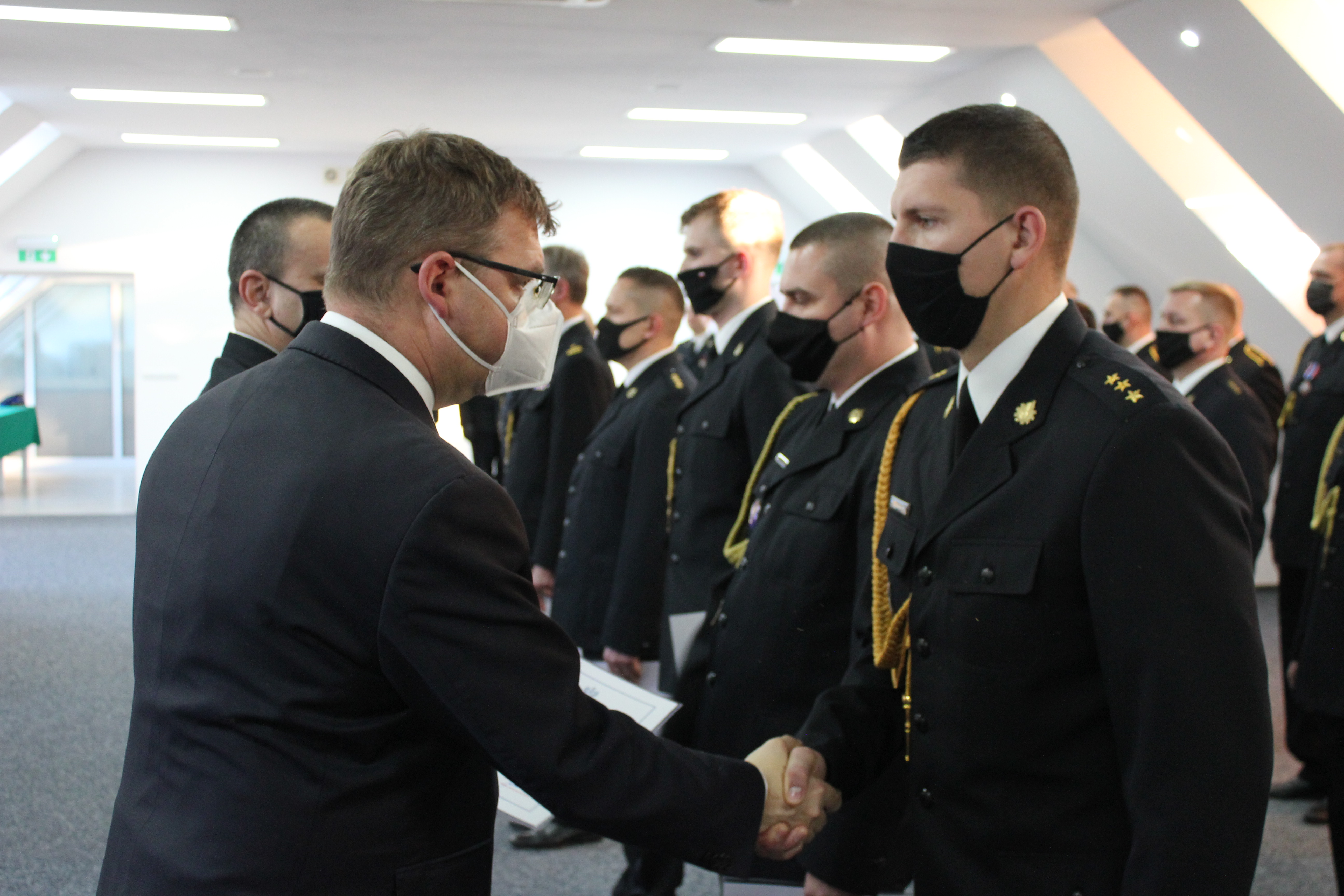 10 listopada br. w siedzibie Ośrodka Szkolenia Państwowej Straży Pożarnej w Olsztynie odbyły się wojewódzkie obchody Święta Niepodległości. Podczas uroczystości odznaczono funkcjonariuszy z województwa Warmińsko-Mazurskiego, nadając odznaczenia, awanse na wyższe stopnie służbowe oraz mianowania na wyższe stanowiska służbowe w formacji mundurowej. Wśród awansowanych i odznaczonych znaleźli się również funkcjonariusze Komendy Powiatowej Państwowej Straży Pożarnej w Lidzbarku Warmińskim. Awans na stopień kapitana otrzymał mł. kpt. Damian Stankiewicz, a Srebrną Odznaką „Zasłużony dla Ochrony Przeciwpożarowej” został odznaczony asp. sztab. Krzysztof Szram.