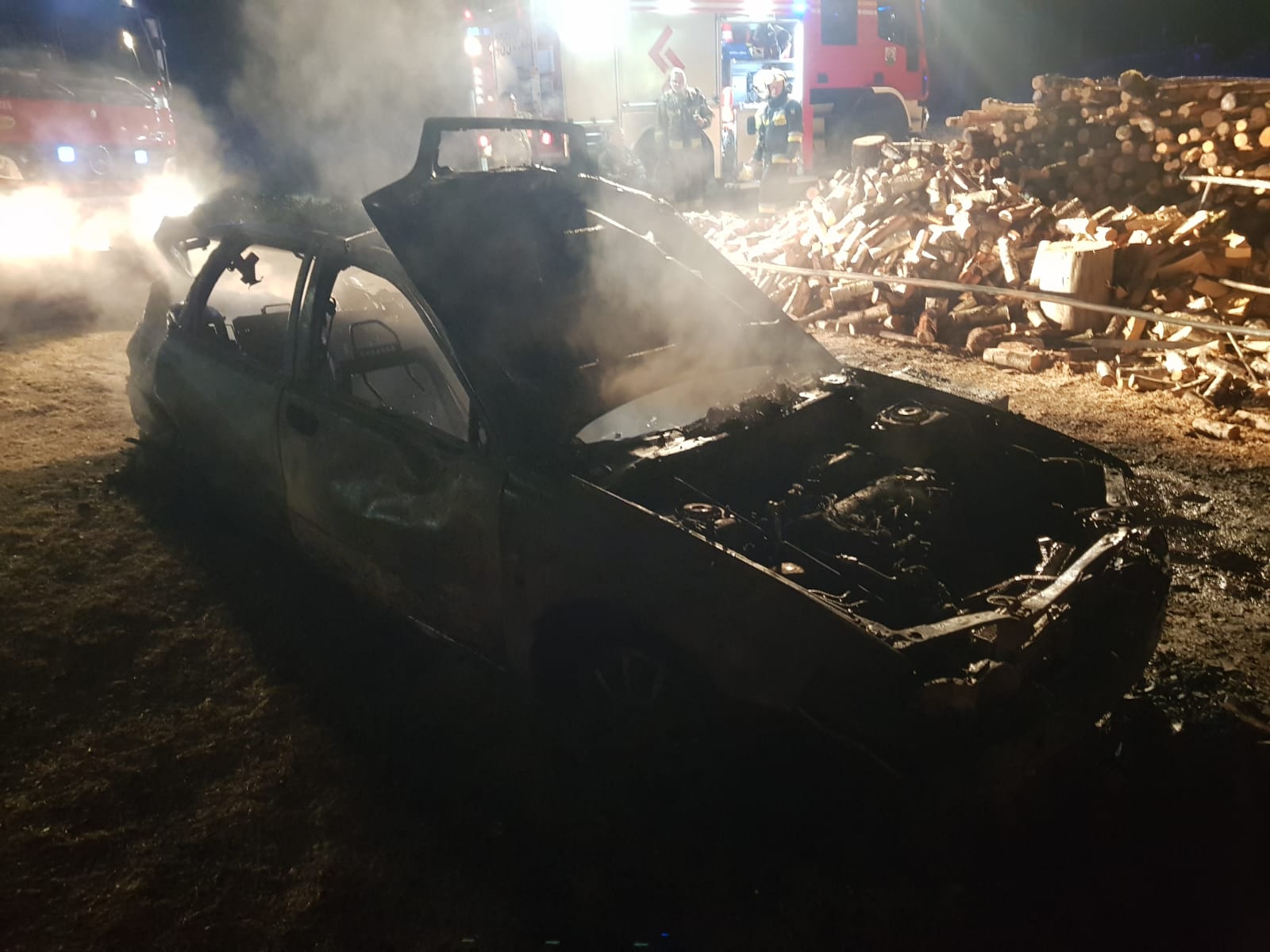Po przybyciu strażaków pod wskazany adres dyspozycji, zastano pożar budynku wolnostojącego przeznaczenia gospodarczo-garażowego. Bliskie sąsiedztwo, bezpośrednio stwarzało zagrożenie dla budynku jednorodzinnego. W pełni rozwinięty pożar, obejmował całą kubaturę obiektu a elementy konstrukcyjne dachu strawione przez ogień częściowo zawaliły się do środka. Wewnątrz znajdował się samochód osobowy oraz wyposażenie warsztatowe, które uległo zniszczeniu. Działania straży pożarnej polegały m.in. na zabezpieczeniu miejsca zdarzenia, oświetleniu terenu działań, podaniu dwóch prądów gaśniczych w natarciu na miejsce pożaru oraz podaniu jednego prądu wody w obronie na budynek mieszkalny. Zapewniono również ciągłość podawania środka gaśniczego oraz przeprowadzono prace rozbiórkowe. Spalony pojazd wyciągnięto na zewnątrz i ugaszono. Działania trwały ponad 3 godziny.