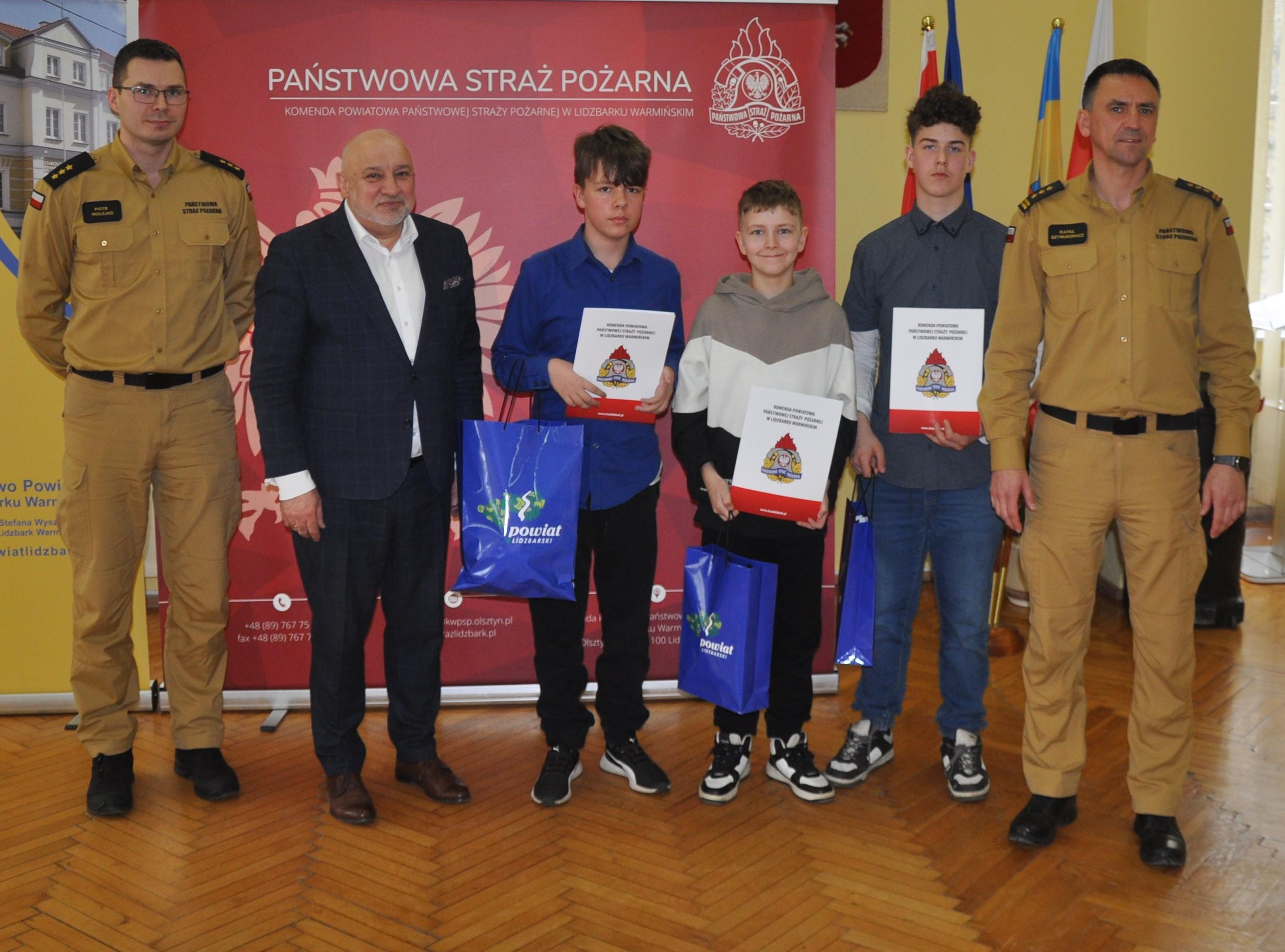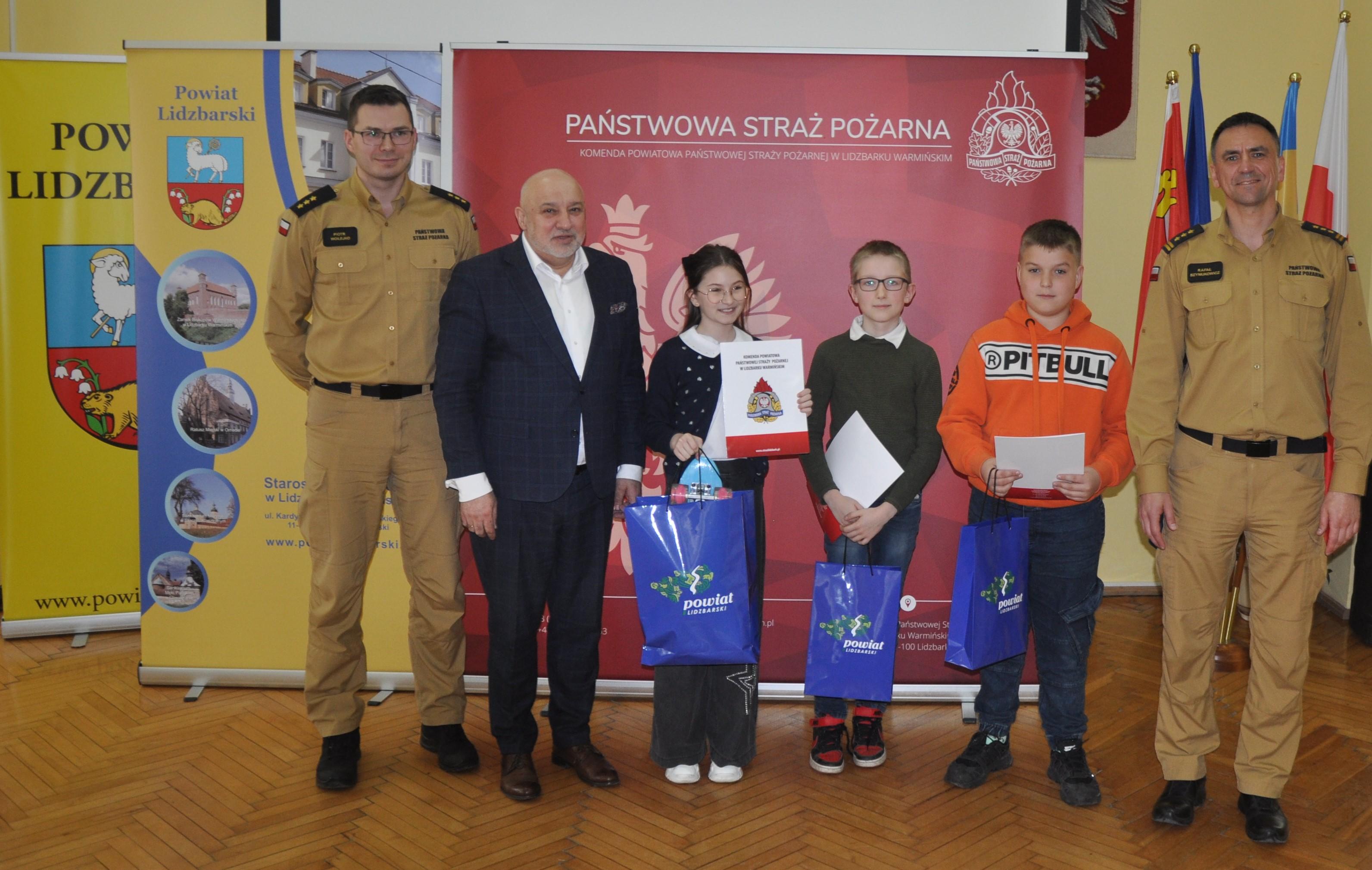 W dniu 23 kwietnia 2024 r. w sali konferencyjnej Starostwa Powiatowego w Lidzbarku Warmińskim odbyły eliminacje powiatowe Ogólnopolskiego Turnieju Wiedzy Pożarniczej "Młodzież Zapobiega Pożarom". Zgodnie z regulaminem konkursu uczestnicy zostali podzieleni na 3 grupy wiekowe: