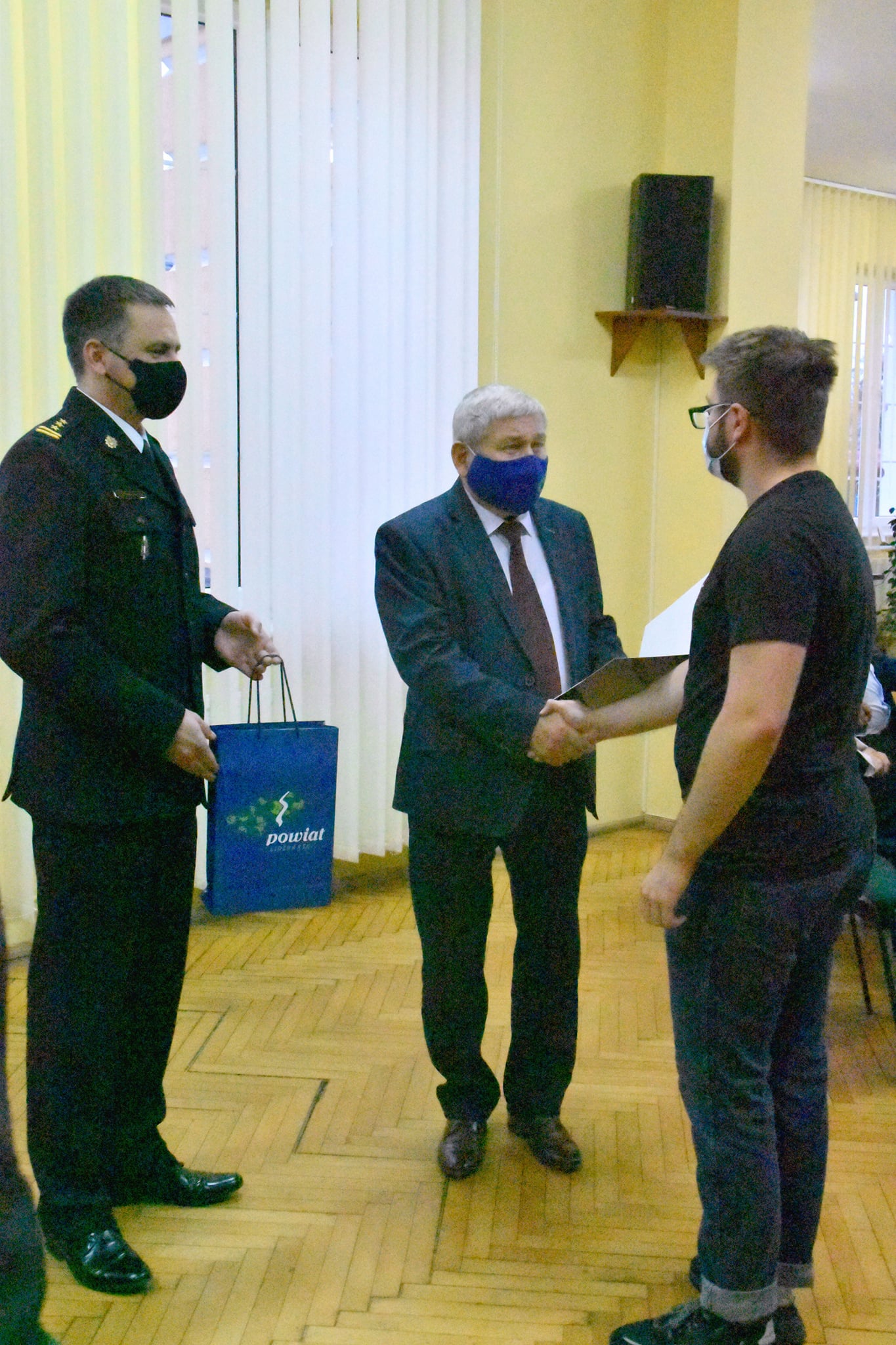 W dniu 16 grudnia br. w siedzibie Starostwa Powiatowego w Lidzbarku Warmińskim rozdano pierwsze nagrody w ramach programu „Czujka w każdym domu”. Z rąk starosty, Jana Harhaja oraz st.bryg. Rafała Szymukowicza, Komendanta Powiatowego lidzbarskiej straży nagrodzono mieszkańców naszego powiatu, którzy prawidłowo wypełnili formularz online i w drodze losowania zostali wyłonieni do głównej nagrody, czyli czujki tlenku węgla i czujki dymu.