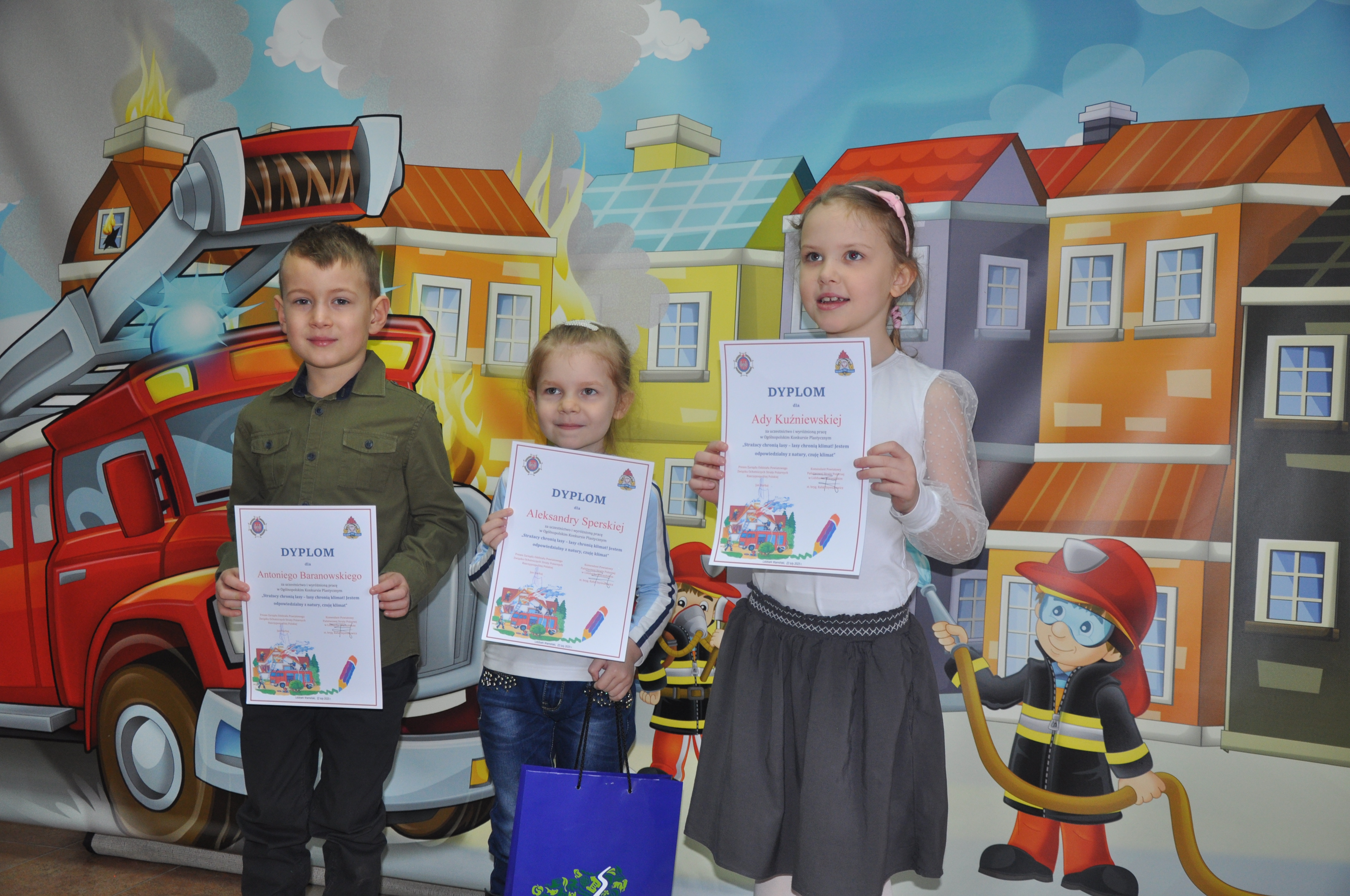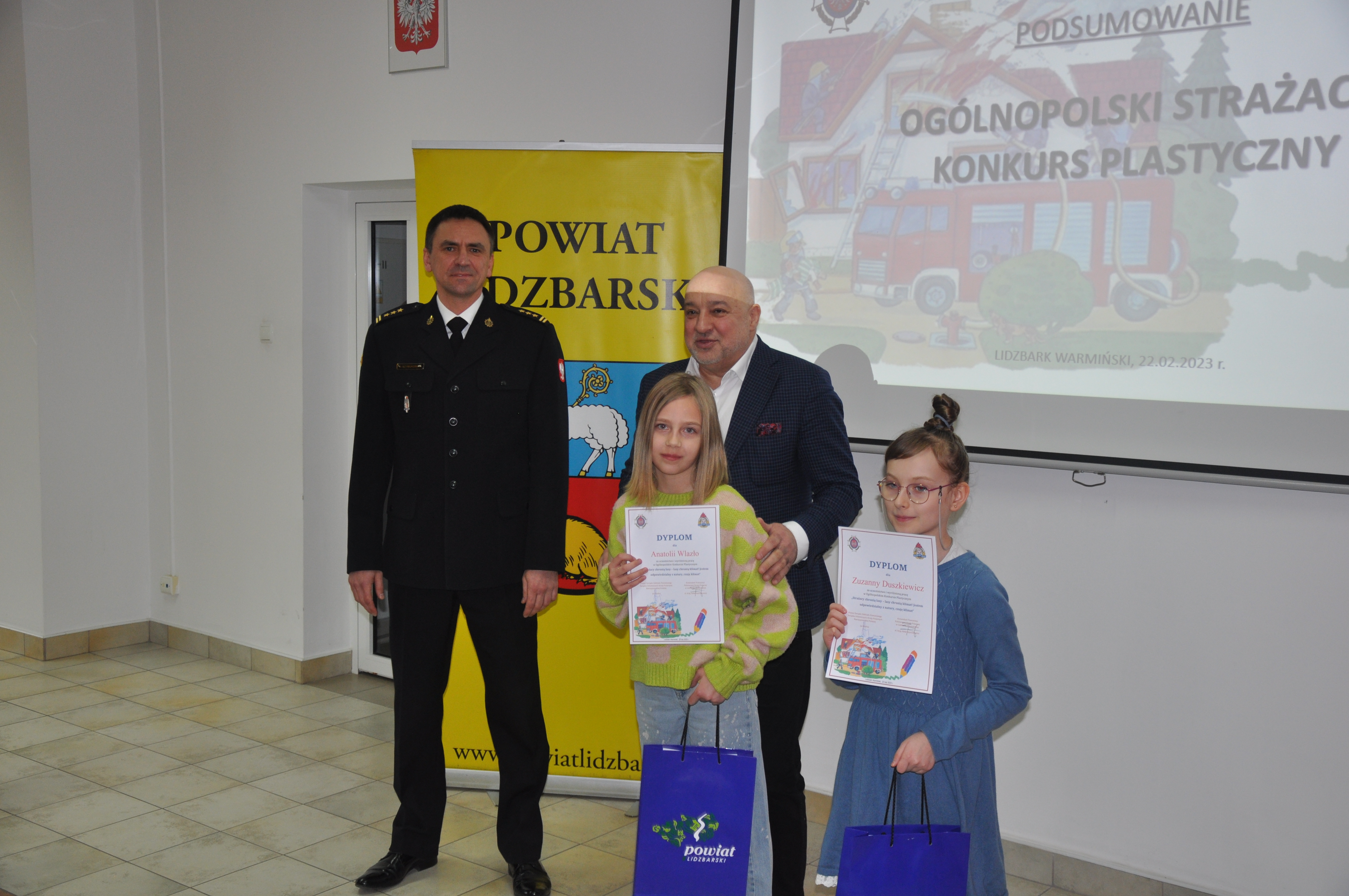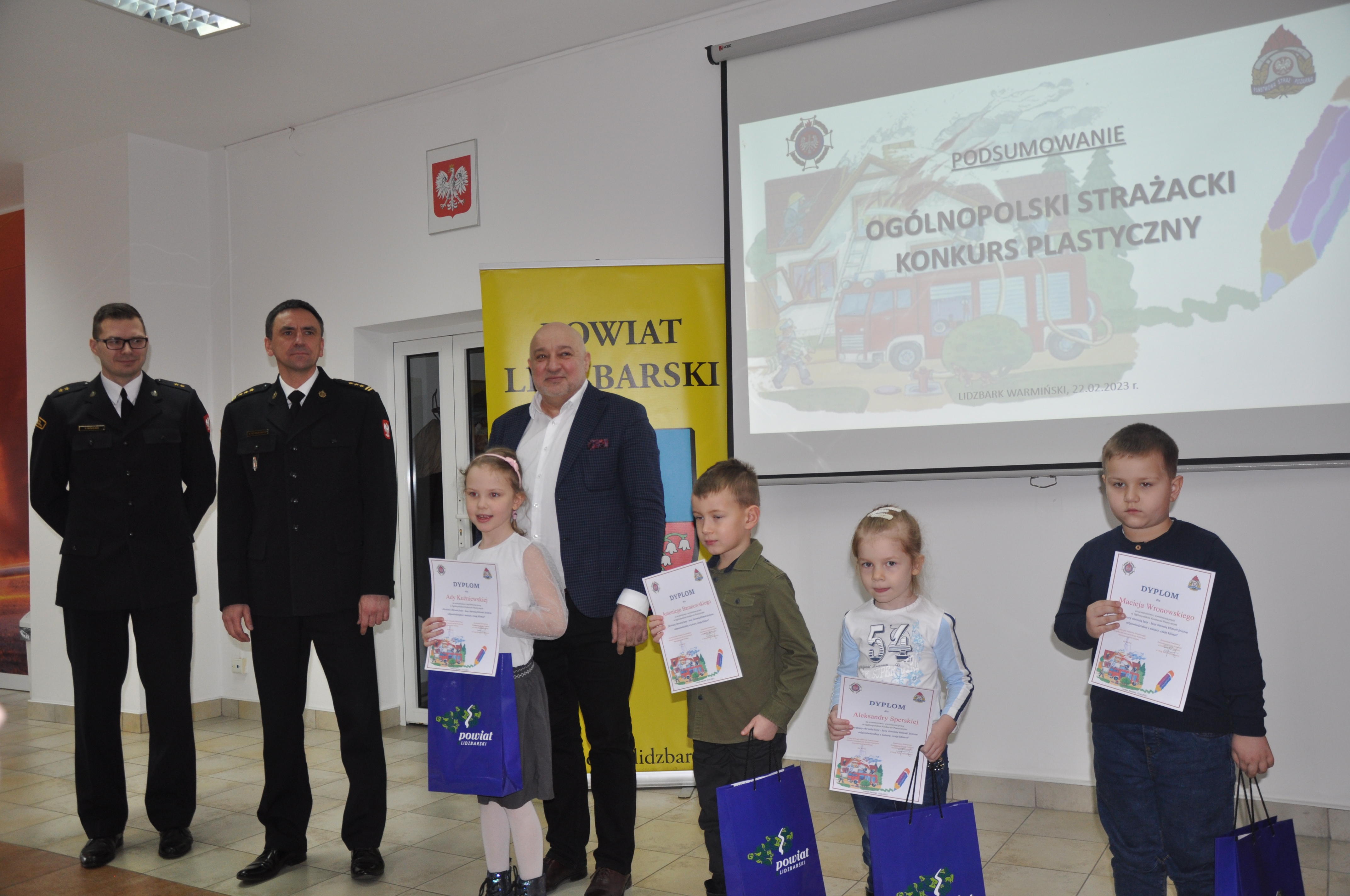 Do lidzbarskich strażaków wpłynęło ponad 180 prac plastycznych w poszczególnych grupach wiekowych. Z rąk Wicestarosty Powiatu Lidzbarskiego Jarosława Koguta oraz Komendanta Powiatowego PSP w Lidzbarku Warmińskim st.bryg. Rafała Szymukowicza wyróżniono 18 autorów prac plastycznych. Laureaci szczebla powiatowego zostali zakwalifikowani do kolejnego etapu – eliminacje wojewódzkie.