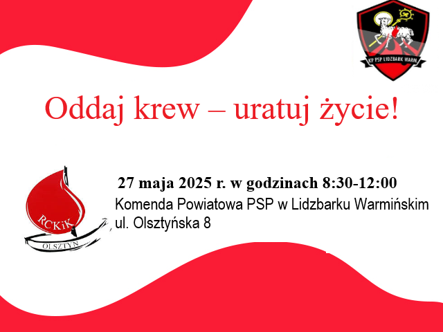 Niezmiernie cieszy nas fakt, że kolejny rok z rzędu plasujemy się na podium programu wspierającego proces leczenia osób znajdujących się w potrzebie. Koordynatorem akcji w lidzbarskiej komendzie jest st. kpt. Tomasz Gowkielewicz, który, współpracując z Regionalnym Centrum Krwiodawstwa i Krwiolecznictwa, organizuje zbiórki krwi w wyznaczonych terminach.