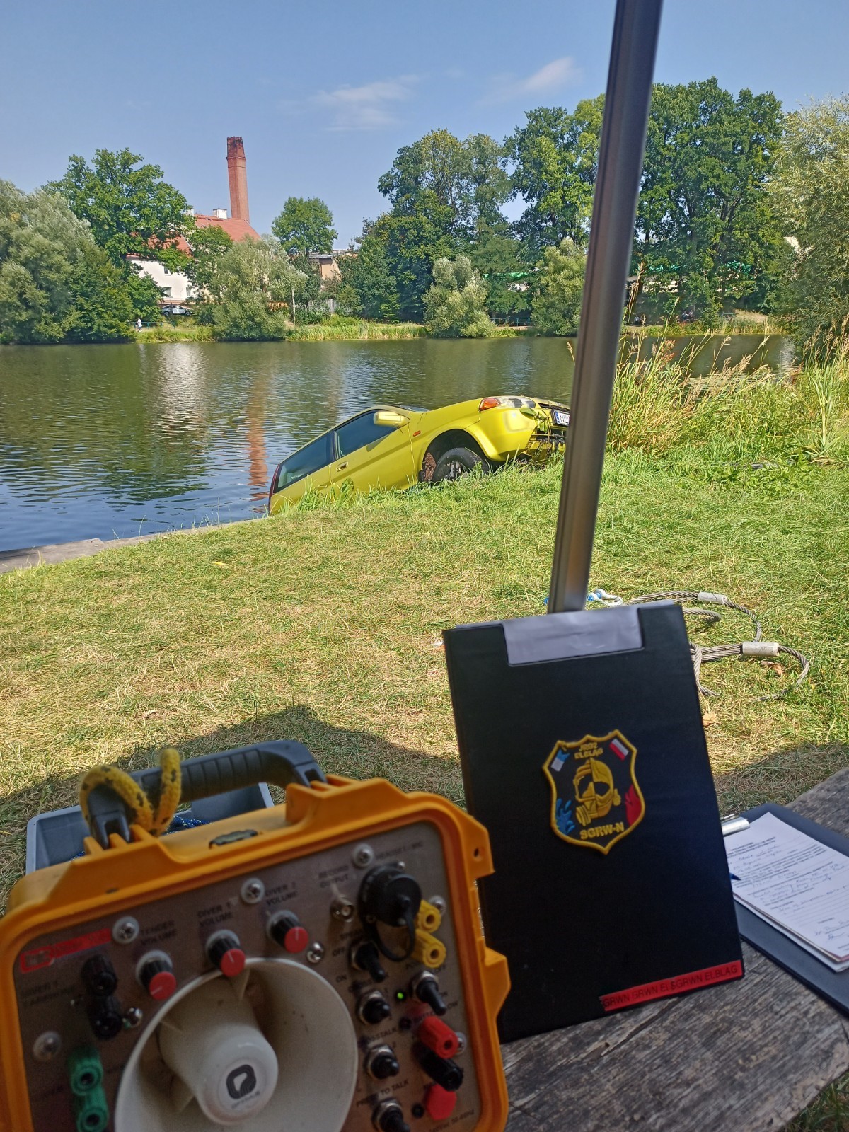 Działania strażaków po zabezpieczeniu miejsca zdarzenia polegały m.in. określeniu miejsca przebywania pojazdu i oznaczenia go bojką, zamocowaniu zawiesi na stałych elementach podwozia ostatecznie wyciągnięciu pojazdu z dnia przy użyciu wyciągarki elektrycznej. Pojazd odciągnięto i zabezpieczono. Ostatecznie auto znajdowało się około 6 metrów od linii brzegowej na głębokości 4,5 metra.