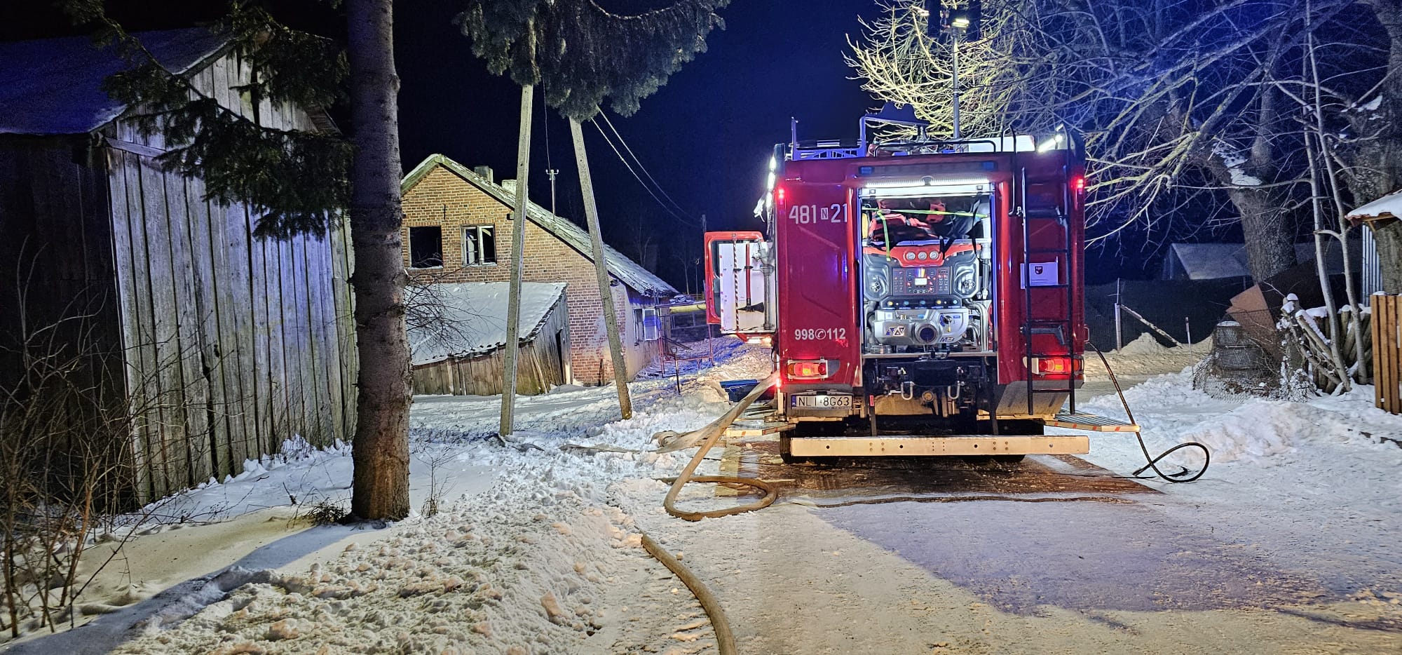 Służby ratownicze po przybyciu na miejsce zdarzenia, w którym panowało silne zadymienie, potwierdzili pożar. Ogień wydostawał się z okna jednego z pomieszczeń domu jednorodzinnego i zaczynał rozprzestrzeniać się na dach. W toku przeprowadzonego rozpoznania, dowódca otrzymał informację, że jeden z mieszkańców wsi podjął próbę ewakuacji mężczyzny znajdującego się w strefie zagrożenia. Ostatecznie udało mu się przenieść sąsiada narażonego na promieniowanie cieplne do pomieszczenia obok, nie objętego pożarem. Jedna z dwóch rot pracujących w strefie zadymienia, zlokalizowała i ewakuowała poszkodowanego, przekazując go zespołowi ratownictwa medycznego. Podtruty gazami pożarowymi z zachowanymi czynnościami życiowymi został przetransportowany do szpitala w Bartoszycach.