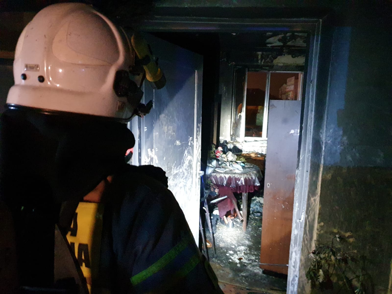 Po przybyciu na miejsce zdarzenia, strażacy zastali intensywnie wydobywający się dym spod drzwi mieszkania objętego pożarem. Lokal mieszkalny składający się z 5 pomieszczeń. Kierujący Działaniami Ratowniczymi na etapie rozpoznania ustalił, że wewnątrz może znajdować się straszy mężczyzna mieszkający samotnie.