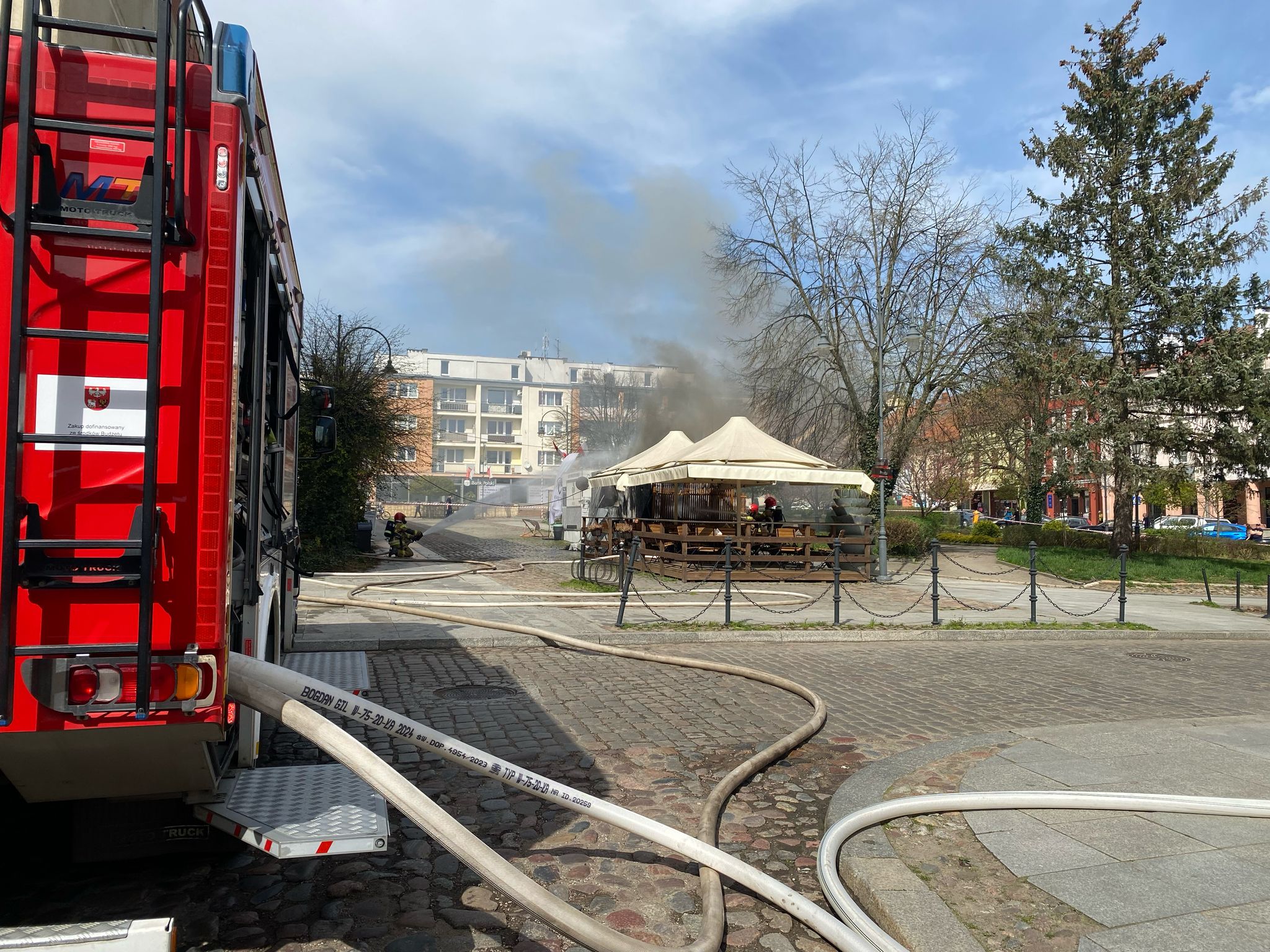 18 kwietnia br., o godzinie 13:37, dyżurny Stanowiska Kierowania Komendanta Powiatowego Państwowej Straży Pożarnej w Lidzbarku Warmińskim przyjął zgłoszenie o pożarze obiektu gastronomicznego, zlokalizowanego przy ul. Plac Wolności. Do zdarzenia zadysponowano dwa zastępy z miejscowej Jednostki Ratowniczo-Gaśniczej oraz zastępy OSP z Runowa oraz Rogóża.