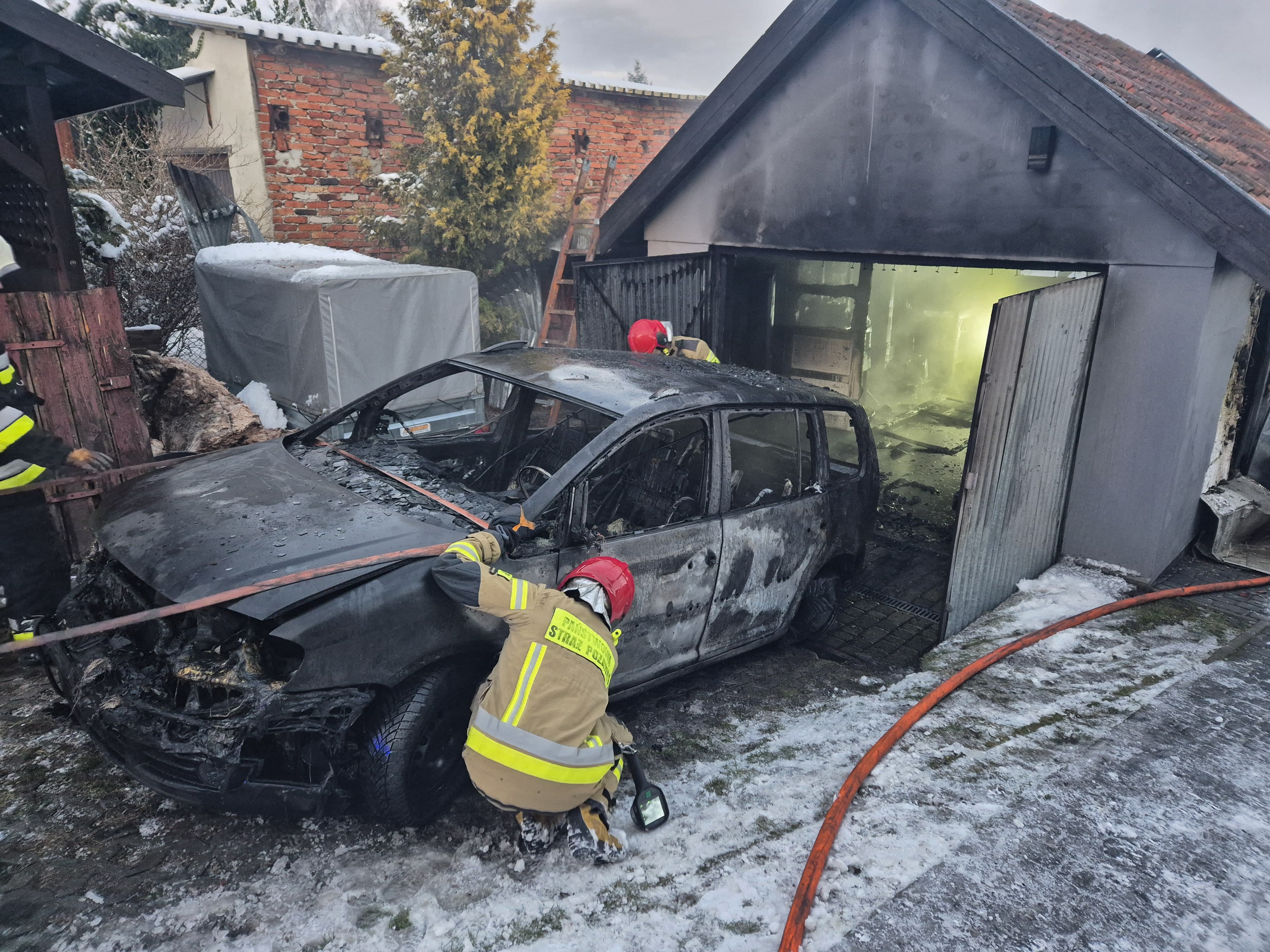 Kolejny pożar miał miejsce o godzinie 15:17. W Ornecie przy ulicy Piaskowej doszło do zaprószenia ognia w budynku garażowym wolnostojącym. Wewnątrz znajdował się m.in. samochód osobowy. Strażacy po przybyciu na miejsce zdarzenia zastali w pełni rozwinięty pożar garażu o powierzchni około 24 m2. Po odłączeniu zasilania elektrycznego podjęto działania gaśnicze. Podano dwa prądy wody w natarciu. Jeden z nich skierowany był od strony wejścia bocznego. Drugi prąd wody podano od strony bramy garażowej. W takcie prowadzonych działań gaśniczych rota wyniosła z pożaru 11kg butlę propan-butan zasilającą urządzenie grzewcze. Pożar szybko udało się ugasić. Spalony samochód z wykorzystaniem wyciągarki samochodowej wyciągnięto na zewnątrz oraz dokonano częściowej rozbiórki dachu. Po sprawdzeniu kamerą termowizyjną obiektu, miejsce zdarzenia przekazano właścicielowi.