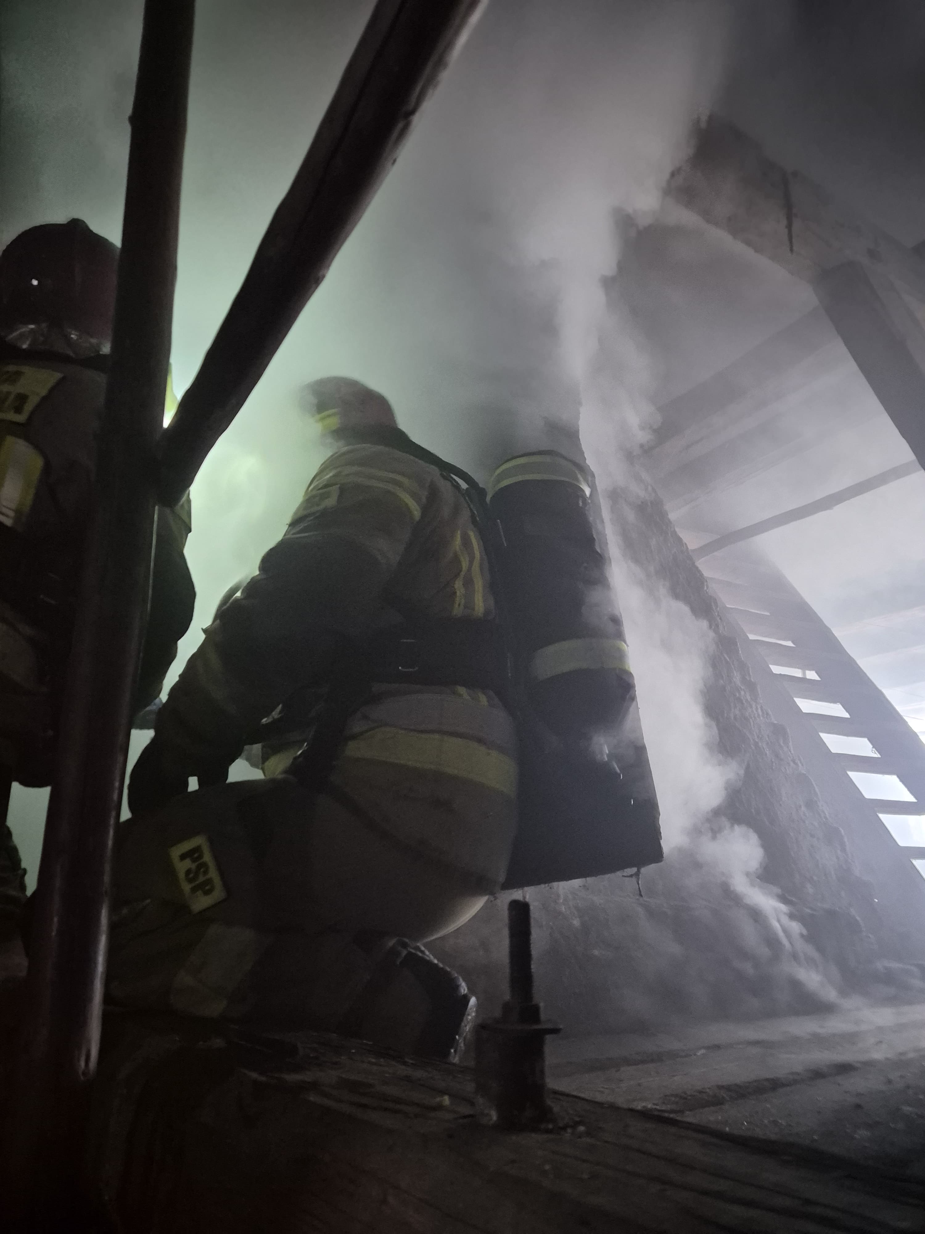Po odcięciu dopływu energii elektrycznej, strażacy przystąpili do gaszenia podając prąd wody w natarciu na miejsce pożaru. Następnie wraz z wprowadzoną wentylacją nadciśnieniową, rozpoczęto prace rozbiórkowe elementów w obrębie palącego się komina. Do działań wykorzystano m.in. kamerę termowizyjną celem lokalizacji zarzewi ognia. Po ugaszeniu pożaru, wykonano stabilizację jednej z belek nośnych komina.