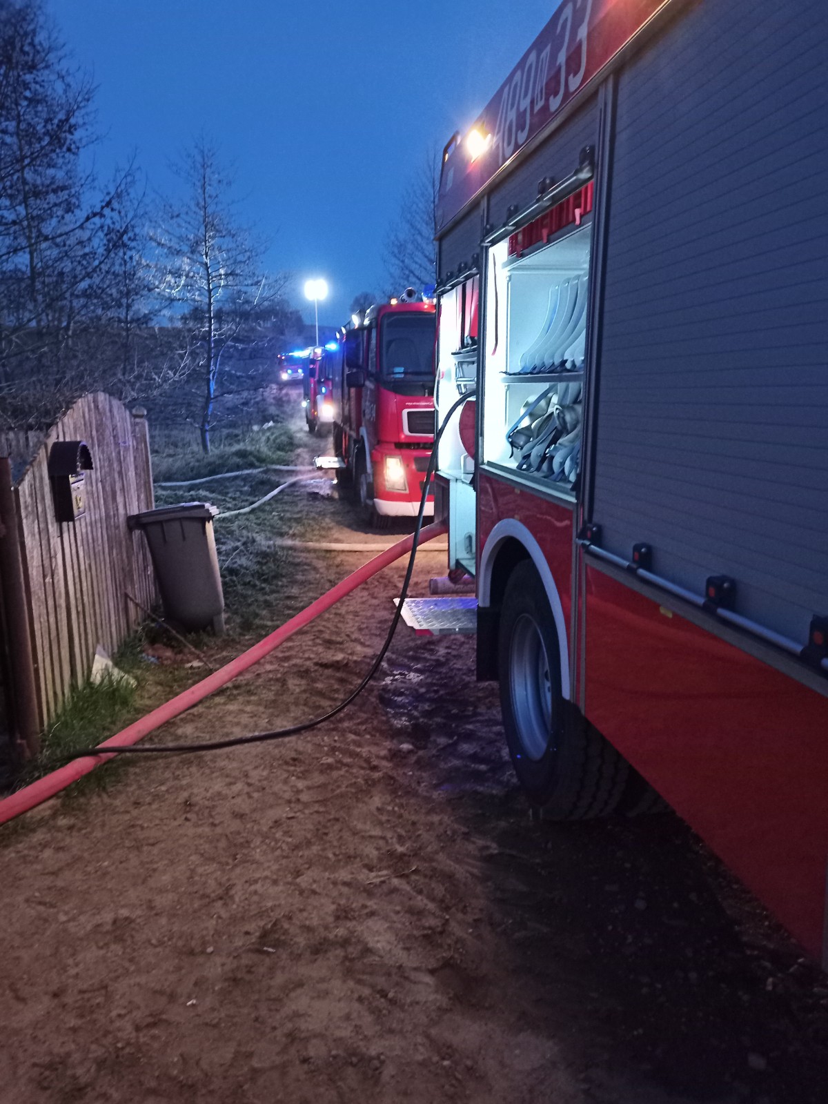W porze nocnej 29 kwietnia br., miał miejsce pożar domu jednorodzinnego w miejscowości Wolnica, w którym w chwili wybuchu ognia znajdowały się dwie osoby dorosłe oraz 3letnie dziecko. Wszyscy mieszkańcy opuścili obiekt przed przybyciem podmiotów ratowniczych. Pożar był w pełni rozwinięty obejmując całą kubaturę obiektu. Strażacy po zabezpieczeniu miejsca zdarzenia oraz oświetleniu terenu akcji, podali w sumie cztery prądy w natarciu na budynek wykorzystując pobliski staw do zapewnienia ciągłości podawania środka gaśniczego. Przeprowadzano ewakuacje mienia oraz wykonano prace rozbiórkowe elementów konstrukcyjnych. Z pożaru wyniesiono dodatkowo 11kg butle gazową propan-butan, która znajdowała się w części kuchennej. Rodzina otrzymała pomoc ze strony bliskich.