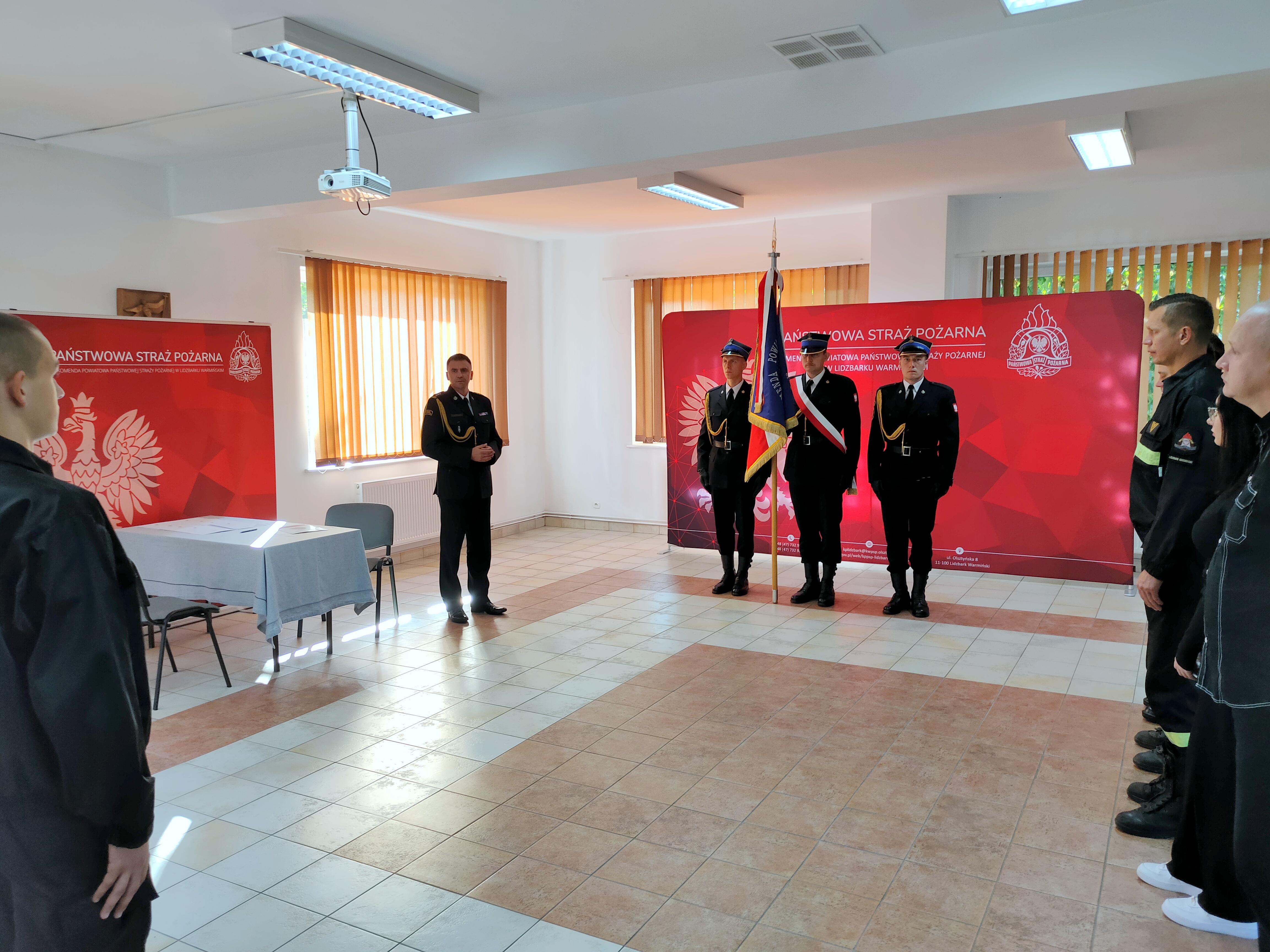 W dniu 11 września br. o godzinie 9:00 w siedzibie Komendy Powiatowej Państwowej Straży Pożarnej w Lidzbarku Warmińskim odbyła się uroczysta zbiórka związana ze ślubowaniem nowo przyjętych strażaków do służby w strukturach PSP.