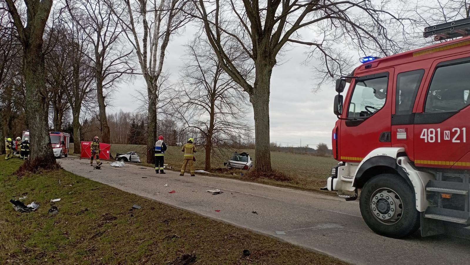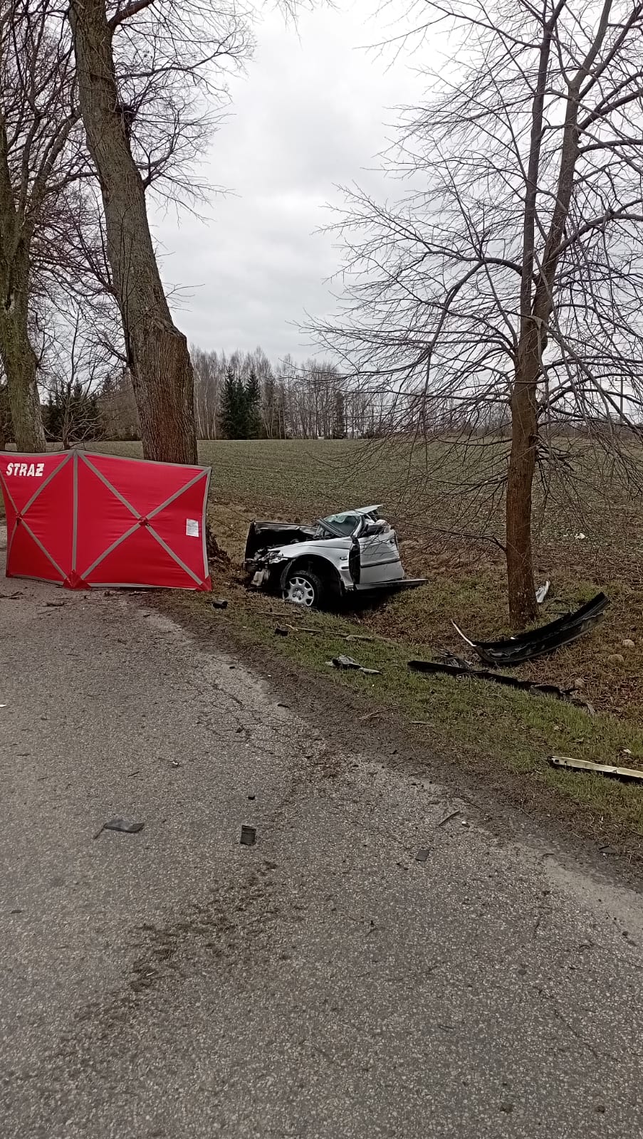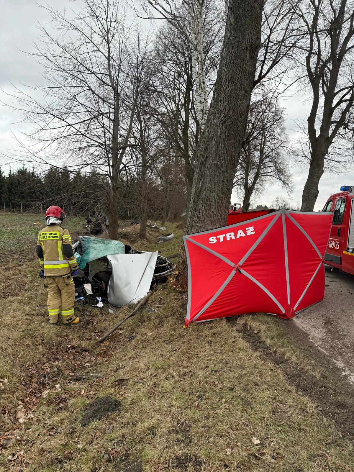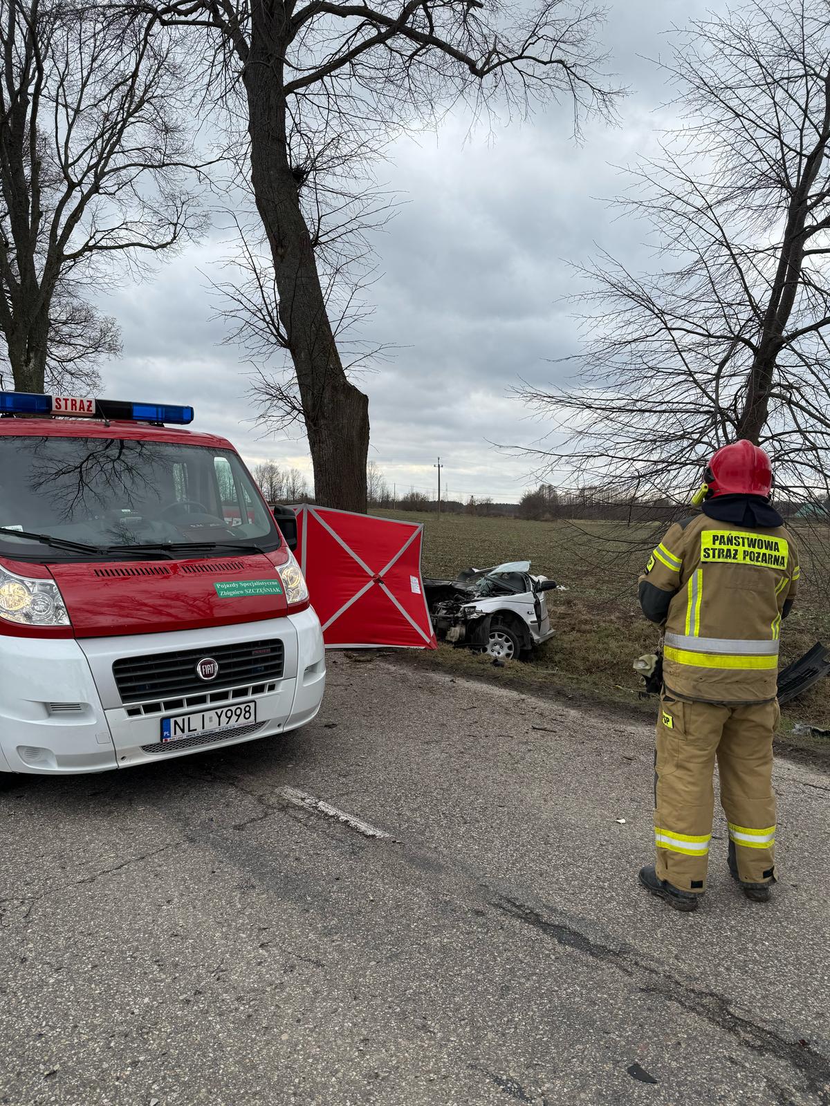 Po przybyciu na miejsce zdarzenia i przeprowadzeniu rozpoznania KDR zastał samochód osobowy marki Honda Accord po zderzeniu z przydrożnym drzewem. Siła uderzenia była tak duża, że auto rozpadło się na trzy części a kierujący wypadł z pojazdu i znajdował się na poboczu drogi. W wyniku masywnego urazu, 29 letni mężczyzna poniósł śmierć na miejscu zdarzenia.