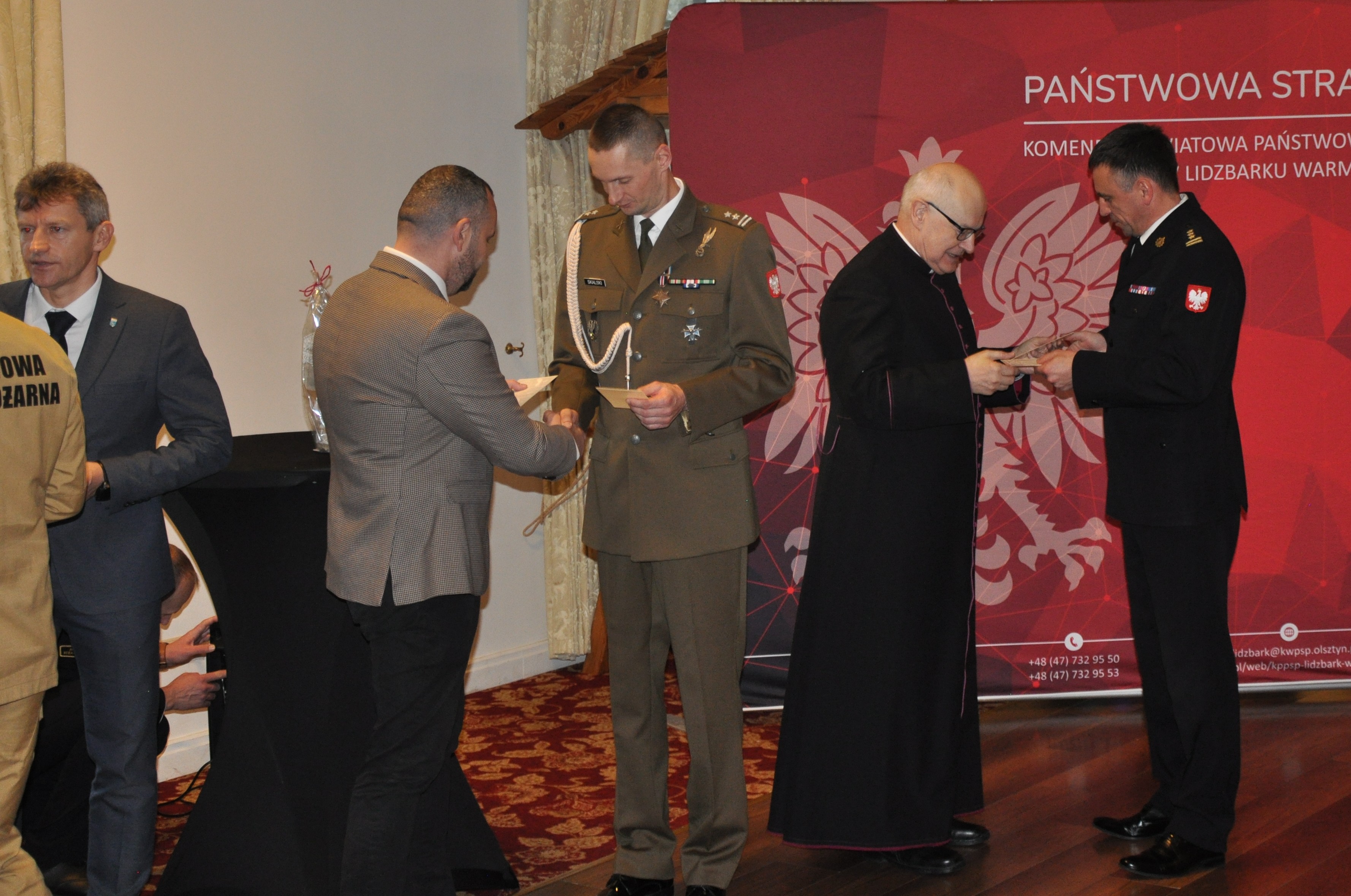 Komendant Powiatowy Państwowej Straży Pożarnej, st. bryg. Rafał Szymukowicz, serdecznie powitał zgromadzonych gości, składając strażakom, pracownikom oraz ich rodzinom świąteczne życzenia. Podziękował również za zaangażowanie oraz wzorowe wykonywanie powierzonych obowiązków.