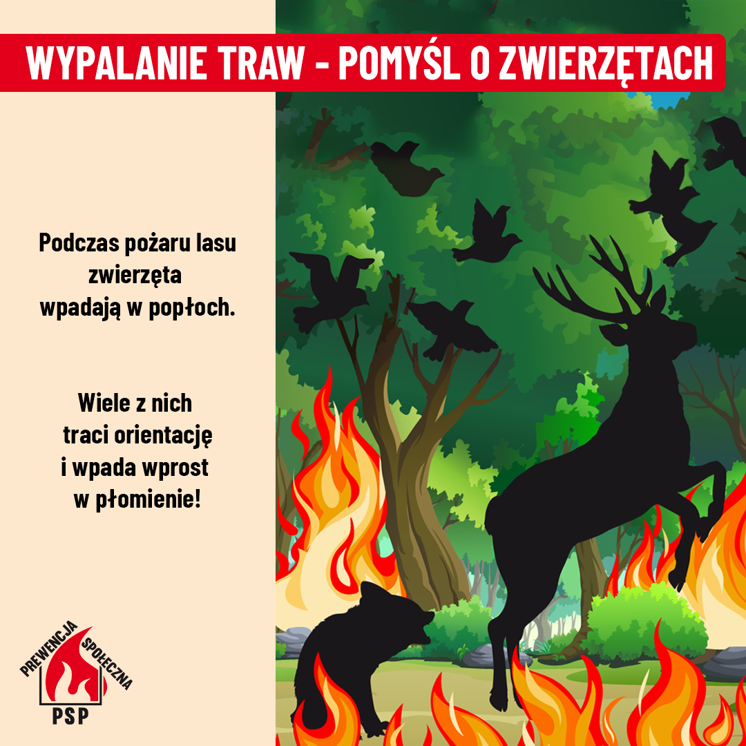 Wiele osób wypala trawy i nieużytki rolne, tłumacząc swoje postępowanie chęcią użyźniania gleby. Od pokoleń wśród wielu ludzi panuje bowiem przekonanie, że spalenie trawy spowoduje szybszy i bujniejszy jej odrost, a tym samym przyniesie korzyści ekonomiczne. Jest to jednak całkowicie błędne myślenie. Rzeczywistość wskazuje, że wypalanie traw prowadzi do nieodwracalnych, niekorzystnych zmian w środowisku naturalnym – ziemia wyjaławia się, zahamowany zostaje bardzo pożyteczny, naturalny rozkład resztek roślinnych oraz asymilacja azotu z powietrza. Do atmosfery przedostaje się szereg związków chemicznych będących truciznami zarówno dla ludzi, jak i zwierząt. Wypalanie traw jest również przyczyną wielu pożarów, które niejednokrotnie prowadzą niestety także do wypadków śmiertelnych. Rocznie w tego rodzaju zdarzeniach śmierć ponosi kilkanaście osób. Obszary zeszłorocznej wysuszonej roślinności, która ze względu na występujące w tym czasie okresy wegetacji stanowi doskonałe podłoże palne, co w zestawieniu z dużą aktywnością czynnika ludzkiego w tym sektorze, skutkuje gwałtownym wzrostem pożarów. Za ponad 94% przyczyn ich powstania odpowiedzialny jest człowiek. W rozprzestrzenianiu ognia pomaga także wiatr. Osoby, które wbrew logice decydują się na wypalanie traw, przekonane są, że w pełni kontrolują sytuację i w razie potrzeby, w porę zareagują. Niestety mylą się i czasami kończy się to tragedią. W przypadku gwałtownej zmiany jego kierunku, pożary bardzo często wymykają się spod kontroli i przenoszą na pobliskie lasy i zabudowania. Niejednokrotnie w takich pożarach ludzie tracą dobytek całego życia. Występuje również bezpośrednie zagrożenie dla zdrowia i życia ludzi.