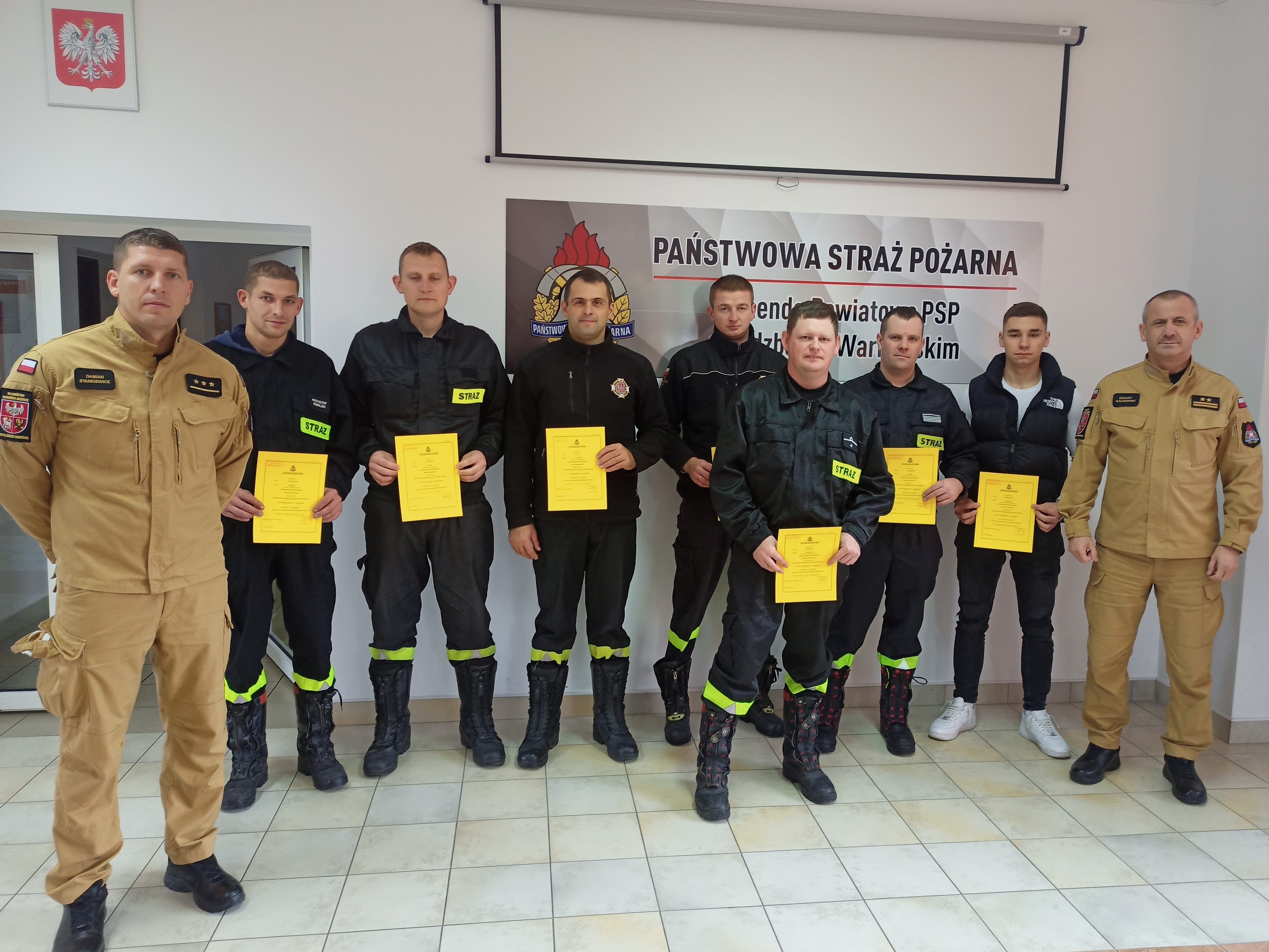 W imieniu Komendanta Powiatowego PSP w Lidzbarku Warmińskim st. bryg. Rafała Szymukowicza uroczystego wręczenia zaświadczeń potwierdzających ukończenie szkolenia dokonał zastępca bryg. Cezary Kalinowski.